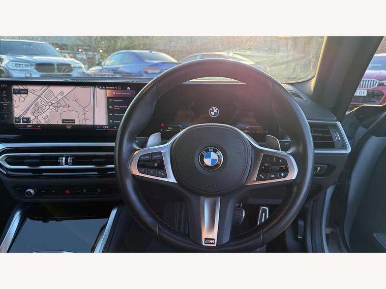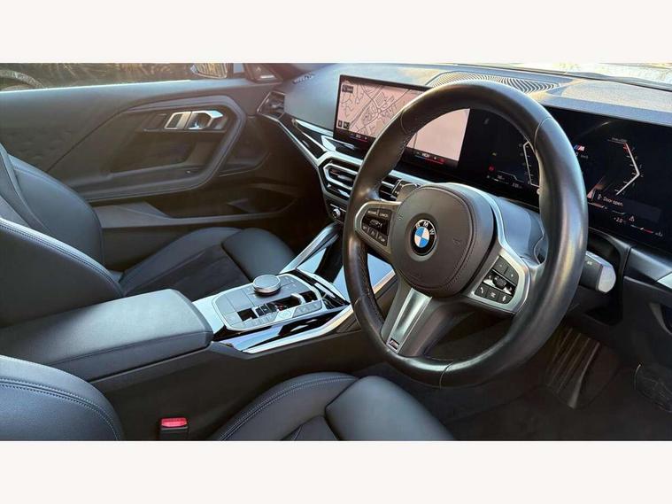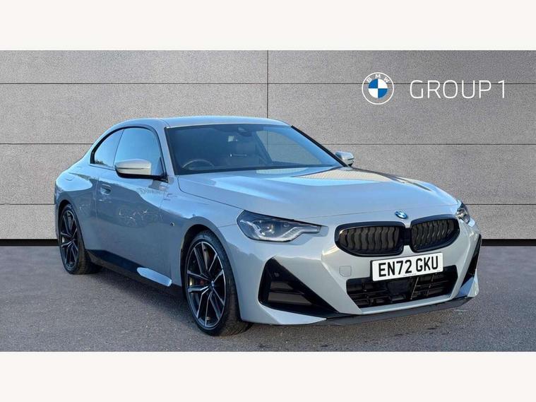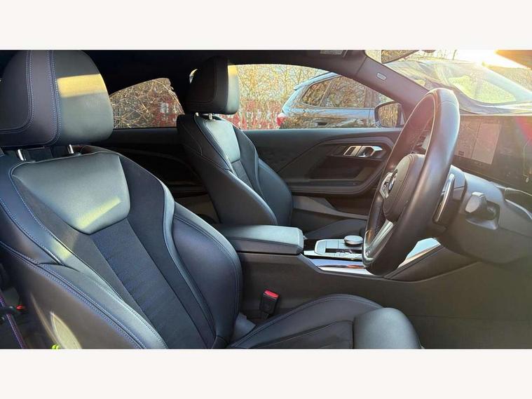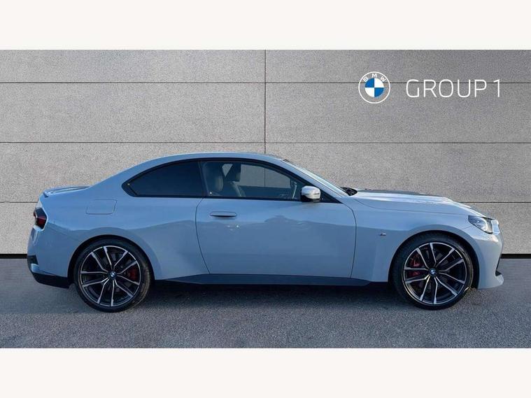 Attentiveness assist, Auto start-stop, Bluetooth, BMW ConnectedDrive online services, BMW Teleservices, Check Control warning system for monitoring of lights and door/luggage compartment open warning, Direct selection buttons, Drive off assistant, Eco pro mode, Electric power steering, Front and rear parking sensors, Front/rear Parking distance control, iDrive controller with turn and press function, Integrated owners handbook, Intelligent functions, Live cockpit plus with nav function 12.3" instrument cluster and 14.9" centre display, Oil sensor for level and grade, Optimum shift indicator, Personal Profile, Touch operation on control display, Variable sport steering, Widescreen multi-media display, Aluminium lightweight construction, Balancer shaft, BMW TwinPower Turbo four-cylinder petrol engine, Double VANOS, Drive performance control with ECO PRO comfort + sport mode, Electronic differential lock, High precision injection, M sport suspension, Petrol Particulate Filter, Sport automatic steptronic transmission with gearshift paddles, manual gearshift time display, launch control, coasting idle ECO PRO/COMFORT modes, Twin scroll turbocharger with Valvetronic, DAB tuner, Acoustic windscreen wipers for reduced driving noise, Adaptive LED Headlights, Automatic windscreen wipers and automatic headlight, Automatically dimming rear view mirror, Body colour door handles flush with door surface, Body colour door mirrors, Body colour front and rear bumpers, Daytime running lights, Electric windows - front and rear, with open/close fingertip control and trap release, Exhaust tailpipes x2 - 90mm in left and right, Fading support, Front and rear bumper system with replaceable deformation elements, Front door sill finishers in black plastic with BMW designation, Front windscreen wipers with integrated washer jets, Green tinted heat protection glazing, High beam assistant, High gloss shadowline exterior trim in mirror triangle cover, mirror cover panel, mirror bezel and window border, High level third brake light, Indicators integrated int mirror housing, LED registration plate light, LED technology rear tail lights, brake lights and turn indicators, Lightweight engineering, Model designation on right side of tailgate, One piece kidney grille with hight gloss chrome surround, Rear boot, Rear fog lights, Reversing light in rear light cluster, Shark fin antenna, Single part LED rear lights with smoked glass components, Trailer stabilisation logic, Visible VIN plate, 12V power socket in front centre console with blanking plug, 2 cupholders in front centre console, 3 zone automatic air conditioning, Ambient lighting, Compartment in front of cupholder, Conditioned based service, Driver seat backrest width adjustment, Front and rear side armrests integrated into door trim, Front armrest, Front door pockets, Front head restraints, Front sport seats, Heated front seats, Illuminated glove compartment with separate small compartment, M headliner Anthracite, M sport leather steering wheel, Manually adjustment steering wheel column, Rear seat backrest with manual 40:20:40 split folding, Rear seat centre foldable armrest with integrated cup holder, Single front passenger seat, Storage compartment between rear seats, Storage tray and compartment with cover in centre console, Sun visors with vanity mirrors and insert tab, Through loading system with 40/20/40 split folding 2 rear seat in 2nd row, Two folding rear seat headrests, Velour floor mats, Additional storage compartment pack without USB - 2 Series Coupe, Connected pack professional - 2 Series Coupe, Interior and exterior mirror pack - 2 Series Coupe, M Sport exterior styling aerodynamics pack - 2 Series Coupe, 2 tone horn, Anti lock braking system (ABS) with cornering brake control, Automatic Stability Control (ASC), BMW emergency call, Brake drying, Child seat ISOFIX attachment for the two outer rear seats, Crash sensor activating of airbags, Unlocking doors, hazard warning lights, interior light, safety battery terminal, Deactivation of fuel pump in the event of a crash, Driver and front passenger airbags, Driver and front passenger side airbags, integrated in the door side seat backrest bolsters for all seat variants, Dynamic brake control, Dynamic stability control + (DSC+), Dynamic Traction Control - DTC, Electrically operated hand brake including automatic hold function and automatic release when driving off, Front and rear disc brakes, Front passenger airbag deactivation, Head airbags for all 4 outer seats, Manual deactivation of front passenger airbag, Seat belt security check for driver and front passenger, Seatbelt warning, Side impact protection, Three point seat belts on 4 seats including front belt stopper, pyrotechnic belt tensioners and belt force limiters, Tyre pressure sensor, Warning triangle and first aid kit, Alarm system (Thatcham 1) with remote control and electronic engine immobiliser, Central locking switch for all doors, fuel filler cap and luggage compartment, Deadlocking function system to all doors, Drive away locking system on all doors and luggage compartment, Locking wheel bolts, Start/Stop button (illuminated) in centre console with keyless engine start and Auto Start-Stop deactivation button, Two remote control key with integrated key - one button for open and close doors/fuel flap/tailgate and separate button for unlock luggage compartment, BMW mobility tyre sealing system, Electrically powered 12V compressor, Reduced rolling resistance tyres,