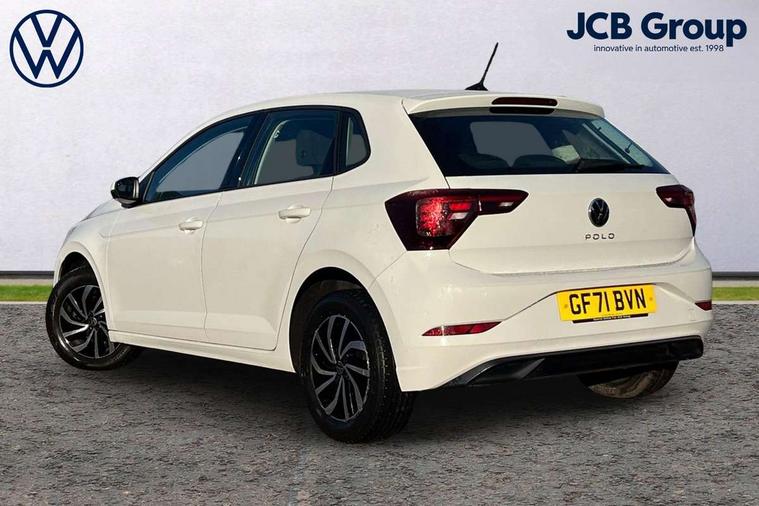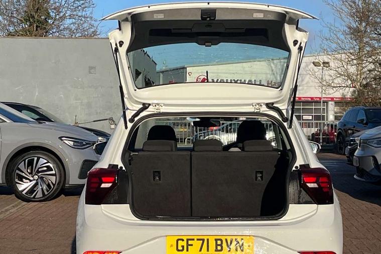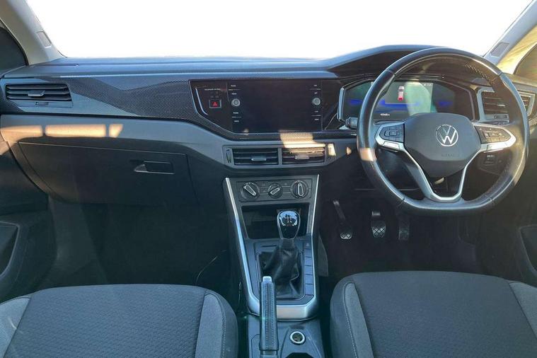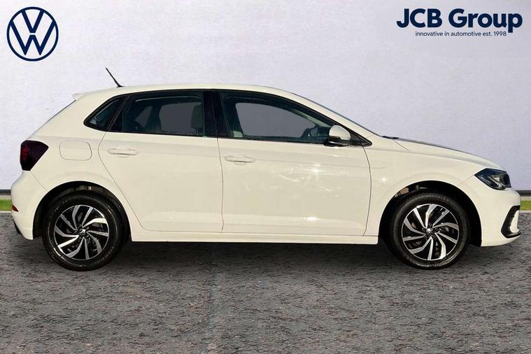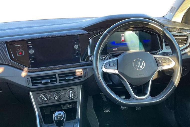 Adaptive cruise control without follow-to-stop and speed limiter, Bluetooth mobile phone interface, Driver alert system, Emergency call service, Front assist system, Power assisted speed sensitive steering, Preparation for We connect and We connect plus, Speedo and rev counter, electronic odometer, trip, service interval display and fuel gauge, Standard rear axle, Travel Assist - Lane keeping system and traffic jam assist, Travel assist including emergency assist, Trip computer, Warning signal and warning light for front and rear seatbelts not fastened, Washer fluid level indicator, Wireless app connect, Front wheel drive, Rear shock absorpion, Start-stop system with battery regeneration (recuperation - energy recovery during braking), DAB Digital radio, Diversity antenna for FM reception, Automatic dimming interior rear view mirror, Body colour bumpers, Body colour door handles, Body colour door mirrors, Electric front windows, Heat insulating darkened glass in side and rear windows, Heat insulating glass windscreen, Power folding adjustable/heated exterior mirrors and front passenger exterior mirror lowering function, Rain sensor, Rear electric windows, Rear fog light, Rear windscreen washer and wiper with interval delay, Third brake light, 12V power socket in centre console, 2 front and 2 rear reading lights, 2 USB-C ports in the front, 2 USB-C charging sockets on the center console in the rear, 3 rear head restraints, 60/40 split folding rear seat and rear seat bench not split, Ceramique headliner, Chrome plated radiator grille inserts, air vent surrounds and light switch surrounds, Door and side trim panel, Driver and front passenger seat height adjustment, Driver/passenger sunvisors with illuminated vanity mirrors, Front centre armrest, Front seat backrest storage pockets, Front standard seats, Handbrake lever handle in leather, Hartley/Thomas cloth upholstery, Isofix child seat preparation easy-fit (for two outer rear seats, and front passenger seat) compatible with I-size, Leather trimmed gear knob, Luggage compartment cover, Luggage compartment floor, Luggage compartment lighting, Multifunction steering wheel, Standard pedal cluster, Light and vision pack - Polo, 3 point height adj front seatbelts + pretensioners, 3x3 point rear seatbelts, ABS, Driver and front passenger airbag with front passenger airbag deactivation, Drivers and front passengers safety optimised head restraints, ESC (Electronic stability control) + EDL (Electronic Differntial lock) and ASR (Traction control), Extended and predictive pedestrian/ cyclist protection, Front curtain and side airbags with center airbag, Front disc brakes, Hill hold control, Rear drum brakes, Single tone horn, Tyre pressure loss indicator, Alarm with interior protection, Anti-theft alarm system with interior monitoring, backup horn, and towing protection, Anti-theft wheel bolts, Electronic engine immobiliser, Remote central locking with 2 remote folding keys, Lava stone black gloss/matt decorative inserts in dash and front door panels, Low rolling resistance tyres,