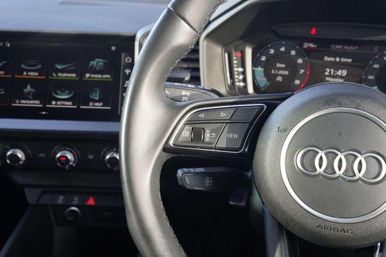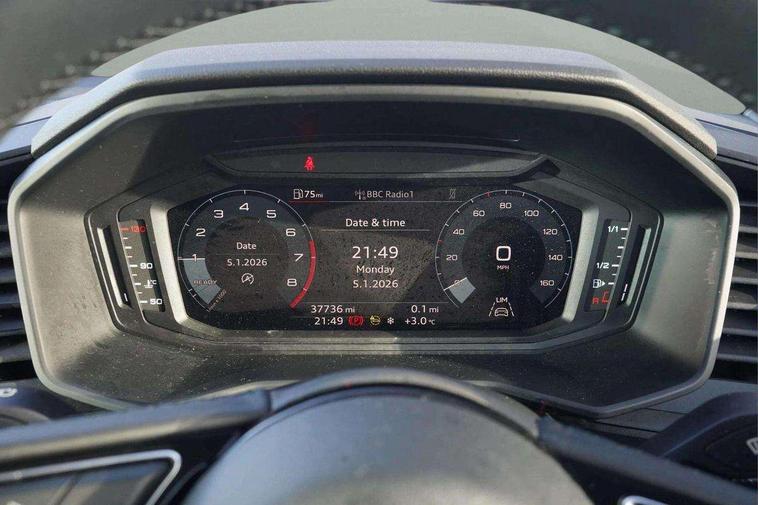 10.25" Digital instrument cluster display classis style instrument dials + speed, odometer, time, outside temperature, telephone menu + fuel level warning, Audi smartphone interface with connect compatible smartphone via USB directly MMI display + Nav, music, third party apps controlled via MMI controller, Automatic start/stop system, Bluetooth interface, Driver's information system, Electromechanical power steering, Emergency e-call, Emergency services call system, Lane departure warning system, Service interval indicator, Speed limiter, Voice control system, Washer fluid level indicator, Dynamic suspension, 1 x SDXC card reader, 2 x USB type C connection points, 6 passive loudspeakers, DAB Digital radio, MMI radio plus with 8.8" colour MMI display screen and MMI touch, Auto dimming rear view mirror, Body coloured bumpers, Body coloured door mirrors, Electric front and rear windows, Electrically adjustable, heated, folding door mirrors with integrated LED side indicator, Front side air inlets with front spoiler lip and rear diffuser in matt black grained, Heat insulating glass windscreen and side windows, Heated rear windscreen, High level LED brake light, LED headlights with LED rear lights + dynamic rear indicators + headlight adjustment and high beam, turning light + LED daytime running lights, Radiator grille in matt black, Rain and light sensors, Rear fog lights, Rear side wing doors, Rear wing door, Rear wiper, 12V socket in centre console with two cup holders, 3 rear seats with headrests, 3 seat bench in 2nd row, 3 spoke leather multifunction plus steering wheel, 40:60 Split folding rear seat or folded fully, Air vents, door handle recesses and centre console in black, Delta cloth upholstery, Driver and passenger seat with manual height adjust with forward and backwards adjustment, Front head restraints, Front passenger seat, Front/rear floor mats, Height and reach adjustable steering wheel, ISOFIX child seat mounting for front passenger and outer rear seats including top tether attachment point of outer rear seats, Leather gear knob with aluminium trim, Leatherette handbrake grip, Luggage compartment light with front and rear reading lights, Manual air conditioning, Titanium grey cloth headlining, Luggage compartment pack - A1, 3x3 point rear seatbelts, Audi pre-sense front with pedestrain and cyclist recognition, Brake assist function, Driver and front passenger airbag with front side and head airbags, Electronic Stability Control including ABS, EBD, ASR and EDL, Front passenger airbag deactivation switch, Hill hold assist, Manual rear child locks, Seatbelt height adjustment for front seats, Seatbelt monitoring, Tyre pressure warning light, Warning triangle and first aid kit, Anti theft alarm, Anti theft wheel bolts and loose wheel warning, Immobiliser, Remote central locking with 2 foldaway keys, Black inlays polygon structure, 15" 5 arm design alloy wheels,