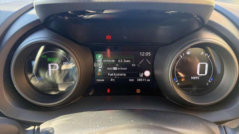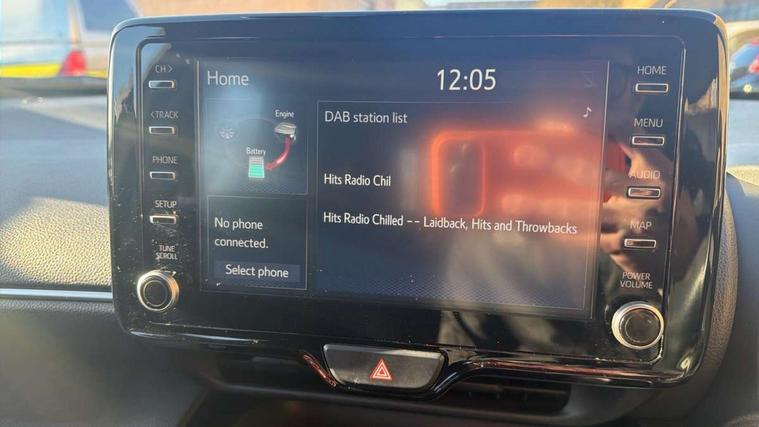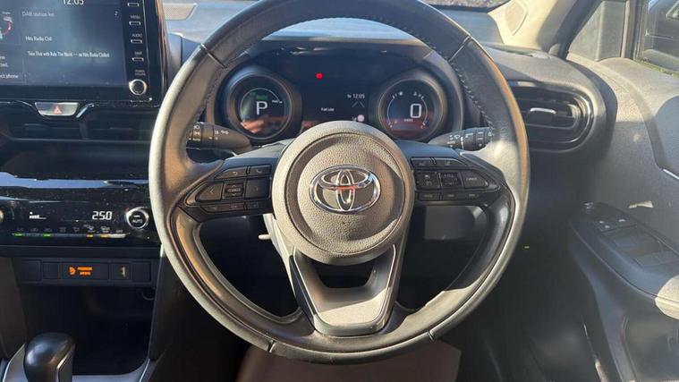 4.2" multi information display, 8" Toyota touch 2 multimedia system with Smartphone integration with Apple CarPlay and Android auto, Adjustable speed limiter, Bluetooth connectivity, Digital speedometer, Driver attention alert system, eCall emergency system, Electric power steering, Full range intelligent adaptive cruise control, Hybrid system indicator, Key reminder warning, Lane trace assist, Multimedia, audio, telephone and voice recognition switches on steering wheel, My T Connected services, Pre-collision system enhanced with emergency steering assist, Reversing camera, Road sign assist - RSA, Steering assisted vehicle stability control, 6 speakers, DAB Digital radio, USB connection, 3rd brake light, Acoustic windscreen glass, Anti-jam protection on power windows, Auto high beam [AHB] with on/off switch, Automatic headlights, Black lower front grille, Black Shark-fin antenna, Black upper front grille, Black wheel arch mouldings, Body colour door handles, Body colour front bumper, Body colour rear bumper, Electric adjustable heated door mirrors, Follow me home headlights, Front and rear electric windows with auto up/down function, Front intermittent wipers, Halogen projector headlights, Headlight cut off reminder, Indicators integrated on door mirrors, Intermittent rear wiper, LED daytime running lights, LED Indicators, Manual headlight levelling, Manually retractable door mirrors, Noise reduction layer on windscreen, Rain sensor, Rear side wing doors, Rear spoiler, Rear window defogger, 12v power outlet - front, 2x Rear coat hooks, 3 seat bench in 2nd row, 3 spoke leather steering wheel, 60/40 split folding rear seat, Adjustable speed limiter switch on steering wheel, Auto air conditioning, Boot light, Central armrest, Driver and front passenger personal lights, Fabric door trim, Fabric upholstery, Front console box, Front cup holders, Front head restraints, Glovebox, Grey roof lining, Height adjustable driver's seat, Height adjustable front passenger seat, ISOFIX child restraint system, Lane departure alert switch on steering control, Leather gearshift, Manual telescopic and tilting steering wheel, Mirror on driver and passenger sun visor, Pollen air filter, Rear head restraints, Single front passenger seat, Soft tonneau cover, 3x3 point rear seat belts, ABS+EBD+Brake assist, Driver and passenger central airbags, Driver and passenger front airbags, Driver and passenger side airbags, Electronic parking brake, Emergency brake light system (EBS), Front seat belt reminder, Hill start assist control (HAC), Passenger airbag on/off switch, Pre-collision system with pedestrian and cyclist detection, Rear door child safety locks, Rear passenger side airbags, Rear seat belt reminder, Traction control, Tyre pressure warning system, Immobiliser, Intrusion alarm, Keyless smart entry with push button start, Power door locks, Power passenger window lock, Remote door lock, 16" 10 spoke alloy wheels, Tyre repair kit,