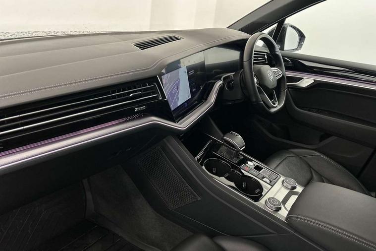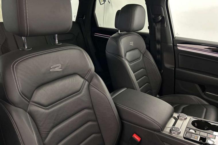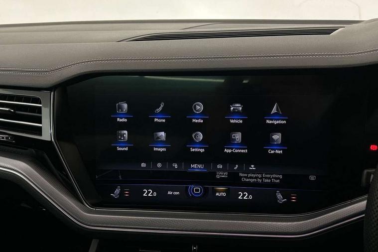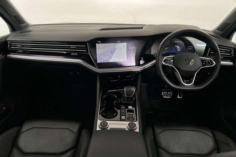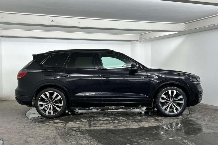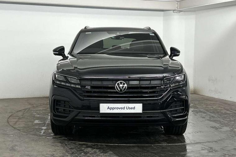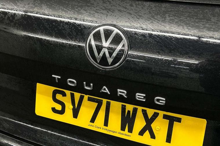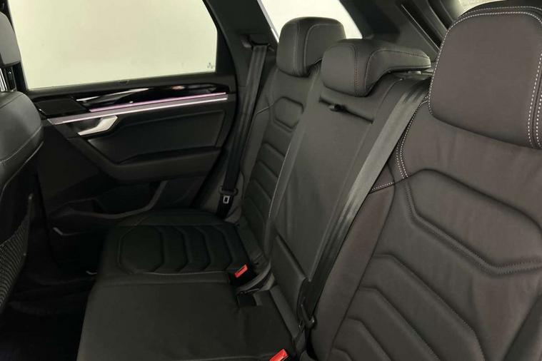 2D/3D map view, ACC - Adaptive cruise control with front assist, forward collision warning, distance monitoring, city emergency brake and speed limiter, Apple car play/Android Auto, Audible and visual fatigue detection system, Bluetooth hands free telephone connection, Car information display, Drive select with Damper control, Driver alert system, Dynamic road sign display camera controlled system with visual warning for traffic and road signs, eCall emergency system, Fully electric tailgate + keyless entry and start, Instrument cluster, MirrorLink, Multifunction camera with lane assist, Multifunction computer premium with 7" colour display, One touch indicators with repeat function, Service interval indicator, Speed sensitive power steering, Start/stop system with regenerative braking, Tailgate power latch, Think blue trainer driver tips and journey analysis, Traffic sign recognition, Voice control system, Wireless Smartphone charger, Torsen limited slip differential, DAB Digital radio, Dynamic navigation based on TMC+, Gesture control for infotainment system, Multi device interface (MDI) with illuminated USB-C connection, Music playback - MP3, WMA and AAC files, SD card slot, Simultaneous pairing of 2 compatible mobile devices, SMS functionality - read, compose and send SMS messages using touch-screen display, Title and cover art display, Volkswagen media control, Adaptive low beam for urban and motorway use, Auto dimming rear view mirror, Automatic coming/leaving home lighting function, Automatic headlights, Black anodised roof rails, Black door mirrors, Black rear diffuser, Black side window surrounds, Black upper and lower grille louvres extending into headlights and radiator grille, Body colour door handles, Body coloured wheel arches, C signature gloss black front air intake, Chromed tailpipe on the left and right integrated in the bumper with trapezoid design, Dusk sensor, Dynamic headlight range control, Electric front tilt/slide panoramic sunroof and fixed rear sunroof, Electrically power adjustable, heated, folding, auto dimming, front passenger exterior door mirror lowering function, Front and rear electric windows, Galvanised body, Gloss black finish B pillar, Gloss black rear diffuser, Headlight washers, Heat insulating darkened glass in side and rear windows, Heated windscreen washer jets, IQ.Light-LED matrix headlight, daytime running light with dynamic cornering light and indicator, LED rear fog light, LED rear number plate lights, Plastic scuff plates in door apertures, Poor weather light, Puddle lights, Rain sensor, Rear wiper, 12V socket in front and rear centre console and boot, 2 Coat hooks on B pillar, 3 rear head restraints, 3 spoke sport heated leather multi-function sports steering wheel with gear shift paddles - generation 2, 4 way adjustable front head restraints, 4 way electric lumbar support for driver and front passenger, 4 zone climate control, 40:20:40 split folding slide/recline rear seat, B pillar vents, Black lower edge of door extending sills, Branded points of interest, Double sun visor for drivier and passenger with LED illuminated vanity mirrors, Electric luggage compartment cover, Folding rear centre armrest with 2 cupholders, Front + rear carpet mats, Front centre armrest with storage box, Gear shift indicator, Height/reach adjust steering wheel, Illuminated air conditioned glovebox, Isofix preparation for 2 rear child seats, Jack and tool kit, Leather trimmed gear knob with gloss black inlay/aluminum trim, Leatherette door trim, LED luggage compartment lighting, Load through provision, Luggage compartment with load lashing rings, Plastic loading edge protection, Rear seat remote release levers, Soul black headlining, Stainless steel pedals, Innovision cockpit pack - Touareg, 3 point front seatbelts with pre-tensioners, ABS, Active bonnet, Automatic post collision braking system, Curtain airbags, Driver/Front Passenger airbags, EBD + Brake Assist, EDL, Electronic parking brake with auto hold, ESC with ASR, Front seat side impact airbags, Hill descent control, Hill start assist, Passenger airbag deactivate switch, Seatbelt warning lamp and buzzer, Three 3 point rear seatbelts, Two tone horn, Volkswagen roadside assistance, Warning triangle and first aid kit, Alarm with interior monitoring in cab, backup horn and towing protection, Child security locks for front and rear doors, Electronic engine immobiliser, Remote central locking, Black decorative trims on the side windows, High gloss black centre console,