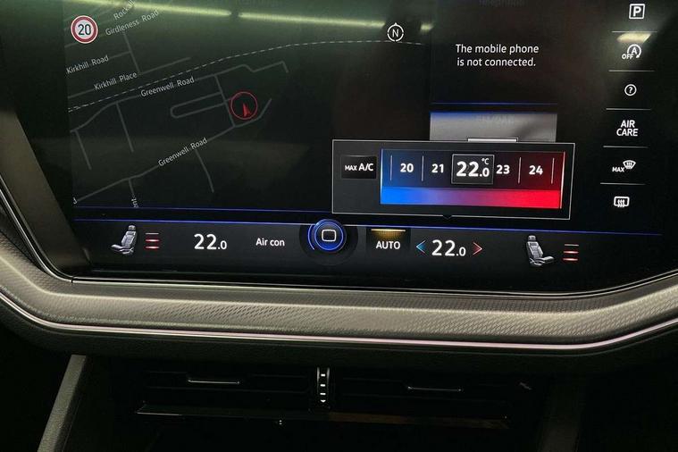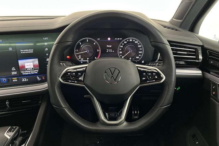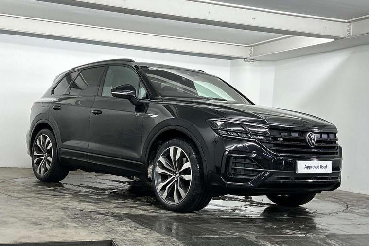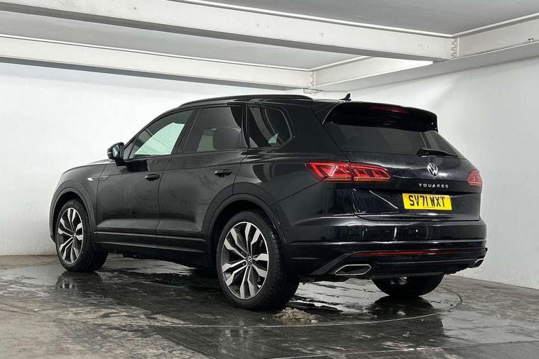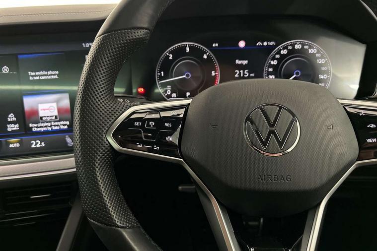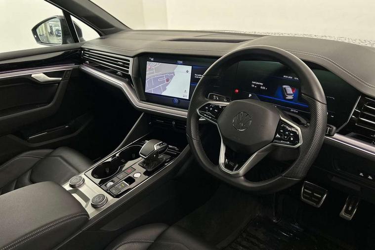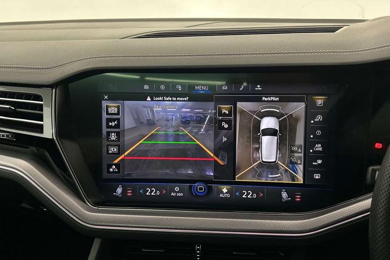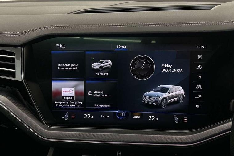 2D/3D map view, ACC - Adaptive cruise control with front assist, forward collision warning, distance monitoring, city emergency brake and speed limiter, Apple car play/Android Auto, Audible and visual fatigue detection system, Bluetooth hands free telephone connection, Car information display, Drive select with Damper control, Driver alert system, Dynamic road sign display camera controlled system with visual warning for traffic and road signs, eCall emergency system, Fully electric tailgate + keyless entry and start, Instrument cluster, MirrorLink, Multifunction camera with lane assist, Multifunction computer premium with 7" colour display, One touch indicators with repeat function, Service interval indicator, Speed sensitive power steering, Start/stop system with regenerative braking, Tailgate power latch, Think blue trainer driver tips and journey analysis, Traffic sign recognition, Voice control system, Wireless Smartphone charger, Torsen limited slip differential, DAB Digital radio, Dynamic navigation based on TMC+, Gesture control for infotainment system, Multi device interface (MDI) with illuminated USB-C connection, Music playback - MP3, WMA and AAC files, SD card slot, Simultaneous pairing of 2 compatible mobile devices, SMS functionality - read, compose and send SMS messages using touch-screen display, Title and cover art display, Volkswagen media control, Adaptive low beam for urban and motorway use, Auto dimming rear view mirror, Automatic coming/leaving home lighting function, Automatic headlights, Black anodised roof rails, Black door mirrors, Black rear diffuser, Black side window surrounds, Black upper and lower grille louvres extending into headlights and radiator grille, Body colour door handles, Body coloured wheel arches, C signature gloss black front air intake, Chromed tailpipe on the left and right integrated in the bumper with trapezoid design, Dusk sensor, Dynamic headlight range control, Electric front tilt/slide panoramic sunroof and fixed rear sunroof, Electrically power adjustable, heated, folding, auto dimming, front passenger exterior door mirror lowering function, Front and rear electric windows, Galvanised body, Gloss black finish B pillar, Gloss black rear diffuser, Headlight washers, Heat insulating darkened glass in side and rear windows, Heated windscreen washer jets, IQ.Light-LED matrix headlight, daytime running light with dynamic cornering light and indicator, LED rear fog light, LED rear number plate lights, Plastic scuff plates in door apertures, Poor weather light, Puddle lights, Rain sensor, Rear wiper, 12V socket in front and rear centre console and boot, 2 Coat hooks on B pillar, 3 rear head restraints, 3 spoke sport heated leather multi-function sports steering wheel with gear shift paddles - generation 2, 4 way adjustable front head restraints, 4 way electric lumbar support for driver and front passenger, 4 zone climate control, 40:20:40 split folding slide/recline rear seat, B pillar vents, Black lower edge of door extending sills, Branded points of interest, Double sun visor for drivier and passenger with LED illuminated vanity mirrors, Electric luggage compartment cover, Folding rear centre armrest with 2 cupholders, Front + rear carpet mats, Front centre armrest with storage box, Gear shift indicator, Height/reach adjust steering wheel, Illuminated air conditioned glovebox, Isofix preparation for 2 rear child seats, Jack and tool kit, Leather trimmed gear knob with gloss black inlay/aluminum trim, Leatherette door trim, LED luggage compartment lighting, Load through provision, Luggage compartment with load lashing rings, Plastic loading edge protection, Rear seat remote release levers, Soul black headlining, Stainless steel pedals, Innovision cockpit pack - Touareg, 3 point front seatbelts with pre-tensioners, ABS, Active bonnet, Automatic post collision braking system, Curtain airbags, Driver/Front Passenger airbags, EBD + Brake Assist, EDL, Electronic parking brake with auto hold, ESC with ASR, Front seat side impact airbags, Hill descent control, Hill start assist, Passenger airbag deactivate switch, Seatbelt warning lamp and buzzer, Three 3 point rear seatbelts, Two tone horn, Volkswagen roadside assistance, Warning triangle and first aid kit, Alarm with interior monitoring in cab, backup horn and towing protection, Child security locks for front and rear doors, Electronic engine immobiliser, Remote central locking, Black decorative trims on the side windows, High gloss black centre console,