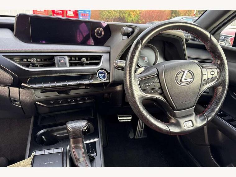 4 driving modes EV/Eco/Normal/Sport, 7" Lexus media display, 8" LFA inspired TFT meters with movable meter ring, Analogue clock with GPS function, Apple car play/Android Auto, Compatible mobile phone bluetooth with audio streaming, E-call, Electric power steering (EPS) with speed sensitive features, Lane change flasher function, Lexus link connected services, Lexus navigation system, Lexus safety systems + includes dynamic radar cruise control, pre collision system day and night, lane tracing assist, road sign assist, Parking assist sensors, 4 front and 4 rear, Push button start, Remote touch interface, Reversing camera with back guide lines, Trip computer, F Sport suspension tuning and rear performance dampers, Vehicle Dynamics Integrated Management (VDIM), Vehicle Stability Control (VSC), 2 front USB and 2 rear USB charging points, 6 speakers, AM/FM and DAB radio, AUX socket with VTR compatibility, CD player, Acoustic windscreen, Aero stabilising arch mouldings, Aero stabilising rear lights, Aero ventilated wheels, Aluminium roof rails, Auto dimming interior rear view mirror, Bi-LED (low and high beam) headlights with Auto High Beam (AHB), Black roof drip mouldings, Body adhesive, laser screw welding and laser brazed roof structure, Body coloured bumpers, Electric adjustable/heated door mirrors, F SPORT exterior styling consists of black Mesh front grille, enhanced side rockers, metallic coated front bumper and F SPORT badging, Front and rear one touch power windows, with anti-jam protection, Headlight cleaners, LED cornering headlights, LED daytime running lights, LED front and rear fog lights, LED tail lights, Privacy glass, rear doors and tailgate, Rain sensor windscreen wipers, Rear wiper, Shark fin roof aerial, Single hidden exhaust pipe, Towing preparation, 12V accessory port centre console and luggage compartment, 2 cup holders in the front and rear centre console, 2 way electrical lumbar adjustment for driver, 2 x folding shopping bag hooks in boot, 2 x sun visors with vanity mirror and lamp, 4 x tie down hooks in the boot, 5 headrests, 60/40 split folding rear seat, 8 way driver/passenger electrically adjustable front seats, Active sound control, Card holder installed in driver and passengers sun visors, Centre armrest with storage, Driver and passenger door pocket, Dual zone electronic climate control + Nano-E humidity sensor, F SPORT Aluminium front scuff plates, F Sport aluminium sports pedals, F SPORT dimpled leather gear lever, F SPORT front seat headrest adjustable forwards and backwards, F Sport interior styling, F Sport leather steering wheel with paddle shifts, Fabric/Tahara leather upholstery, Glovebox, Heated front seats, Heated steering wheel, LED interior illumination, Map pockets in the rear of passenger's front seat, Rear air vents with 2 USB chargers, Rear armrest with 2 cupholders, Storage tray under audio panel, Textile carpet mats, Tilt/reach adjustable steering column, Under deck storage, Under desk side storage, 2 x Isofix child rear seat restraints, 3x3 point rear seatbelts, Anti-lock braking system (ABS), BAS (Brake Assist System), Driver and front passenger 2 stage airbag, Driver and front passenger knee airbag, Driver/front passenger side airbags, EBD - Electronic brakeforce distribution, ECB (Electronically Controlled Brake System), Electric parking brake, Front adjustable seatbelt anchor points, Front and rear curtain shield airbags, Front outer seatbelt+pre-tensioners, force limiter+tension reduction: 3-point with active safety link to PCS, Hill start assist control (HAC), Passenger airbag cut-off device, Rear outer seatbelt+pre-tensioners, force limiter+tension reduction: 3-point with active safety link to PCS, Centre belt w/o pre tensioner+force limiter, Secondary Collision Brake (SCB), TRC (Traction Control), Tyre pressure warning, 2 x remote key fobs, Anti theft system : Alarm instruction sensor, glass breakage sensor and engine immobiliser, Locking wheel nuts, Remote central door locking, Speed sensitive auto door locking, Two motion door lock with double lock, VIN Window etching, 18" F Sport alloy wheels with run flat tyres,