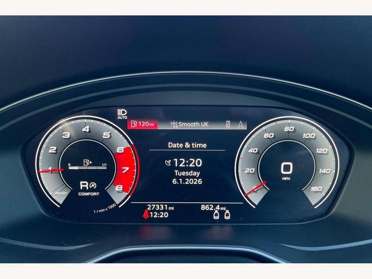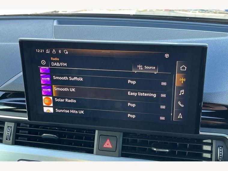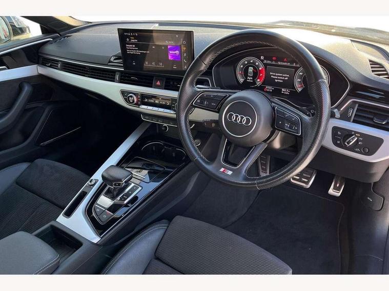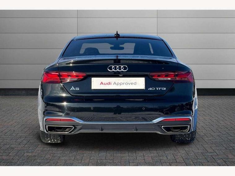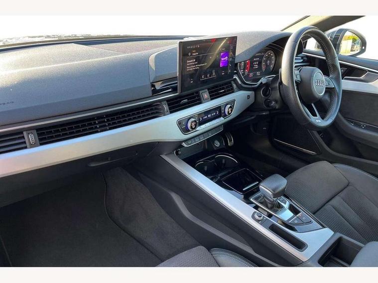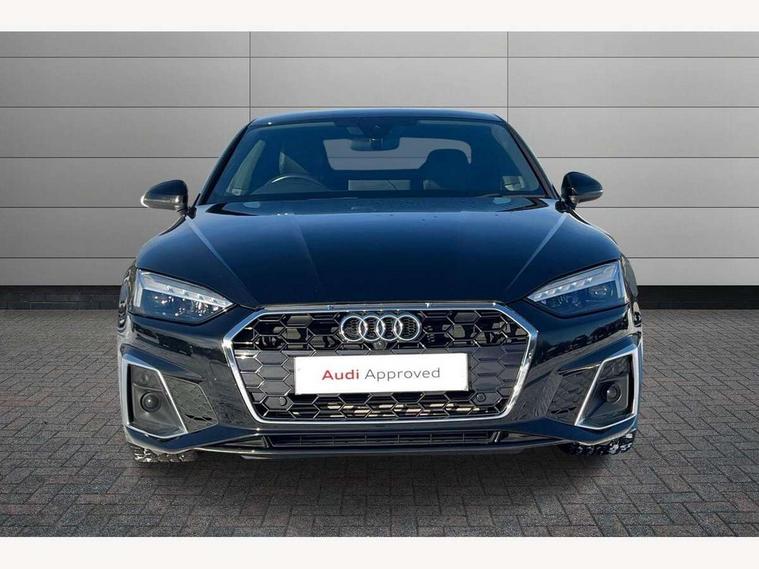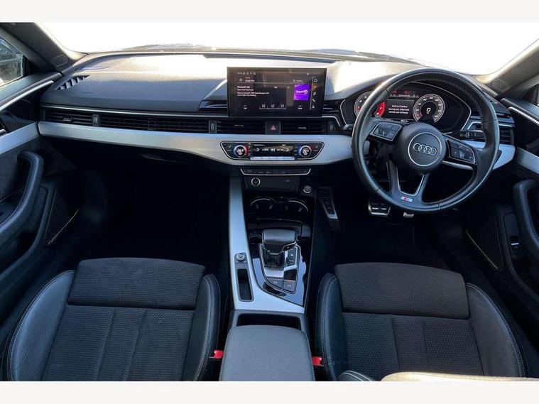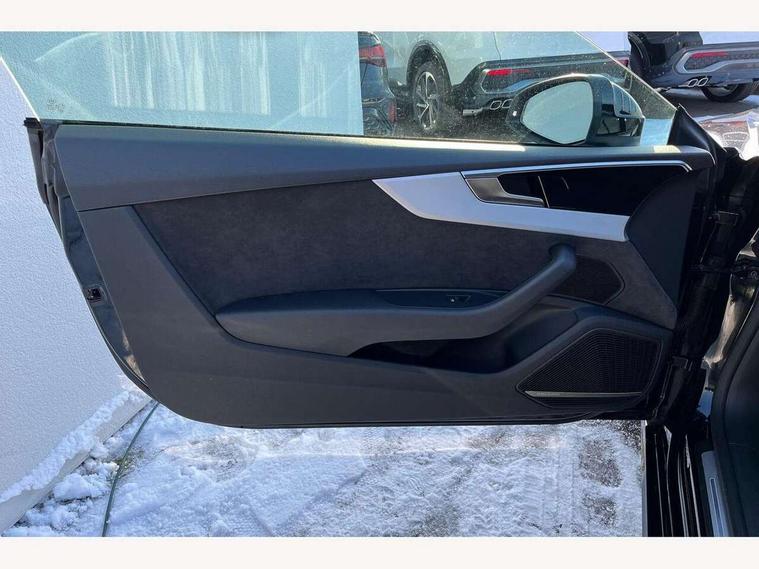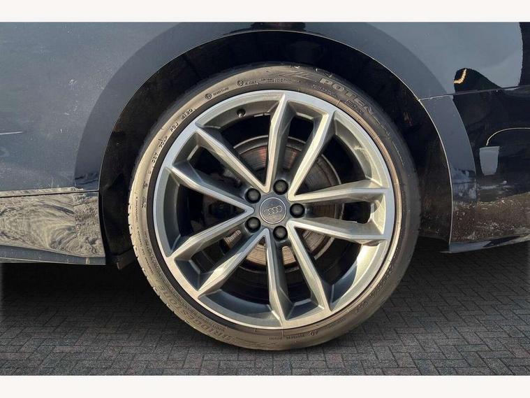 Audi connect safety and service (e-call), Audi drive select (Auto, Comfort, Dynamic, Efficiency and Individual), Audi parking system plus with front and rear sensors, Audi phone box with wireless charging, Audi smartphone interface, Audi virtual cockpit - 12.3" full colour digital instrument cluster, vehicle/engine speed, Radio/media information+Driver assistance systems, Automatic start-stop system with coasting functionality and efficiency programme, Bluetooth interface, Electric boot lid release, Electro-mechanical power steering, Email, calendar and text messages displayed via MMI, MMI nav+ with MMI touch - 10.1" high resolution MMI display, touch sensitive, 3D map, route/country info, dynamic route guide, personal route assist, Rear view camera, Service interval indicator, Voice control system, Sports suspension lowered by 23mm, 8 passive loudspeakers, CD player, DAB digital radio reception, Two additional USB ports for rear passenger in rear centre console, Two SDXC card slots, Audi matrix LED headlights with LED rear lights + dynamic front and rear indicators, Auto dimming rear view mirror, Body colour bumpers, Body colour door handles, Body colour front spoiler lip, Body colour side sill trim, Body coloured door mirrors, Electric adjustable heated door mirrors, Electric folding door mirrors, Electric front windows, Front fog lights, Honeycomb structure radiator grille in grained matt black, Matt aluminium silver tailpipe trim, Privacy glass, Rain and light sensors, S line badges on front wings, S line front and rear bumpers with side skirts, S Line rear diffuser in matt titanium black with trim strip in matt aluminium silver, Side air inlets in grained matt black with matt aluminium silver inlay, Towbar preparation, Windscreen with acoustic glazing, 4 way electric lumbar support for driver and front passenger, 40/20/40 split folding 2 seater rear seat bench with rear centre armrest, Adjustable steering column, Black cloth headlining, Black perforated leather gearknob, Contrast stitching on seats, steering wheel and gear lever gaiter, Deluxe 3 zone electronic climate control, Front centre armrest, Front head restraints, Front/rear floor mats, Heated front seats, Illuminated door sill trim with S logo, ISOFIX child seat mounting and top tether, Luggage compartment mat, Manual seat adjustment, Rear headrests, Stainless steel pedals, Sunvisors with vanity mirrors, Tool kit, LED interior light pack - A5/RS5, 2 x 3-point rear seat belts, 6 airbags - Driver, front passenger, curtain and side airbags, Electromechanical parking brake, Electronic Stabilisation Control (ESC) including ABS, ASR and EDL, Front passenger airbag deactivation, Height adjustable front seatbelts, Hill hold assist, Multi collision brake assist, Pop-up bonnet for pedestrian protection, Seatbelt monitoring, Tyre pressure warning, Variable restraint system, Warning triangle and first aid kit, Anti theft alarm system, Anti theft wheel bolts, Immobiliser, Keyless Go, Remote central locking, Matt brushed aluminium inlays, Tyre repair kit,