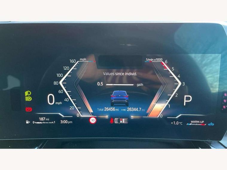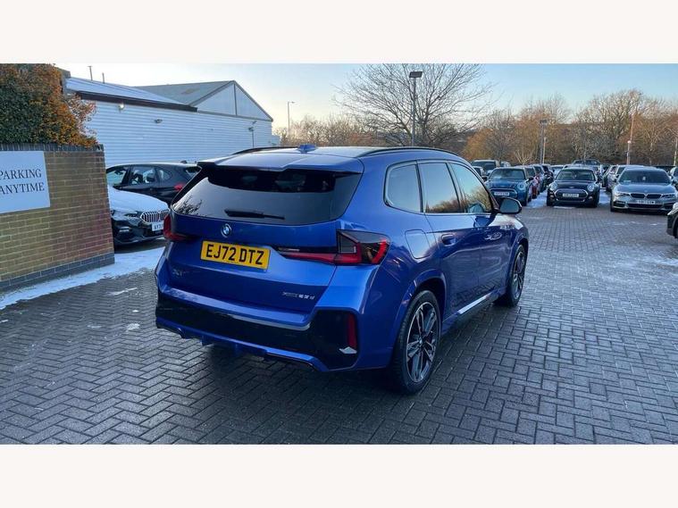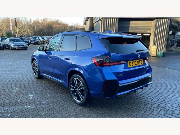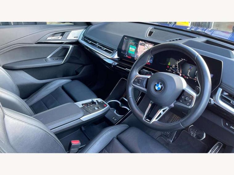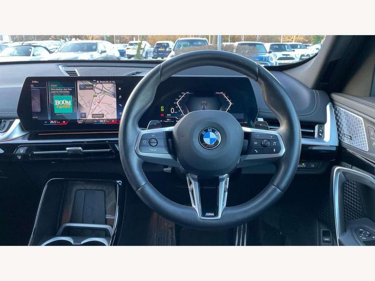 Active Guard + lane departure warning, speed limiting, front collision warning, Left turn warning with brake function and evasion assist, Attentiveness assist, Bluetooth / Wi-Fi interface with hands free system, BMW Intelligent Personal Assistant (natural voice control by voice command "Hey BMW"), BMW Online services, BMW Teleservices, Brake pad wear indicator, Drive off assistant, Electrically opening/closing tailgate with opening/closing with remote control and contactless opening and closing, Head up Display, Language version English, My Modes, Personal Profile - automatic lock when driving away selectable, Servotronic PAS, Tyre puncture warning system, Widescreen display, M Adaptive suspension, Performance Control, Steptronic transmission with double clutch and gear shift paddles, Stop/start function, xDrive intelligent four wheel drive system, DAB Digital radio, Tuner with diversity reception and RDS, AM radio and FM radio, Badge on engine compartment lid and tailgate, Body colour door mirrors, Body coloured bumpers, Contoured rear roof spoiler in vehicle colour with side aeroblades in black high-gloss, Dynamic brake lights, Electric adjustable heated door mirrors, Electric windows - front and rear, with open/close fingertip control, anti-trap facility and comfort closing, Folding door handles integrated flush with surface, Front and rear bumper panel with M specific design, in body colour with inserts in black high gloss, Front bumper panel with air inlet in matt black, Front door exit lights, Front entry sills aluminium inserts with M inscription, Heated rear window, High gloss shadow line roof rails, Invisible exhaust tailpipe, Key with M identification, LED 3rd brake light integrated in rear spoiler, LED number plate light, M specific radiator grille in satinated aluminium, Mirror caps painted in contrasting colour dark grey, Model inscription on right tailgate, Radiator grille struts in aluminium matt, Rain sensor including auto headlights activation, Rear bumper panel with two L-shaped trims In pearl chrome, Rear side wing doors, Rear wiper, Roof trim strips painted in body colour, Side sill covers with M specific design in body colour, Trailer stabilisation logic, Windscreen washer nozzle for rear view camera, Windscreen wipers with front and rear heated washer nozzles, 2 cup holders in front, 2 x 12 V (in luggage compartment and front centre console), 2 x USB Type C ports for charging and data transmission (front centre console) and 2 x USB Type C ports for charging (rear centre console), 3 rear headrests, 3 seat bench in 2nd row, 3 upper retaining strap clips integrated into rear panels of seat backrests, 40:20:40 split folding rear bench seat, Ambient interior lighting, Anthracite headlining, Anthracite Velour front and rear floormats, Bottle trays in all doors, Child seat ISOFIX attachment for two outer rear seats and front passenger seat with anchorage points, Clothes hook rear, Driver and front passenger heated seats, Dual zone automatic air conditioning, Front and rear door pockets, Front centre console storage compartment, Front sports seats, Front/rear adjustable head restraints, Glove compartment, M Sport nappa leather 3-spoke steering wheel, Manual steering column height and depth adjustment, Map pockets, Middle centre console storage compartment, Rear armrest in door trim panel, Single front passenger seat, Sliding rear seats - Mechanical fore and aft adjustment 130mm, Sport leather multifunction steering wheel with thumbrests and operation of instrument display, audio, telephone and driver assistance, Storage compartment with folding cover under centre console armrest cushion, Connected Package Professional - X1, Premier pro pack - X1, Technology plus pack - X1, ABS/EBD, Automatic hold function, Automatic Stability Control (ASC), Black belt painted in contrasting colour dark grey, BMW emergency call, Braking readiness, Cornering brake control (CBC), Crash Sensor - activates hazard/interior lighting + unlocks doors, Driver/Front Passenger airbags, Driver/front passenger side airbags, Dynamic stability control + (DSC+), Electromechanical parking brake, Energy recovery system, Front and rear brake discs, Front and rear head airbags, Front passenger airbag deactivation, Integrated brake system, PC iBrake PostCrash approach control warning with light braking function, Rear door child safety locks, Three point seat belt with belt buckle pre loading and belt force limiter, Three point seat belts in all seats, Tyre pressure monitor, Warning triangle and first aid kit, Alarm system with interruption of battery voltage, acoustic alarm, activation of hazard warning lights, Closing system with central locking including 2 vehicle keys with integrated emergency key, Immobiliser, Locking wheel bolts, Luxury instrument panel, Tyre repair kit (including Tyre sealant and 12V Compressor),