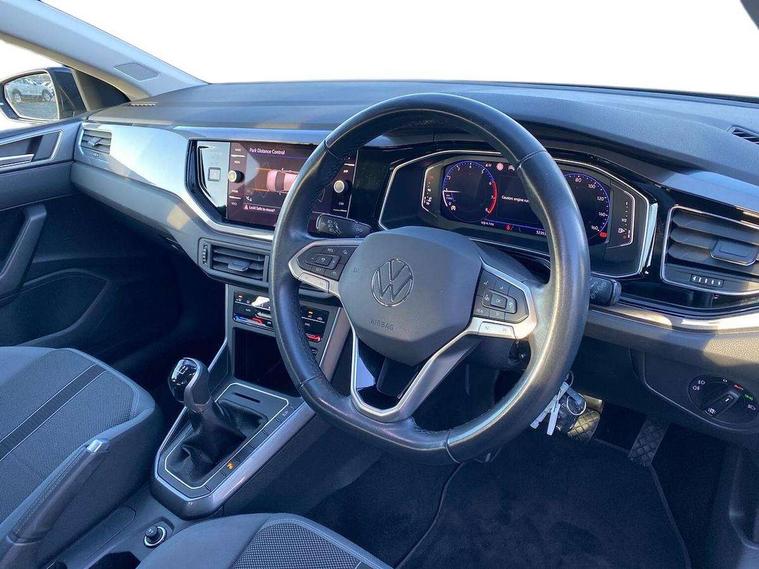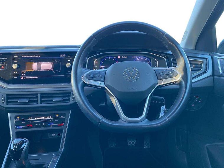 Adaptive cruise control without follow-to-stop and speed limiter, Bluetooth mobile phone interface, Digital Cockpit Pro with 10.25" Display, Driver alert system, Dynamic road sign display, Emergency call service, Power assisted speed sensitive steering, Preparation for We connect and We connect plus, Speedo and rev counter, electronic odometer, trip, service interval display and fuel gauge, Standard rear axle, Travel Assist - Lane keeping system and traffic jam assist, Travel assist including emergency assist, Trip computer, Warning signal and warning light for front and rear seatbelts not fastened, Washer fluid level indicator, Wireless app connect, Front wheel drive, Rear shock absorpion, Start-stop system with battery regeneration (recuperation - energy recovery during braking), DAB Digital radio, Diversity antenna for FM reception, Front and rear 6 speakers, Automatic dimming interior rear view mirror, Automatic headlights, Body colour door handles, Body coloured bumpers and radiator grille with chrome trims, Electric front windows, Heat insulating darkened glass in side and rear windows, Heat insulating glass windscreen, LED separate daytime running lights with coming/leaving home function, Power folding adjustable/heated exterior mirrors and front passenger exterior mirror lowering function, Rain sensor, Rear electric windows, Rear fog light, Rear side wing doors, Rear windscreen washer and wiper with interval delay, Third brake light, 12V power socket in centre console, 2 USB-C ports in the front, 2 USB-C charging sockets on the center console in the rear, 3 rear head restraints, 60/40 split folding rear seat and rear seat bench not split, Air care climatronic air conditoning system with active combination filter and 2-zone temperature control, Ambient lighting, Ceramique headliner, Chrome plated radiator grille inserts, air vent surrounds and light switch surrounds, Door and side trim panel, Driver and front passenger seat height adjustment, Driver/passenger sunvisors with illuminated vanity mirrors, Front + rear carpet mats, Front centre armrest, Front footwell illumination, Front seat backrest storage pockets, Front sports comfort seats, Handbrake lever handle in leather, Isofix child seat preparation easy-fit (for two outer rear seats, and front passenger seat) compatible with I-size, Leather trimmed gear knob, LED interior light with switch off delay and dimmer, 2 reading lights front and rear, Luggage compartment cover, Luggage compartment floor, Luggage compartment lighting, Lumbar adjustment for front seats, Multifunction steering wheel, Single front passenger seat, Standard pedal cluster, IQ LED matrix headlights pack - Polo, Light and vision pack - Polo, 3 point height adj front seatbelts + pretensioners, 3x3 point rear seatbelts, ABS, Driver and front passenger airbag with front passenger airbag deactivation, Drivers and front passengers safety optimised head restraints, ESC (Electronic stability control) + EDL (Electronic Differntial lock) and ASR (Traction control), Extended and predictive pedestrian/ cyclist protection, Front curtain and side airbags with center airbag, Front disc brakes, Hill hold control, Manual child lock in rear doors, Rear drum brakes, Single tone horn, Tyre pressure loss indicator, Alarm with interior protection, Anti-theft alarm system with interior monitoring, backup horn, and towing protection, Anti-theft wheel bolts, Electronic engine immobiliser, Chrome applications on rotary light, mirror adjustment, window regulator switches, outlet with frame in black, Deep iron gloss decorative inserts in dash and front door panels, Low rolling resistance tyres,
