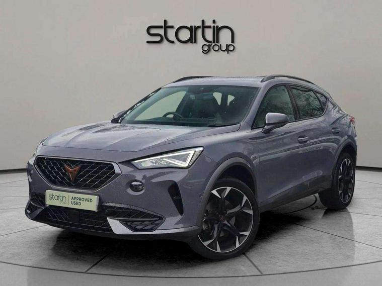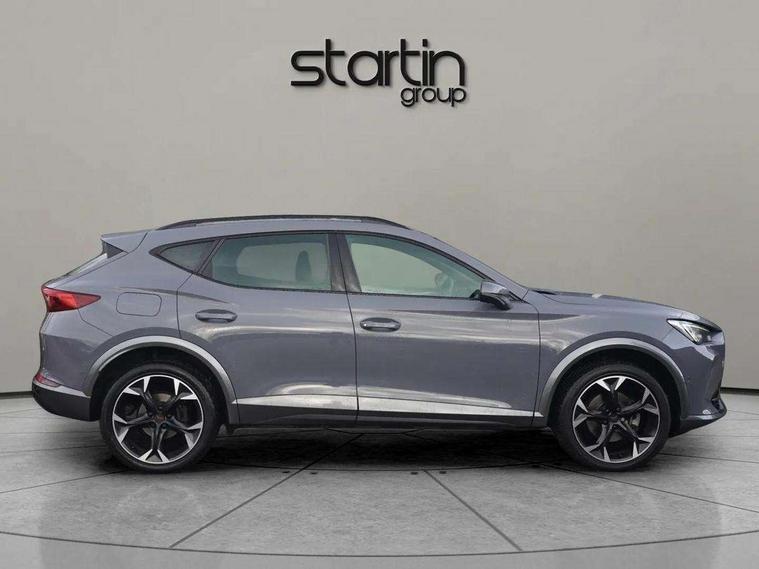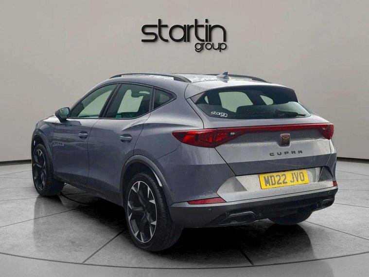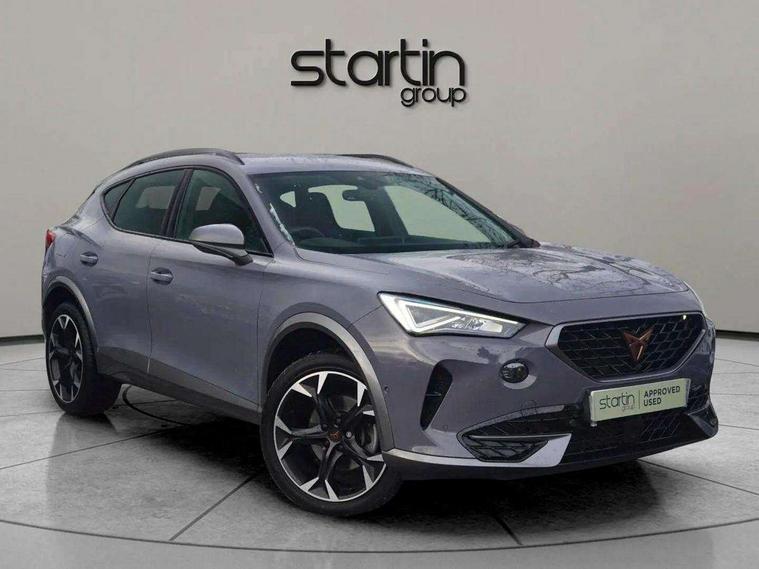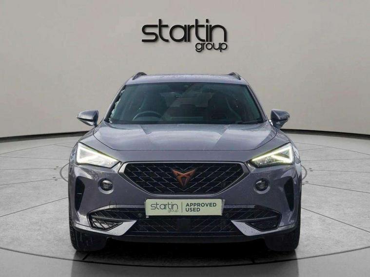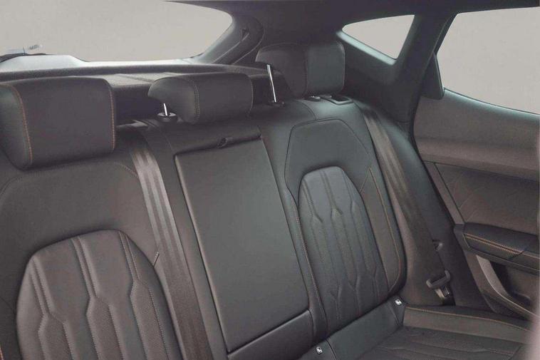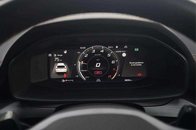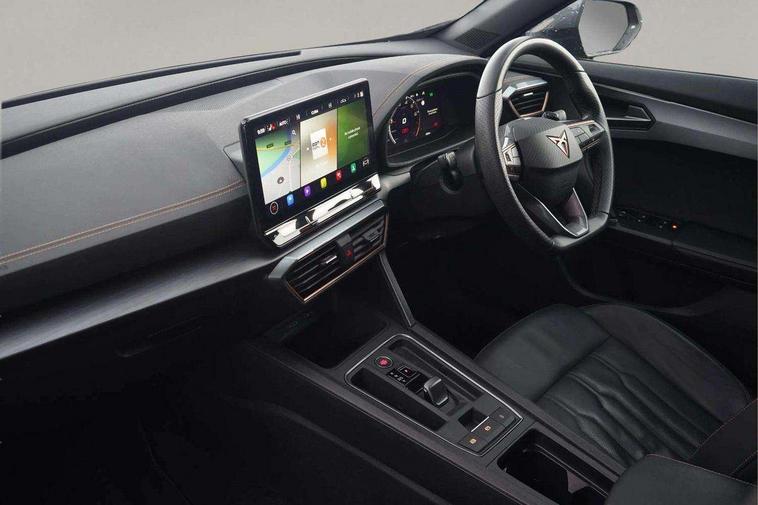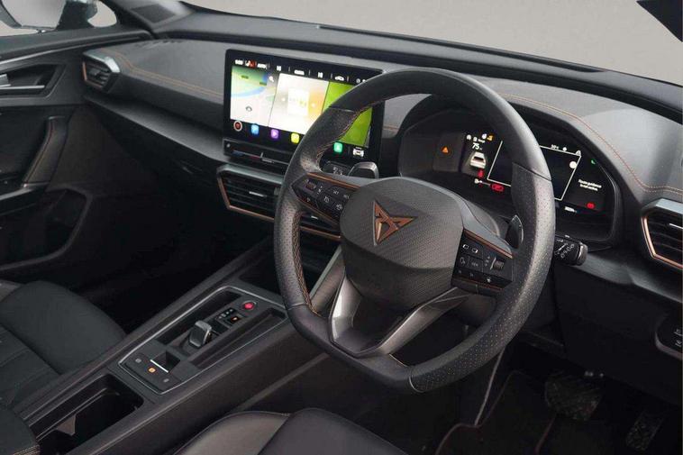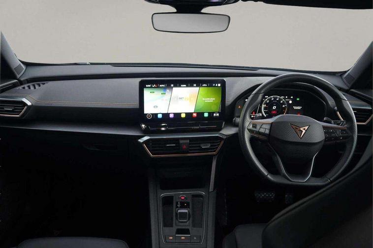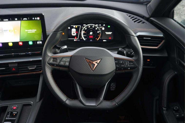 Digital cockpit and configurable dashboard, Driver alert system, Driving profile selection, E-call, Forward collision warning with automatic braking, Lane assist, Navigation system with 12'' Touchscreen Display, Park assist (inc front/rear parking sensors), PAS, Predictive adaptive cruise control with speed limiter, Rear view camera, RPM, trip computer, outside temp gauge, instrument light brightness, low fuel warning light, lights on reminder, gearshift indicator, Service interval indicator, Start/stop system with regenerative braking, Voice control system, Wireless apple carplay, Wireless phone charger, Electronic locking differential and dynamic traction support, Standard suspension, 2 front and 2 rear USB type C sockets, Auxiliary input socket, DAB radio, Auto dimming rear view mirror, Body colour door handles, Body coloured bumpers, Dark grey wing mirror, Daytime running light with automatic headlight control and coming home feature, Dynamic headlight range control, Electric front/rear windows, Electrically adjustable heated and folding door mirrors with memory function, Front fog lamps with cornering function, Gloss black roof rails and window surrounds, LED Headlights, LED Taillights with dynamic indicator, Rain sensing wipers, Rear diffuser with black simulated exhaust pipes, Rear side wing doors, Rear wash/wipe, Third brake light, Tinted rear windows, Welcome lights, 12v power supply in centre console, 12V socket, 12v socket in loadspace, 2 front and 2 rear reading lights, 230V socket, 3 seat bench in 2nd row, 60/40 split rear bench seat with armrest and mechanical seat release, Dust/pollen filter, Front and rear head restraints, Front centre armrest, Height/reach adjust steering wheel, Illuminated interior front door sills, Illuminated sunvisor with mirror, Isofix, Leather multi function heated steering wheel with gear shift paddles, Luggage tie-down hooks, Single front passenger seat, Three zone climate control with control panel in rear, Variable luggage/load compartment floor, Wraparound lighting, Genuine Nappa leather Pack - Cupra, 3 point seatbelts on all rear seats, ABS, Brake control system - ESC and brake booster, Child proof door locks, Driver and front passenger airbags with front passenger airbag de-activation, Electronic parking brake, Front and rear disc brakes, Front side curtain airbags, Hill hold control, Seat belt reminder for front and rear seats, Tyre pressure monitoring system, Anti theft alarm system, Keyless entry and start system (KESSY), Locking wheel bolts, Copper and aluminium interior detailing, 19" 'Exclusive' machined sport matte black and silver alloy wheels,