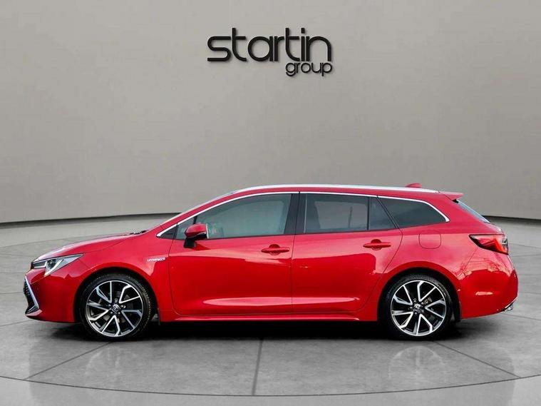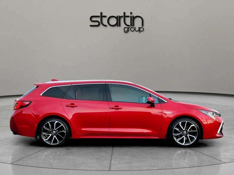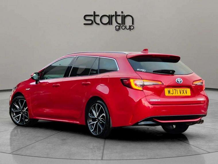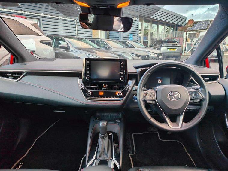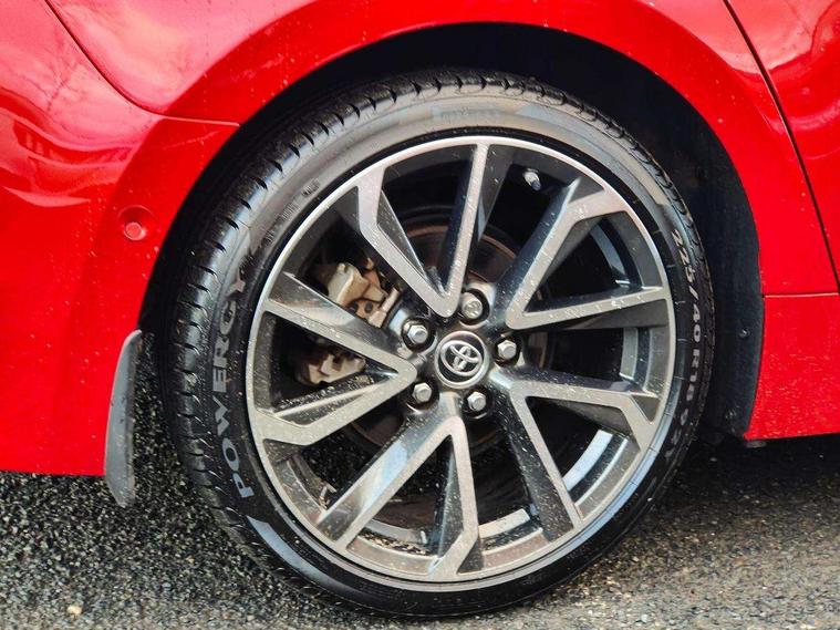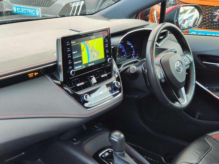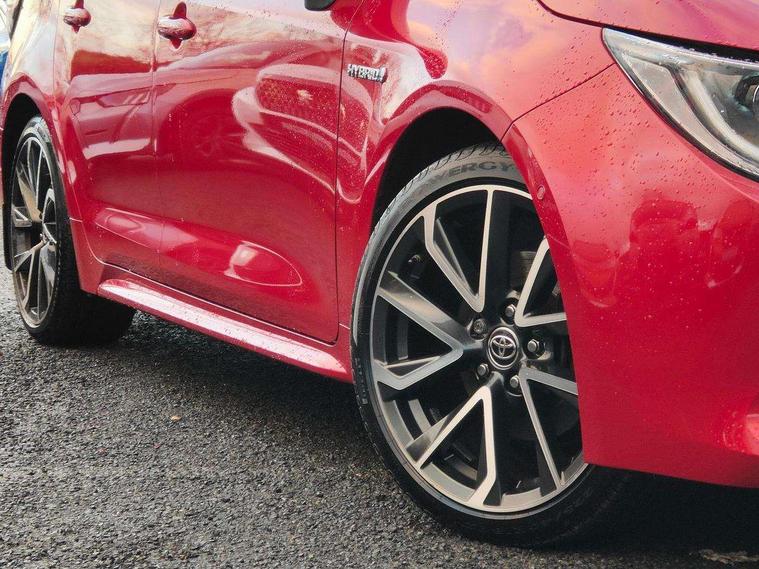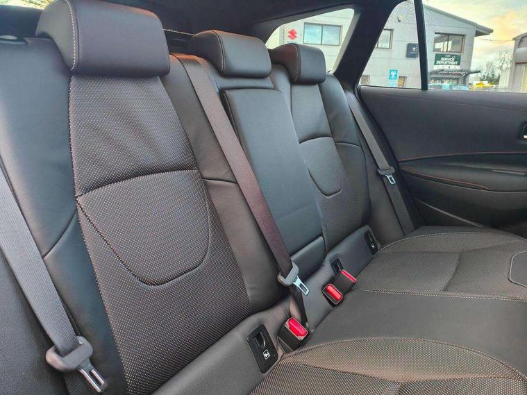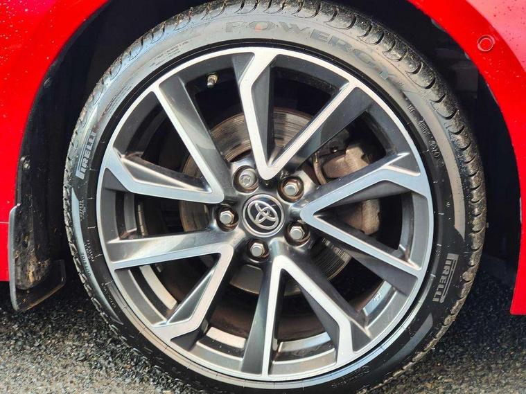 7" Multi information display screen, Bluetooth telephone connectivity, Connected car functionality upgrade, tracker, remote status and e-care, Dynamic radar cruise control (with RSA) including switch on steering wheel, E-call, Electrically assisted power steering, EV drive indicator, Intelligent park assist, Kick sensor for power tailgate, Lane Departure Alert (LDA) switch on steering wheel, Memory on adjustable speed limiter, Push button start, Reversing camera, Smartphone integration with Apple CarPlay and Android auto, Gasoline particulate filter, Vehicle Stability Control (VSC), 6 speakers, 8" Touchscreen with MM19 Multimedia system and voice recognition, AM/FM radio, DAB Digital radio, Toyota touch 2 with go navigation system, USB and Aux in connectors + 12V front outlet, USB charging port in centre storage box, Aluminium roof rails, Anti-jam protection on power windows, Auto dimming inside rear view mirror, Auto up and down function on all power windows, Automatic folding mirrors, Automatic headlights with high beam assist, Bi-LED headlights with LED lightguide, Black toyota logo in front, Body colour rear spoiler, Body coloured bumpers, Body coloured door mirrors, Body coloured outside door handles, Chrome door scuff plates, Follow me home headlights, LED daytime running lights, LED front fog lights, LED High mounted stop light, LED rear combi lights with LED lightguide, Noise reduction layer on front windows, Power adjustable heated door mirrors, Power front windows, Power rear windows, Privacy glass, Rain sensing wipers, Rear window defogger, Rear window wiper, Reverse tilting door mirrors, Satin chrome surround on lower front grille, Shark fin antenna, Time adjustment on intermittent wiper, Turning signal integrated indicators in door mirrors, Unique lower skirt, Unique side rocker with black insert, UV-filter on driver and passenger windows, 12v power outlet - luggage side, 3 rear headrests, 3 spoke leather steering wheel + gear knob, 60/40 split folding rear seat, Adjustable speed limiter switch on steering wheel, Audio, multimedia and telephone switches on steering wheel, Blue ambient interior illumination to centre tray, front cup holders and front door trim, Boot underfloor storage, Clean air filter, Driver and front passenger personal light, Driver and passenger assist grip, Driver and passenger seatback pockets, Driver and passenger sun visor with mirror and light, Dual sided deck board in boot, Dual zone automatic air conditioning with ECO mode switch, Front and rear cup and bottle holders, Front and rear door pockets, Front head restraints, Full leather upholstery, Heated driver and front passenger seats, Illuminated entry system in room lamp, ISOFIX seat fixing (2 fixings on rear outer seats), Leather gear shift with satin chrome on gear shift console, Leather style armrests, LED boot light, Luggage utility boot rails, Manual height adjustable for driver and front passenger seat, Paddle shifts, Pollen filter, Power adjustable lumbar support on driver seat, Power window switches with satin chrome inserts, Rear armrest with 2 cupholders, Rear passenger air vents, Rear passenger coat hooks (2), Rear passenger personal lights, Retractable tonneau cover with luggage partition net, Satin chrome inside door handles, Shopping bag hooks in luggage compartment, Sliding armrest on centre console box, Slow opening glovebox with lights, Sports seats, Tilt/telescopic steering column, Tonneau cover with under floor storage, Voice recognition switch on steering wheel, Whiplash Injury Lessening (WIL) feature (active headrest) for seats, Parking pack - Corolla, Toyota safety sense 2 pack - Corolla, 3x3 point rear seatbelts, Adjustable driver and front passenger seat belt extender to top anchor point, Anti lock braking system + Electronic brake force distribution, Brake assist function, Downhill Assist Control (DAC), Electronic parking brake, Emergency brake light signal (EBS), Front passenger airbag on/off switch, Front seatbelt reminder, HAC - Hill start assist control, Rear seat belt reminder, Seatbelt pretensioners and force limiters, Supplemental restraint system (SRS) 7 airbags - dual driver, dual side curtain, side impact and driver knee airbags, Traction control, Tyre pressure warning system, Acoustic vehicle alert system (AVAS), Alarm with motion sensor and immobilizer, Remote central locking + deadlocks, Smart entry, Satin chrome dash trim, Soft touch texture on upper dashboard, Stitching on lower dashboard, Stitching on upper dashboard, Tyre repair kit, Unique wheel finish with red wheel cap,