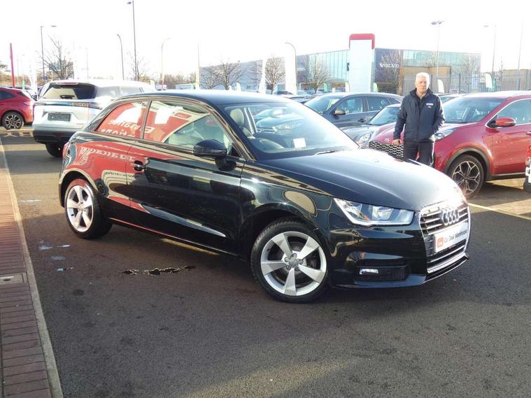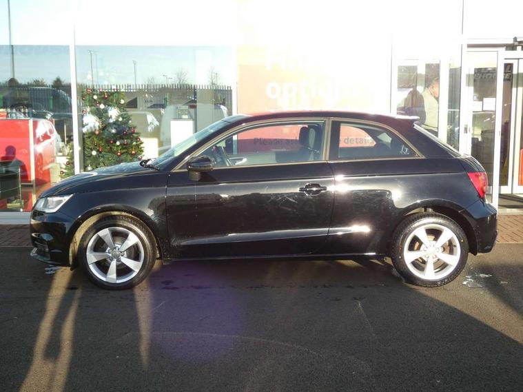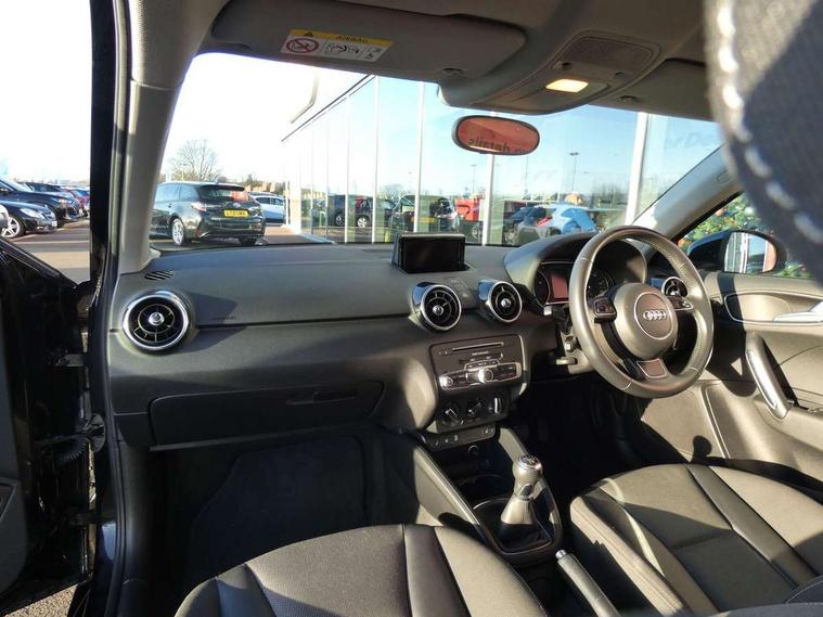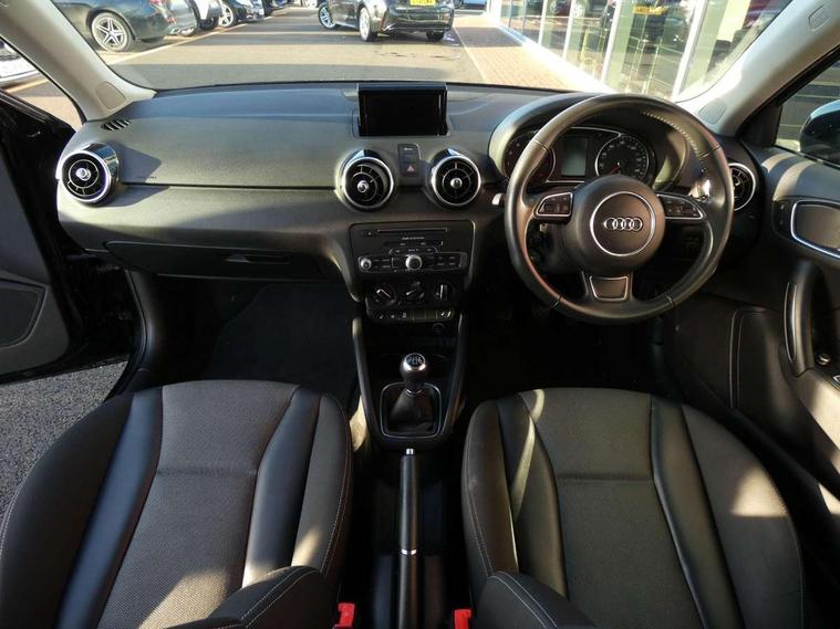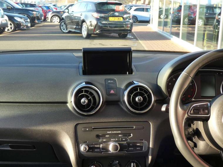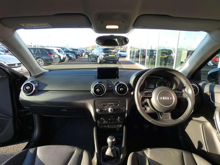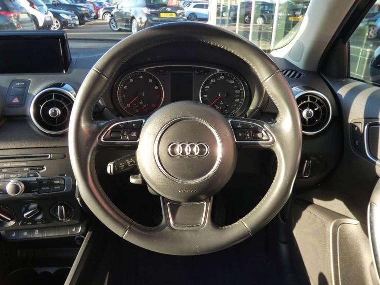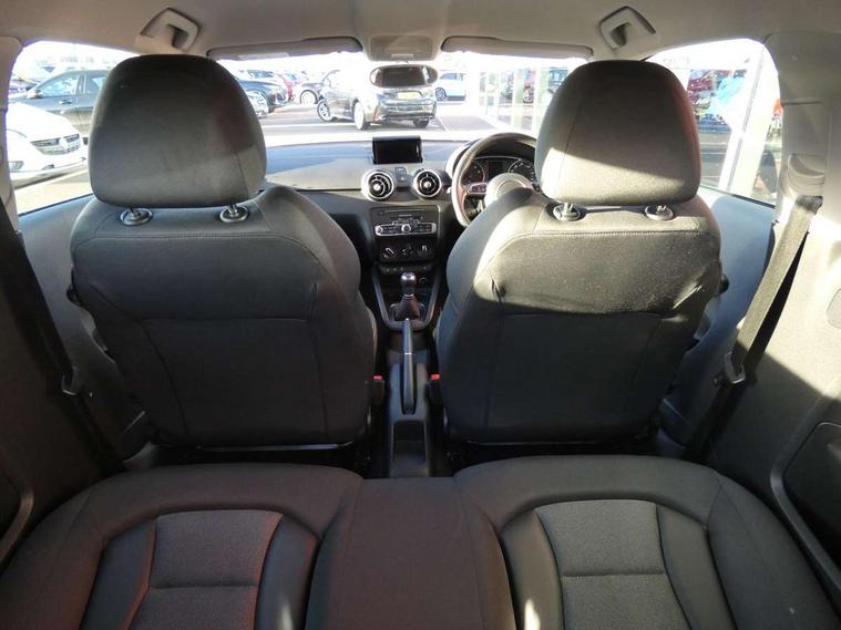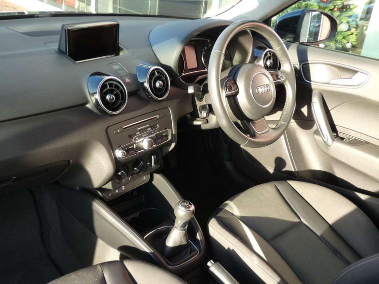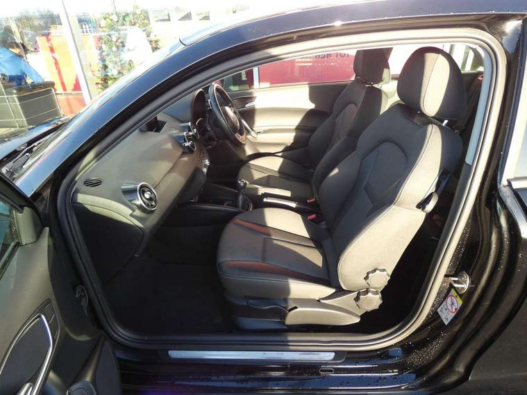 Cruise control, Driver's information system, Electro-mechanical PAS, Low washer fluid indicator, Service interval indicator, Voice control system, Additional SD card reader, Audi music interface, Bluetooth audio streaming, DAB Digital radio, Adaptive brake lights, Body coloured bumpers, Body coloured door mirrors, Electric adjustable door mirrors, Electric front windows, Front fog lights, Heat insulating glass, Heated door mirrors, Heated rear windscreen, Rear wiper, 12V Accessory socket in centre console, 3 spoke leather multifunction sports steering wheel, Adjustable rear head restraints, Cupholders in centre console, Door sills trims with aluminium inlays, Front floor mats, Front head restraints, Front seats - 'Easy Entry', Front sports seats, Height adjustable front seats, Illuminated glovebox, Isofix attachments on outer rear seats, Jack and tool kit, Leather handbrake, Lumbar adjustment for front seats, Rake/reach adjustable steering wheel, Split folding rear seats, Titanium grey cloth headlining, Non smoking pack - A1, ABS/EBD, Brake assist function, Driver and passenger side airbags, Driver/Front Passenger airbags, EDL, ESP with ASR, First aid kit, Front and rear seatbelt reminder, Front passenger airbag deactivation, Head airbags, Height adjustable front seatbelts, Rear three point seatbelts x 2, Tyre pressure monitor, Warning triangle, Locking wheel bolts, Remote control central locking, Thatcham category 1 alarm + immobiliser, Tyre repair kit,