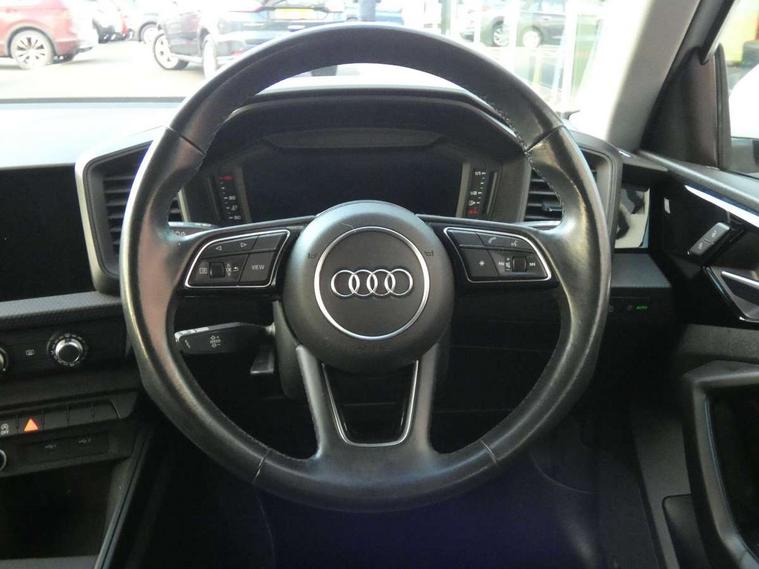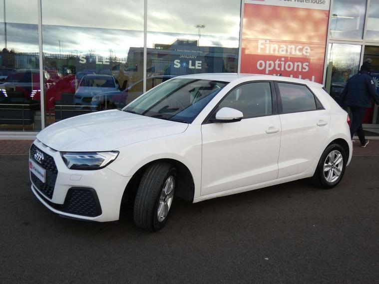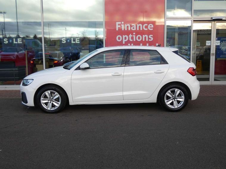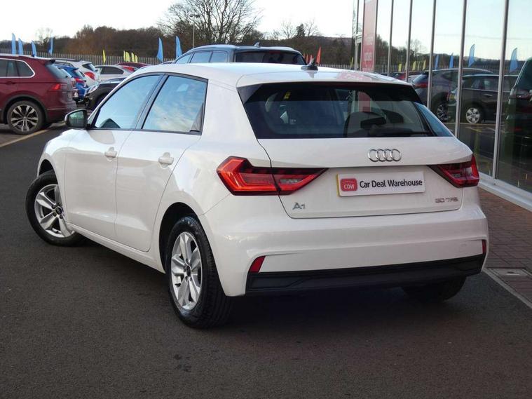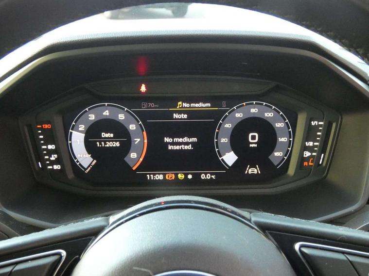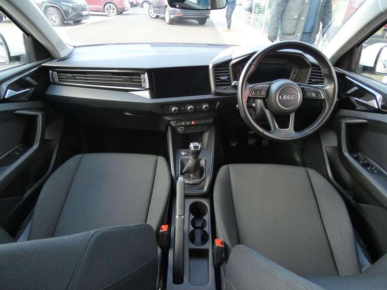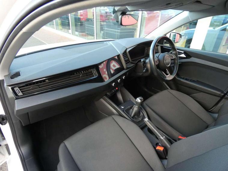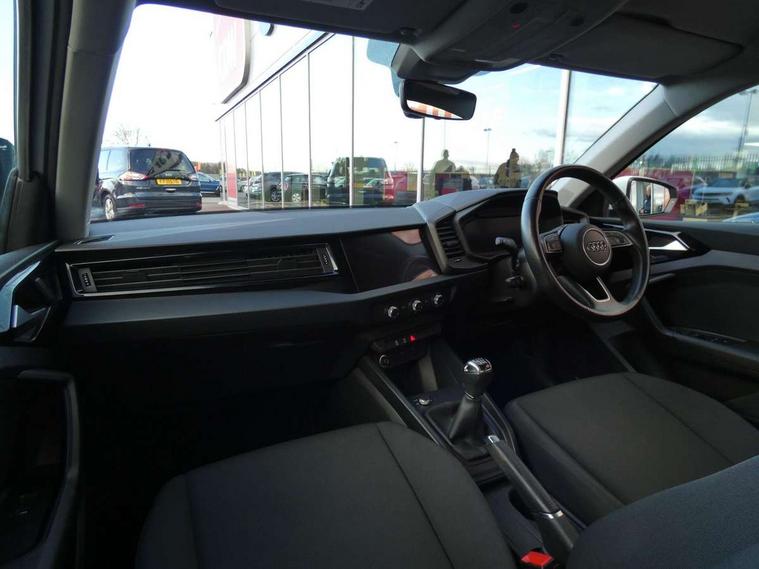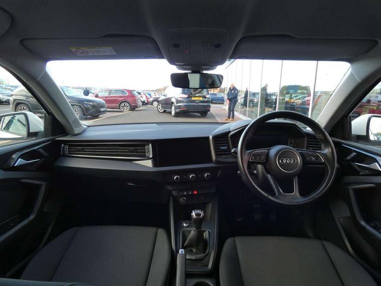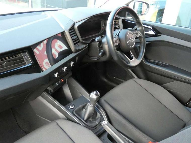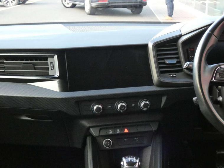 10.25" Digital instrument cluster display classis style instrument dials + speed, odometer, time, outside temperature, telephone menu + fuel level warning, Audi connect safety emergency and service including E-call, Audi smartphone interface with connect compatible smartphone via USB directly MMI display + Nav, music, third party apps controlled via MMI controller, Automatic start/stop system, Bluetooth interface, Driver's information system, Electromechanical power steering, Lane departure warning system, Service interval indicator, Speed limiter, Voice control system, Washer fluid level indicator, Dynamic suspension, 1 x SDXC card reader, 2 x USB type C connection points, 6 passive loudspeakers, DAB Digital radio, MMI radio plus with 8.8" colour MMI display screen and MMI touch, Auto dimming rear view mirror, Body coloured bumpers, Body coloured door mirrors, Electric front and rear windows, Electrically adjustable, heated, folding door mirrors with integrated LED side indicator, Front side air inlets with front spoiler lip and rear diffuser in matt black grained, Heat insulating glass windscreen and side windows, Heated rear windscreen, LED headlights with LED rear lights + dynamic rear indicators + headlight adjustment and high beam, turning light + LED daytime running lights, Radiator grille in matt black, Rain and light sensors, Rear fog lights, Rear wiper, 12V socket in centre console with two cup holders, 3 rear seats with headrests, 3 spoke leather multifunction plus steering wheel, 40:60 Split folding rear seat or folded fully, Air vents, door handle recesses and centre console in black, Delta cloth upholstery, Driver and passenger seat with manual height adjust with forward and backwards adjustment, Front head restraints, Front/rear floor mats, ISOFIX child seat mounting for front passenger and outer rear seats including top tether attachment point of outer rear seats, Leather gear knob with aluminium trim, Leatherette handbrake grip, Luggage compartment light with front and rear reading lights, Manual air conditioning, Titanium grey cloth headlining, Luggage compartment pack - A1, 3x3 point rear seatbelts, Audi pre-sense front with pedestrain and cyclist recognition, Brake assist function, Driver and front passenger airbag with front side and head airbags, Electronic Stability Control including ABS, EBD, ASR and EDL, Front and rear seatbelt reminder, Front passenger airbag deactivation switch, Hill hold assist, Seatbelt height adjustment for front seats, Seatbelt monitoring, Tyre pressure warning light, Warning triangle and first aid kit, Anti theft alarm, Anti theft wheel bolts and loose wheel warning, Immobiliser, Remote central locking with 2 foldaway keys, Black inlays polygon structure, 15" 5 arm design alloy wheels,