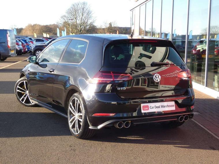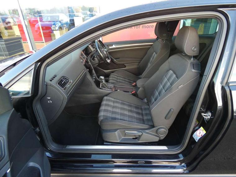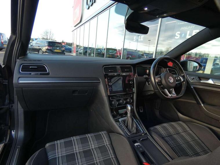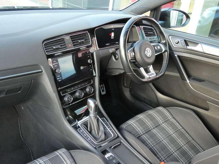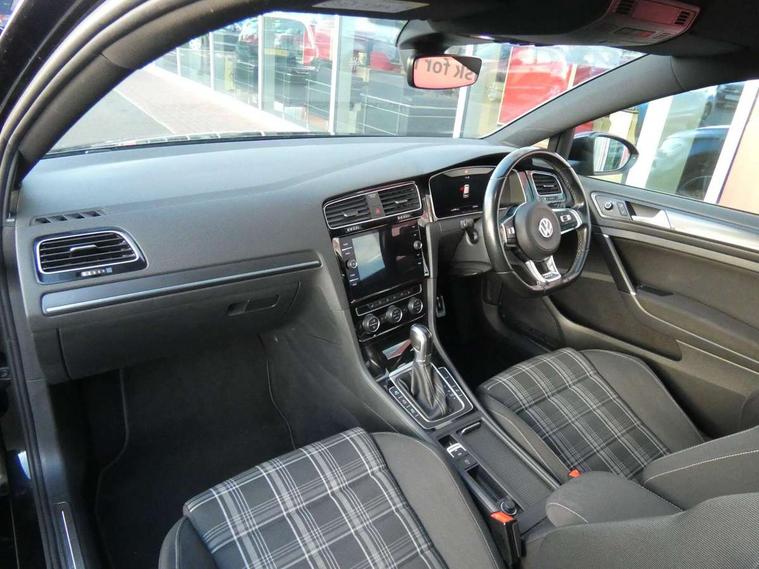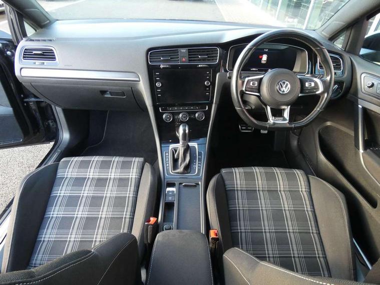 'Lights On' Reminder warning buzzer, ACC - Adaptive cruise control with front assist, forward collision warning, distance monitoring, city emergency brake and speed limiter, Bluetooth telephone and audio connection for compatible devices, Brake pad wear indicator warning light, Driver alert system, Driver profile selection, Driving Mode Selection with four preset modes - Eco, normal, sport or individual modes, Instrument cluster in white, Lane assist with dynamic light assist and traffic sign recognition, Misfuelling protection device, Multifunction computer with visual gear change recommendation for fuel consumption, Progressive power assisted steering, Push tank flap, Rear view camera, Speedo, rev counter, electronic odometer, trip, service interval display, exterior temperature and fuel gauge, Stop/start system, Warning buzzer and light for front seatbelts unfastened, Anti-tramp function, Battery regeneration during braking, Diesel particulate filter, Lowered sports suspension, XDS plus electronic differential lock, Composition media system, DAB Digital radio receiver, MP3/WMA compatability, Multi device interface (MDI) with USB connection, Premium USB cable in choice of either Apple or Android smartphone compatibility, SD card slot, SMS Functionality, USB and SD card connectivity, Volkswagen media control, 3D-LED tinted rear light clusters with indicator sweep function, Black rear diffuser, Body colour door handles, Body colour door mirrors with integrated indicators, Body colour rear roof spoiler, Body colour sports bumpers, Dusk sensor + automatic driving lights, Electric front windows, Electric rear windows, Electrically adjustable and heated door mirrors, Fully galvanised body, Heated rear windscreen, High level 3rd brake light incorporating LED Technology, Honeycomb radiator grille - black, LED daytime running lights, LED front fog lights with static cornering light function, Rear fog lamp, Rear window aerial, Rear window wash/wipe with intermittent wipe, Reflectors in all doors, Shiny black aerofoil downside, Sill extensions, Twin exhaust tailpipe, Unique GTD badging, Uniquely shaped front/rear bumpers, Windscreen wipers/ intermittent wipe + 4 position delay, 12V socket in luggage compartment, 3 rear headrests, 4 load lashing points in luggage compartment, 60/40 split folding rear seat backrest, Bag hook in luggage compartment x 2, Black headlining, Climate control - 2 zone electronic air conditioning with automatic air recirculation and allergy filter, Cooled glovebox, Driver/front passenger seat height adjustment, Dust/pollen filter, Easy entry slide seats (access to rear seats), Front + rear carpet mats, Front centre armrest with storage compartment and two rear air vents, Front seat back storage pockets, Grab handles front x 2, rear x 2 with integrated coat hooks, Height and reach adjustable steering wheel, Illuminated door sills, Illuminated vanity mirrors, Instrument lighting white adjustable panel illumination, Interior light delay, Isofix preparation for 2 rear child seats, Leather gear knob and handbrake grip, Load through provision with rear centre armrest and cupholders x2, Luggage compartment lighting, Multifunction leather steering wheel with GTE logo and selector lever boot grip with grey stitching including paddle shift, Overhead storage box, Stainless steel pedals, Storage box in luggage compartment, Storage compartment in roof console with cover, Storage compartments in front doors, Storage compartments in rear doors, Stowable luggage compartment cover, Sun visors, Variable boot floor, height adjustable and removable, Ambient lighting pack - Golf, Convenience Pack - Golf, Light and Sight pack - Golf, Mirror pack - Golf, 3 rear three point seatbelts, Airbags - Driver's and front passenger's, curtain airbag, Driver's knee, front side impact and passenger's airbag deactivation switch, Anti-lock Braking System (ABS) with Hydraulic Brake Assist (HBA), Automatic post collision braking system, Child locks on rear doors, Driver/Passenger optimised head restraints, Electronic parking brake with auto hold, Electronic stability control (ESC) including Electronic differential lock (EDL) and ASR (Traction control) with deactivation via infotainment system, Front ventilated disc brakes and rear disc brakes, Pre crash preventive occupant protection, Three point height adjustable front seatbelts with tensioners, Tyre pressure loss indicator, Alarm with interior protection and deactivation via infotainment system, Electronic engine immobiliser, Remote central locking with 2 remote folding keys, Chrome plated air vent surround, Chrome plated electric mirror adjustment light switch surround, Honeycomb black decorative inserts, Piano black centre console, Steel space saver spare wheel,