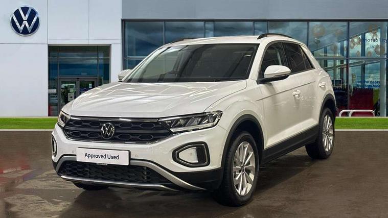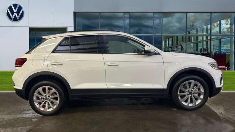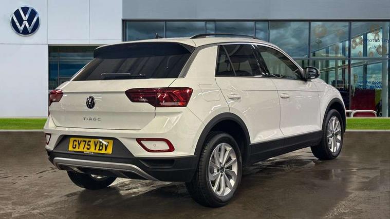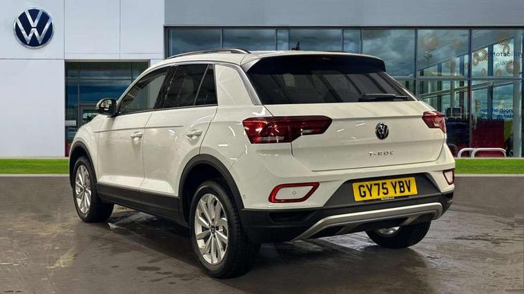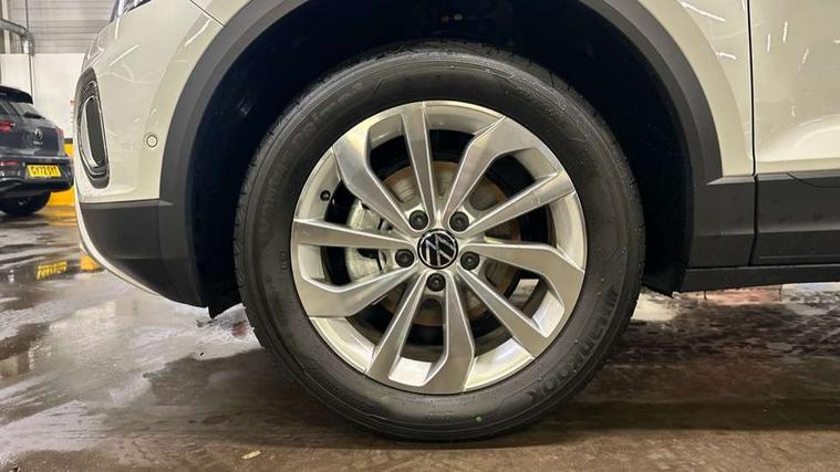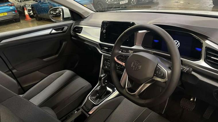 Advanced driver attention and drowsiness monitor, Dynamic road sign display, Emergency call service, Lane keeping system Lane Assist, Mobile phone interface, Modified key software - reduce switch off time for key status change to Long no motion, Online services, Park assist including front and rear parking sensors, Power assisted speed sensitive steering, Rear view camera, Service interval indicator, Tailgate/trunk lid release from outside, Think blue trainer driver tips and journey analysis, Warning sound and light for front seatbelts unfastened, Wireless app connect, Battery regeneration during braking, Front shock absorption, Rear shock absorption chassis with increased ride height, Start/stop function with battery regeneration, DAB Digital radio, Diversity antenna for FM reception, Music playback - MP3, WMA and AAC files, SD card slot, Simultaneous pairing of 2 compatible mobile devices, Title and cover art display, We Connect and We Connect Plus functionality, Auto dimming interior rear view mirror, Automatic hazard lights activation under emergency braking, Automatic headlight control with LED separate daytime running lights with coming/leaving home function, Black roof rails, Body coloured bumpers and radiator grille with chrome trim and front fog lamps with chrome bezel, Body coloured exterior mirror housings and door handles, Electrically adjustable and heated door mirrors, Extended roof spoiler, Exterior mirrors aspherical on driver side, convex on front passenger side, External USB type C socket and charging sockets, Front windscreen wiper with intermittent wipe and 4 position delay, Heated rear window, LED 3rd brake light, LED rear combination lamps, LED rear number plate lights, Power windows with comfort operation and circuit breaker, Privacy glass for rear side windows and rear window, Rain sensor, Rear exhaust tailpipe, Rear fog light on one side and reversing lights on both sides, Rear side wing doors, Rear wash/wipe with intermittent wipe setting, Remote electrically foldable door mirrors, puddle lights and reverse activated passenger's door mirror, 12V power socket in centre console, 3 rear head restraints, 3 seat bench in 2nd row, 4 load lashing points in luggage compartment, Air care climatronic air conditoning system with active combination filter and 2-zone temperature control, Black stitching for floor mats, Ceramique roof liner, Cloth upholstery, Door and side trim panel in cloth, Drawer under drivers seat, Driver/front passenger seat height adjustment, Front centre armrest, Front comfort sports seats, Front cupholders x 2, Front reading light, Front seat back storage pockets, Glove compartment door with light, Instrument lighting, white adjustable panel illumination, Interior ambient lighting and surround lighting, Interior light delay, Isofix child seat preparation, Leather gearshift handle, Load-through provision with cup holder when folded down ('Unsplit rear seat bench, split folding backrest, with centre armrest), Luggage compartment lighting, Lumbar support for driver's and front passengers seat, Non-folding front passenger seat backrest, Single front passenger seat, Storage compartment in left and right luggage area, Storage compartment in rear doors, Storage compartments in driver and front passenger doors, Sunvisors with illuminated vanity mirrors, Variable boot floor, height adjustable and removable, Driver assistance pack without proactive passenger protection - T-Roc Life/Match, 3 point height adj front seatbelts + pretensioners, 3 point seatbelts in outer rear with ECE label, ABS, Child locks on rear doors, City emergency braking and pedestrian monitoring, Driver and front passenger airbag with front passenger airbag deactivation, Driver and front passenger safety-optimised head restraints, Drivers seatbelt reminder, Electronic parking brake, Electronic Stability Control (ESC) inc EDL (Electronic Differential Lock) and ASR (Traction Control), Front and rear passengers curtain airbag system including front side airbags, Front disc brakes, Hill start assist, Predictive pedestrian protection, Rear disc brakes, Two tone horn, Tyre pressure loss indicator, Volkswagen roadside assistance, Alarm with interior protection, Keyless locking and starting system keyless access with safelock, Pewter matt decorative inserts for intrument panel, centre console and door panels at the front, Trims for alloy wheels,