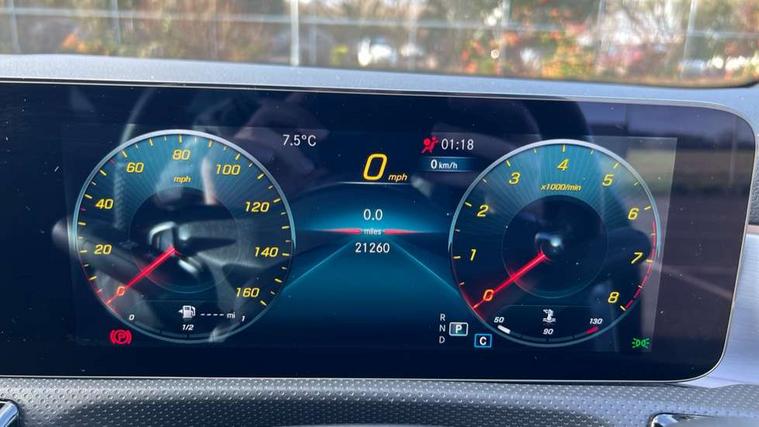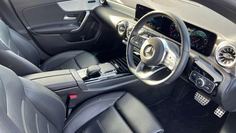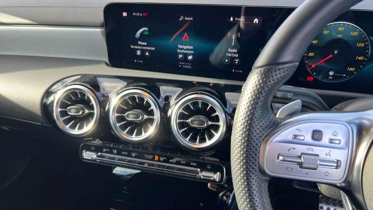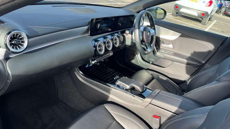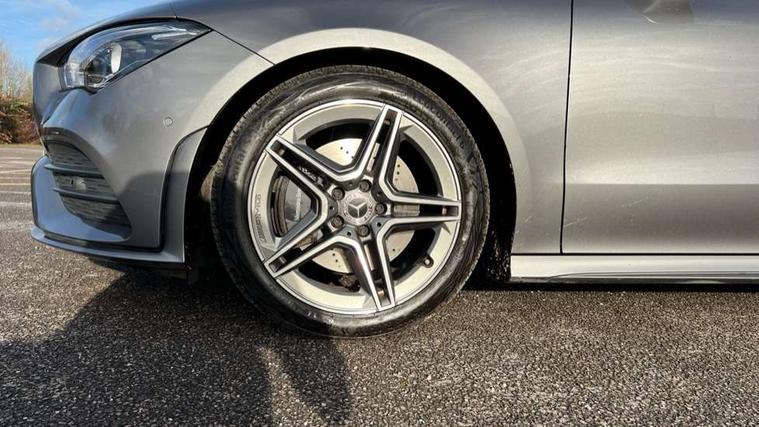 10.25 inch Instrument display with digital cockpit, 10.25 inch touchscreen central media display, Active lane keeping assist, Attention assist - Monitors steering behaviour and long journey fatigue, Bluetooth connection, Car wash mode, Cruise control with limiter, Direct steer system with speed sensitive power steering, DYNAMIC SELECT with a choice of driving modes (ECO, Comfort, Sport and Individual), ECO start/stop function, Fluid level warning indicator for fuel, oil, coolant and washer fluid, Hard-disk navigation, Hey Mercedes Voice activation, Lamp failure indicator, Mercedes me connect including emergency call system, accident recovery, breakdown and maintenance management, Mercedes me remote services, Outside temperature gauge, Owners manual and service booklet in English, Pre-installation of private car share, Preinstallation for Mercedes Benz link, Radio aerial integrated into front and rear windshields, Service indicator (ASSYST), Smartphone integration with Apple CarPlay and Android auto, Speed limit assist, Trip computer in multifunction display with current consumption indicator, 7G-DCT 7 speed automatic transmission, Lowered comfort suspension, Rear axle multi-link, DAB digital radio tuner, MBUX multimedia system with DAB digital radio and touchpad including satellite navigation, Mid-range sound system, USB (type C) ports (2) in stowage compartment and 1 in front of centre console, Adaptive brake lights, AMG body styling with AMG front apron and rear apron and visible exhaust tailpipe in chrome trim elements, AMG bodystyling side skirts, Body colour bumpers, Body colour door handles, Chrome beltline strips, Chrome weather strip, Diamond radiator grille pins in chrome with silver painted louvres and chrome insert, Electric windows, Electrically adjustable and heated door mirrors with integrated LED indicators, Exhaust system with 2 Visible tailpipe trim elements and rear apron with trim in chrome, Headlamp assist automatic headlamp activation, Heated glass rear windscreen + timer control, High level LED third brake light, Interior mirror with black reading lamps and frameless, LED high performance headlamps with integrated LED daytime running lights, LED tail lamp, Privacy glass with dark tinting on rear side windows and rear window, Rain sensing windscreen wipers with two sensitivity settings, Rear fog lamp, Rear side wing doors, Rear wiper, Window line trim strip in chrome, 3 seat bench in 2nd row, 3 spoke flattened bottom nappa leather multifunction steering wheel with perforated leather in grip area, 40:20:40 split folding rear seat backrests, Air conditioning - Two zone thermotronic luxury automatic climate control with display, Air vents with surround in silver chrome, Automatic child seat recognition sensor, Black roof lining, Brushed stainless steel sports pedals with rubber studs, Floor mats with stitched AMG lettering, Front centre armrest with stowage, Galvanished gear shift paddles on steering wheel, Heated front seats, Illuminated front door sills with changeable cover, Illuminated glove compartment stowage, Interior lighting - 64 colour Ambient lighting, Luggage net on driver/front passenger seat backrest, Manually adjustable front seats, Manually height and reach adjustable steering column, Rear armrest with two integral cup holders for drinks, Rear head restraints, Single front passenger seat, Sport seats with fixed head restraints, Stowage compartment in centre console with retractable cover, Sunvisors with illuminated vanity mirrors, Touchpad on center console, Twin front cupholders, Two outer rear seat isofix and top tether child seat fixing points, Keyless go pack - CLA, Light and sight pack - CLA, Mirror pack - CLA, Parking package - CLA, Seat comfort pack - CLA, Active bonnet pedestrain safety measure which detects an impact and raises bonnet by 65mm, Active brake assist includes forward collision warning system with autonomous braking, Adaptive brake assist with hold function and hill start assist, Anti-lock braking system (ABS), Black seat belts, Bonnet with power domes, Brake pad wear warning indicator, Childproof locks manually operated for rear doors and electrically operated for rear power windows, Crash responsive emergency lighting, Driver and front passenger head and sidebags, Driver and front passenger windowbags, Drivers knee airbag, Dual stage driver and front passenger airbags, Electric parking brake, Electronic stability programme with acceleration skid control, ESP curve dynamic assist, Front and rear seatbelt reminder, Front passenger seat occupancy sensor, Three point rear seat belts, Tyre pressure monitoring system, Warning triangle and first aid kit, Remote central locking and crash sensor with emergency opening function, Urban guard vehicle protection system with immobiliser and interior protection, Light aluminium with longitudinal grain interior trim, 18" 5 twin spoke design alloy wheels painted in titanium grey with high sheen finish, Summer tyres, Tirefit tyre sealant kit,