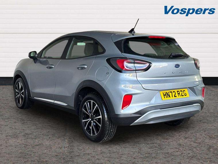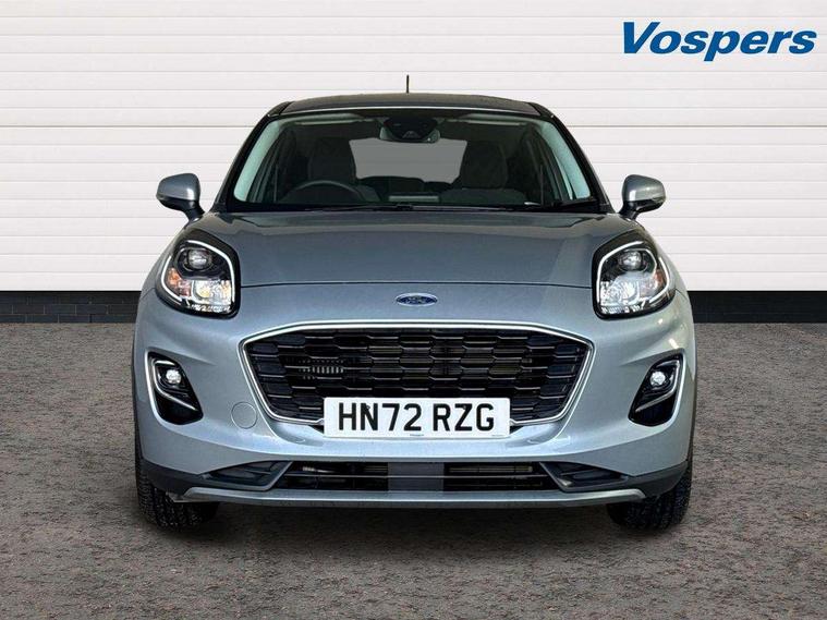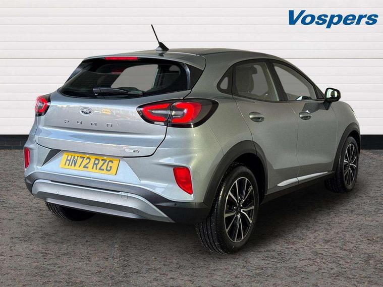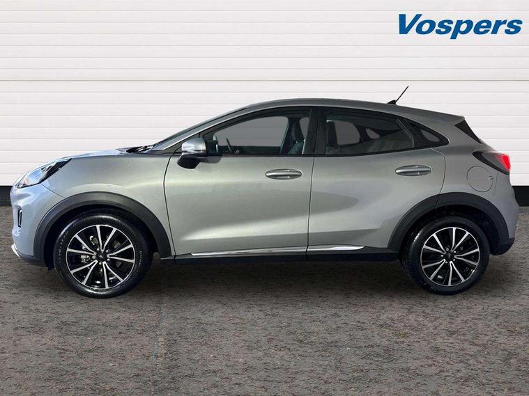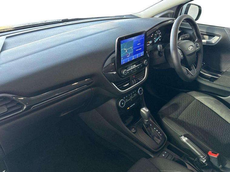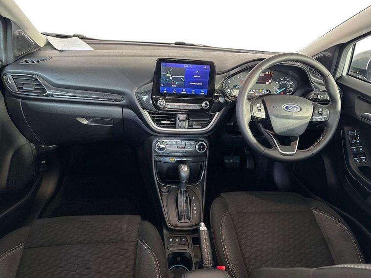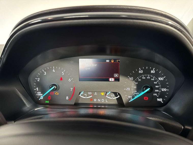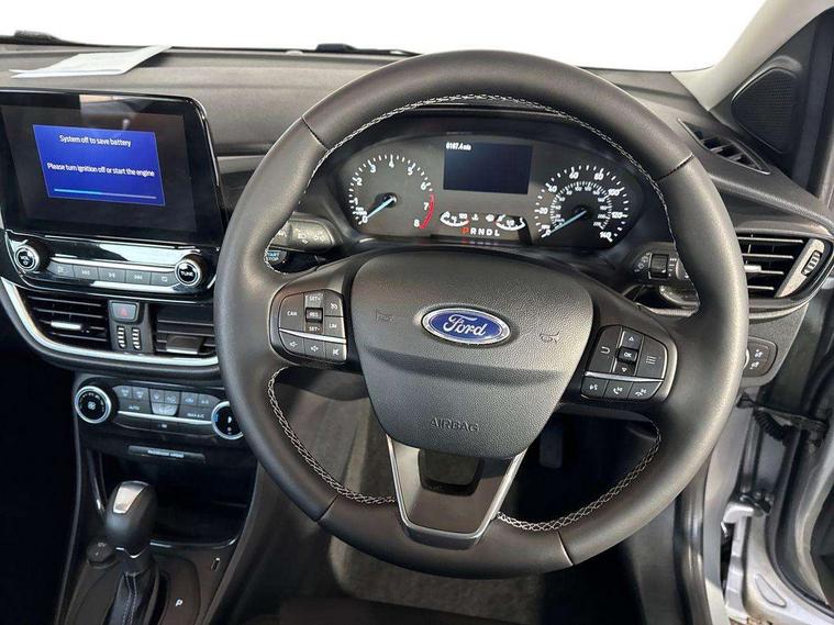 Driver impairment monitor, Emergency call service, Ford easy fuel, Lane keeping aid with lane departure warning, Power assist steering, Power start button, Rear parking sensor, Selectable drive modes(Normal, Eco, Sport, Slippery and Trail), Speed sign recognition, Standard suspension, Automatic headlights with auto high beam, Automatic rain sensing wipers, Body colour rear spoiler, LED rear lamps, Power foldable heated door mirrors with puddle lamps, Projector headlamps with LED day time running lights and front fog lamps, Quickclear heated windscreen, Rear side wing doors, Rear wiper, Third brake light, 3 seat bench in 2nd row, Centre console with armrest and stowage, Electronic automatic temperature control (EATC), Ford megabox extended bootspace, Front and rear head restraints, Front floor mats, Manual 2 way passenger seat adjustment, Manual 4 way driver seat adjust with lumbar adjustment, Sensico leather steering wheel/gear knob/handbrake, Single front passenger seat, Titanium cloth upholstery, Ford SYNC 3 navigation pack - Puma, 3 rear seatbelts, Child safety lock, Electronic stability control (ESC) and hill start assist, Pedestrian/cyclist detection & post-collision braking, Pre collision assist system, Tyre pressure monitoring system (TPMS), Thatcham alarm, 17" 10 spoke absolute black machined finish alloy wheel,