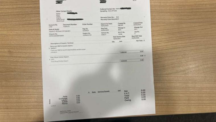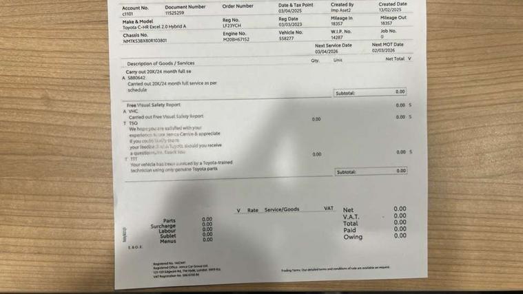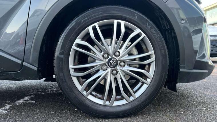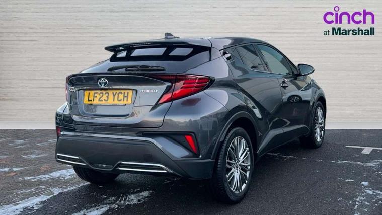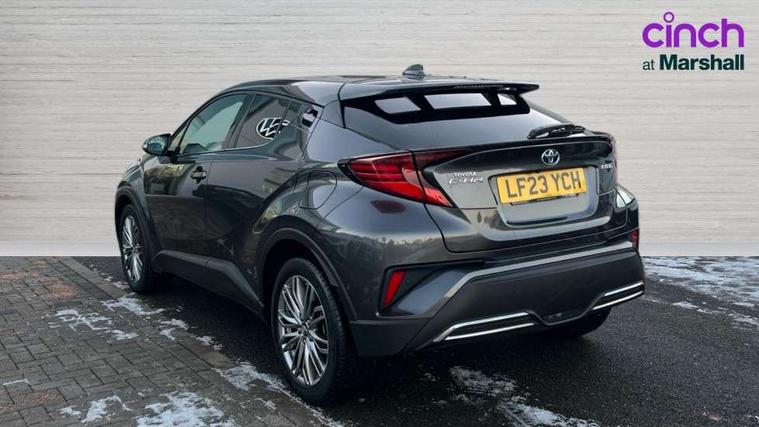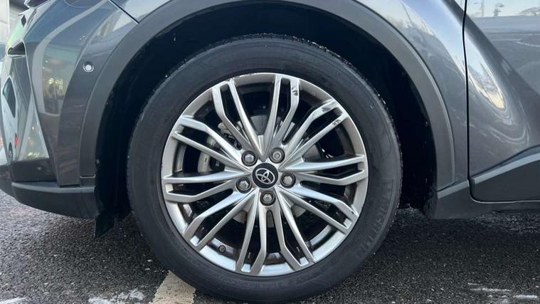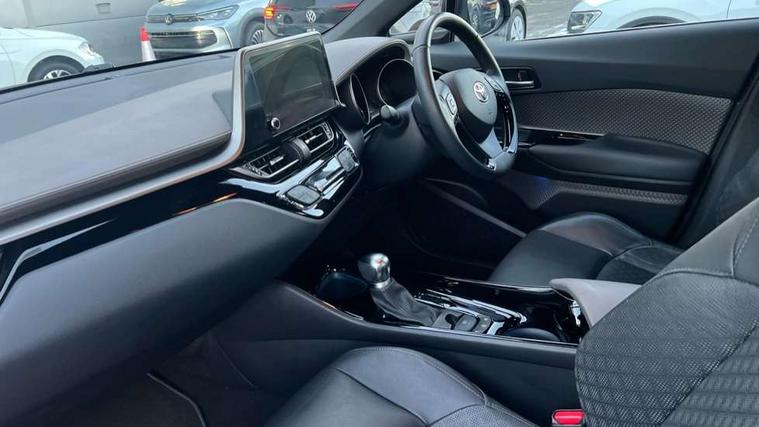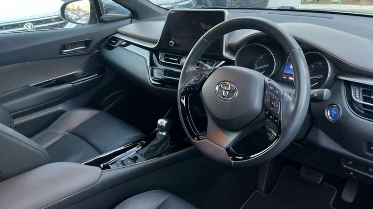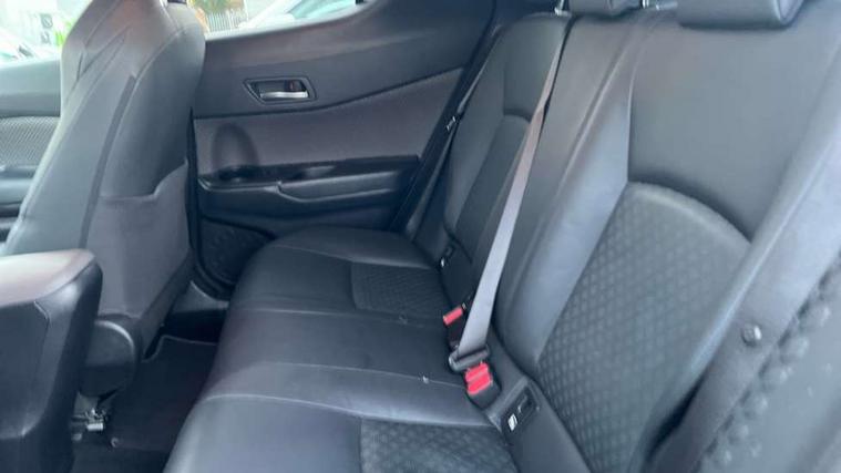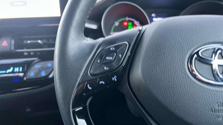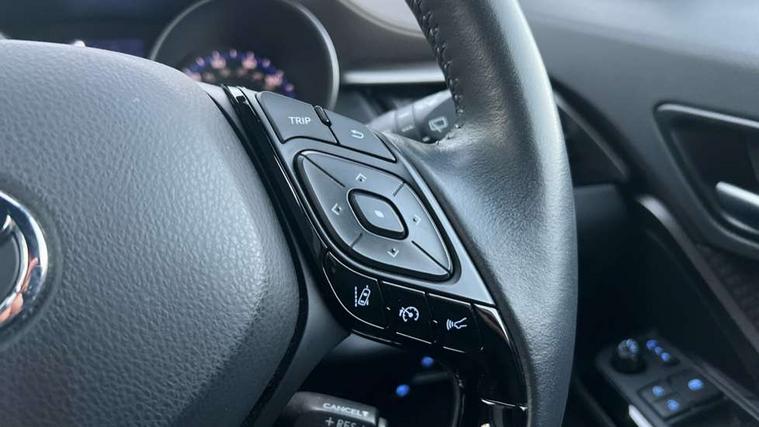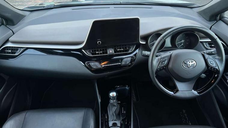4.2" coloured TFT screen for multi-information display, Adaptive cruise control, Apple car play and Android auto, Bluetooth connectivity, E-call, Electric power steering, Hybrid system indicator, Lane departure alert with steering control, Lane trace assist, Push button tailgate release, Remote boot door release in cabin, Remote boot door release in key, Reversing camera, Road sign assist - RSA, Simple Intelligent parking assist, Smart voice assist, Touch 2 Go navigation system, Trip computer, Voice recognition, Wireless smartphone integration, Vehicle Stability Control (VSC), 6 speakers, AM/FM radio, DAB Radio (Digital Audio Broadcasting), Toyota touch 2 multimedia system with 8" display, USB connector, Wi-fi connectivity, Adaptive front light system, Adaptive LED Headlights, Anti-jam protection on power windows, Auto high beam, Auto up and down function on all power windows, Automatic headlight levelling, Automatic headlights, Automatic headlights cut-off, Black and body coloured rear bumper, Black lower front grille, Black upper front grille, Body colour door handles, Body colour door mirrors, Body colour front spoiler lip, Body coloured front bumper, Boot door release with push button, Electric heated door mirrors, Follow me home headlights, Front and rear power windows, Headlight cut off reminder, Honeycomb lower front grille, LED daytime running lights, LED fog lights, LED front light guide, LED High mounted stop light, LED rear brake lights, LED rear combination lights, Noise reduction layer on front windows and windscreen, Power adjustable door mirrors, Privacy glass, Rain sensor, Rear sequential indicators, Rear side wing doors, Rear spoiler, Rear tailgate, Rear window defogger, Rear window wiper, Shark fin antenna, UV-filter on driver and passenger windows, UV-filter on rear windows, Variable front intermittent wipers, 12v power outlet - front, 3 rear headrests, 3 seat bench in 2nd row, 3 spoke leather steering wheel, 60/40 split folding 2nd row rear seats, Adjustable rear headrests, Adjustable speed limiter switch on steering wheel, Assist grips front and centre pillar, Audio and telephone switches on steering wheel, Black front door assist grips, Blue ambient lighting on front cup holders, Blue ambient lighting on front doors, Boot light, Chrome interior door handles, Driver and front passenger personal light, Driver and front passenger Whiplash Injury Lessening seats, Driver and passenger seatback pockets, Dual zone automatic air conditioning, Floor mats, Front cupholders, Front head restraints, Front sports seats, Glovebox with internal light, Hard tonneau cover, Heated driver and front passenger seats, Heated steering wheel, Hooks for luggage holding net, Humidifying Nanoe air purifier, Illuminated entry system, Isofix attachments on outer rear seats, Leather gearshift, Leather wrapped steering wheel, Light on driver sun visor, Light on passenger sun visor, Manual telescopic steering wheel, Manual tilt steering wheel, Microphone on front personal light, Mirror on driver sun visor, Mirror on passenger sun visor, Multimedia switches on steering wheel, Pollen filter, Power adjustable lumbar support on driver seat, Power tilting cushion on driver seat, Shopping bag hooks, Single front passenger seat, Slow opening on lower glovebox, Voice recognition switch on steering wheel, Leather pack - C-HR, Tech with parking sensor pack - C-HR, 16 Disk front wheel brake, 3x3 point rear seatbelts, ABS+EBD+Brake assist, Electronic parking brake, Front and rear seatbelt reminder, Front passenger airbag on/off switch, Hill start assist control (HAC), Pre collision system with pedestrian detection, Pre-tensioners and force limiters, Rear door child safety locks, SRS Airbags - Driver + Front passenger, front side, front and rear curtain and driver's knee airbags, Toyota safety sense, Tyre pressure monitoring system, Tyre pressure warning system, Acoustic vehicle alert system (AVAS), Glass-breaking alarm sensors, Immobiliser, Intrusion alarm, Intrusion sensor, Motion sensor alarm, Power door locks, Power passenger window lock, Remote central locking, Black lower dashboard, Dark brown upper dashboard, Piano black console, Silver deco line on upper dashboard, Tyre repair kit,