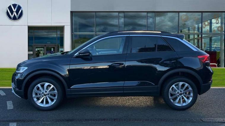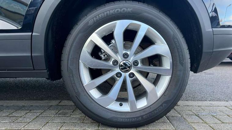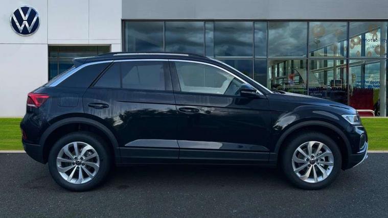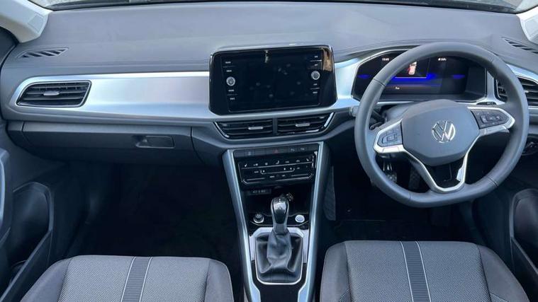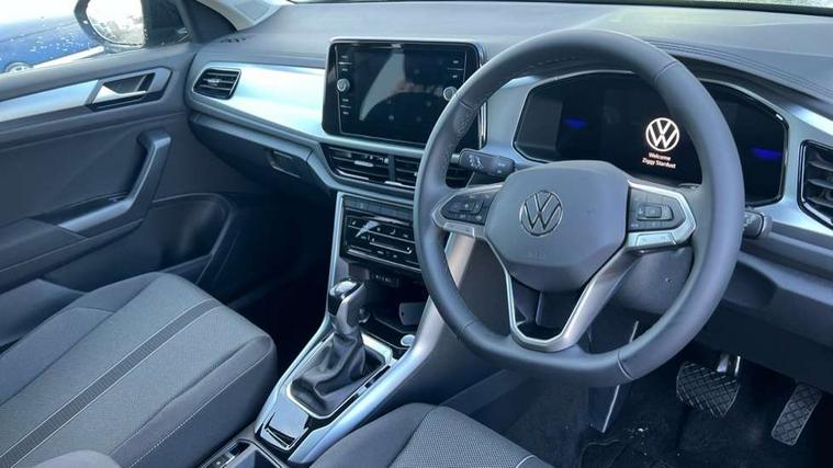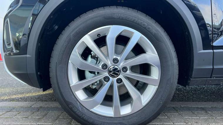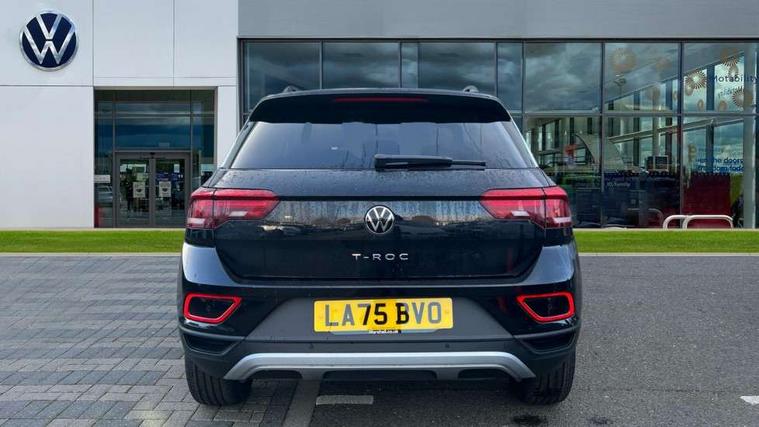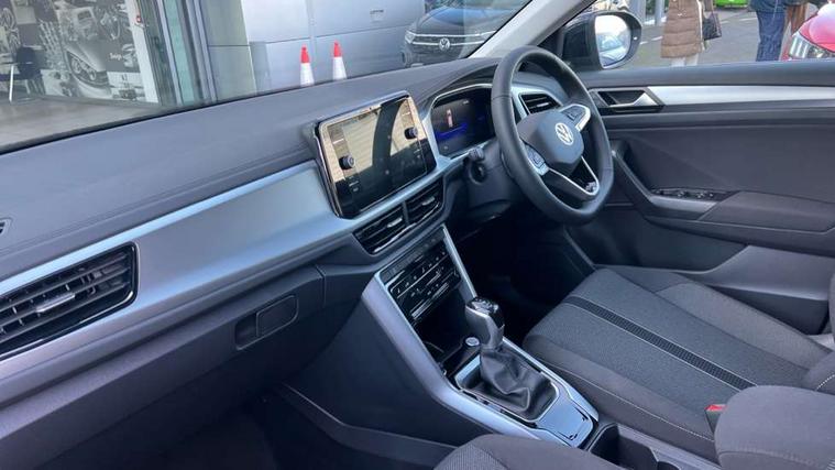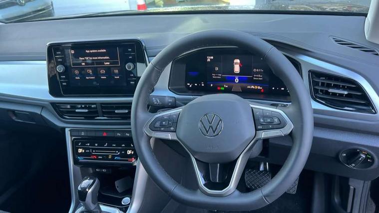 Advanced driver attention and drowsiness monitor, Dynamic road sign display, Emergency call service, Lane keeping system Lane Assist, Mobile phone interface, Modified key software - reduce switch off time for key status change to Long no motion, Online services, Park assist including front and rear parking sensors, Power assisted speed sensitive steering, Rear view camera, Service interval indicator, Tailgate/trunk lid release from outside, Think blue trainer driver tips and journey analysis, Warning sound and light for front seatbelts unfastened, Wireless app connect, Battery regeneration during braking, Front shock absorption, Rear shock absorption chassis with increased ride height, Start/stop function with battery regeneration, DAB Digital radio, Diversity antenna for FM reception, Music playback - MP3, WMA and AAC files, SD card slot, Simultaneous pairing of 2 compatible mobile devices, Title and cover art display, We Connect and We Connect Plus functionality, Auto dimming interior rear view mirror, Automatic hazard lights activation under emergency braking, Automatic headlight control with LED separate daytime running lights with coming/leaving home function, Black roof rails, Body coloured bumpers and radiator grille with chrome trim and front fog lamps with chrome bezel, Body coloured exterior mirror housings and door handles, Electrically adjustable and heated door mirrors, Extended roof spoiler, Exterior mirrors aspherical on driver side, convex on front passenger side, External USB type C socket and charging sockets, Front windscreen wiper with intermittent wipe and 4 position delay, Heated rear window, LED 3rd brake light, LED rear combination lamps, LED rear number plate lights, Power windows with comfort operation and circuit breaker, Privacy glass for rear side windows and rear window, Rain sensor, Rear exhaust tailpipe, Rear fog light on one side and reversing lights on both sides, Rear side wing doors, Rear wash/wipe with intermittent wipe setting, Remote electrically foldable door mirrors, puddle lights and reverse activated passenger's door mirror, 12V power socket in centre console, 3 rear head restraints, 3 seat bench in 2nd row, 4 load lashing points in luggage compartment, Air care climatronic air conditoning system with active combination filter and 2-zone temperature control, Black stitching for floor mats, Ceramique roof liner, Cloth upholstery, Door and side trim panel in cloth, Drawer under drivers seat, Driver/front passenger seat height adjustment, Front centre armrest, Front comfort sports seats, Front cupholders x 2, Front reading light, Front seat back storage pockets, Glove compartment door with light, Instrument lighting, white adjustable panel illumination, Interior ambient lighting and surround lighting, Interior light delay, Isofix child seat preparation, Leather gearshift handle, Load-through provision with cup holder when folded down ('Unsplit rear seat bench, split folding backrest, with centre armrest), Luggage compartment lighting, Lumbar support for driver's and front passengers seat, Non-folding front passenger seat backrest, Single front passenger seat, Storage compartment in left and right luggage area, Storage compartment in rear doors, Storage compartments in driver and front passenger doors, Sunvisors with illuminated vanity mirrors, Variable boot floor, height adjustable and removable, Driver assistance pack without proactive passenger protection - T-Roc Life/Match, 3 point height adj front seatbelts + pretensioners, 3 point seatbelts in outer rear with ECE label, ABS, Child locks on rear doors, City emergency braking and pedestrian monitoring, Driver and front passenger airbag with front passenger airbag deactivation, Driver and front passenger safety-optimised head restraints, Drivers seatbelt reminder, Electronic parking brake, Electronic Stability Control (ESC) inc EDL (Electronic Differential Lock) and ASR (Traction Control), Front and rear passengers curtain airbag system including front side airbags, Front disc brakes, Hill start assist, Predictive pedestrian protection, Rear disc brakes, Two tone horn, Tyre pressure loss indicator, Volkswagen roadside assistance, Alarm with interior protection, Keyless locking and starting system keyless access with safelock, Pewter matt decorative inserts for intrument panel, centre console and door panels at the front, Trims for alloy wheels,