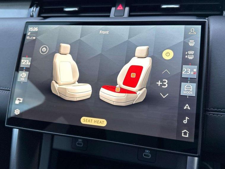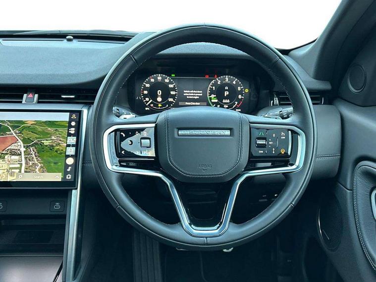 11.4" touch screen, Adaptive cruise control, Android Auto, Apple CarPlay, Blind spot assist, Driver condition monitor, eCall emergency call system, Front and rear parking aid, Head up Display, InControl remote premium, Interactive driver display, Lane keep assist, Locking fuel flap, PAS, Pivi Pro connected navigation system with upgraded Infotainment, Powered tailgate/boot lid, Push button start, Rear collision monitor, Rear traffic monitor, Service interval indicator, Tailgate, Traffic sign recognition with adaptive speed limiter, Trip computer, Wireless device charging, 7 kW onboard charger, All terrain progress control, Coil suspension system, Dynamic stability control, Home charging cable, Public charging cable, Terrain Response 2, Bluetooth connectivity including audio streaming, Digital Audio Broadcast radio-DAB, Steering wheel mounted audio controls, 3rd brake light, Automatic headlight levelling, Automatic headlights, Electric front/rear windows, Electric heated/power fold door mirrors with approach lights and auto dimming driver side, Front and rear recovery eyes, Front fog lights, Heated rear window, Heated windscreen including heated washer jets, Illuminated metal treadplates with brand name script, Matrix LED headlights with signature DRL, front and rear LED animated directional indicators and intelligent high beam assist, P300e badge, Privacy glass, Rain sensing windscreen wipers, Rear fog lights, Rear side wing doors, Rear wing door, Rear wiper, 12V power socket in row 2 and load space, 14 way electric front seats with driver memory, 2 way manual headrests and adjustable bolsters + 4 way electric lumbar support, 5 standard seating configuration, Bright metal pedals, Carpet mats, Centre console with armrest, Ebony morzine headlining, Electrically adjustable steering column with memory, Footwell lights, Front 12V power socket, Front and rear grab handles, Front passenger isofix child seat attachment, Full leather twin-rim steering wheel, Heated and cooled front seats, Heated steering wheel, Loadspace cover, Loadspace light, Manual slide and recline second row seats, Overhead lighting console, Overhead stowage for sunglasses, Rear headrests, Row 1 USB x 3, Row 2 USB-C x 2 and row 3 USB-C x 1, Satin chrome gearshift paddles, Sunvisors with illuminated vanity mirrors, Twin front cupholders with cover, Windsor leather upholstery, Dynamic exterior styling pack - Discovery Sport, Online pack with data plan - Discovery, 3 point seatbelts on all seats, ABS, Brake hold function, Child locks on rear doors, Collision mitigation braking system, Cornering brake control (CBC), Driver/Front Passenger airbags, Drivers knee airbag, Electronic brake force distribution, Electronic parking brake, Emergency brake assist, ESP + traction control, Hill descent control, Hill launch assist, Pedestrian airbag system, Rear seat ISOFIX, Roll stability control, Side and curtain airbags for front and 2nd row seats, Trailer stability control, Tyre pressure monitoring system, Battery Back Up System (BBUS) with tilt sensor, Global lock and unlock switch on driver door, Intrusion sensor, Keyless entry, Locking wheel nuts, Centre stack rails in noble chrome,