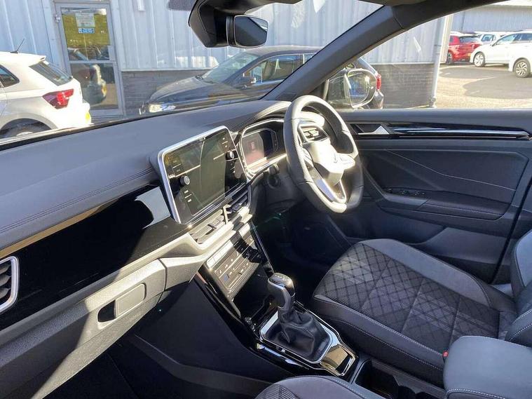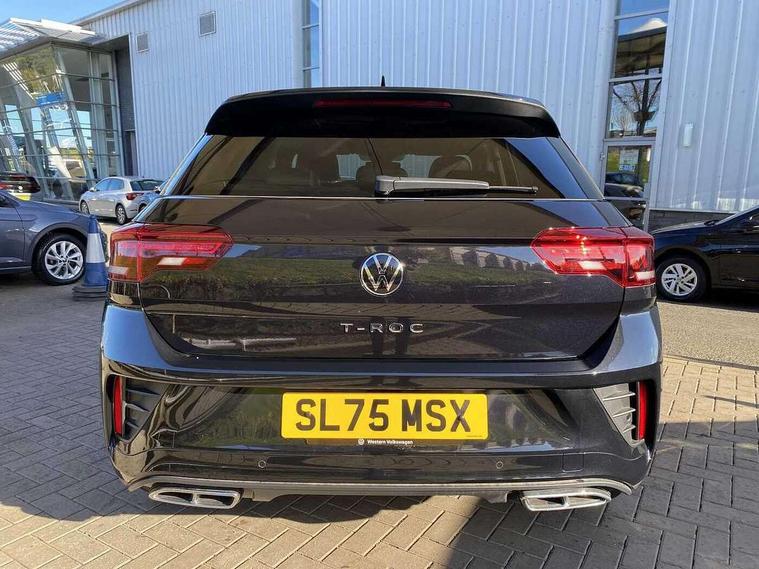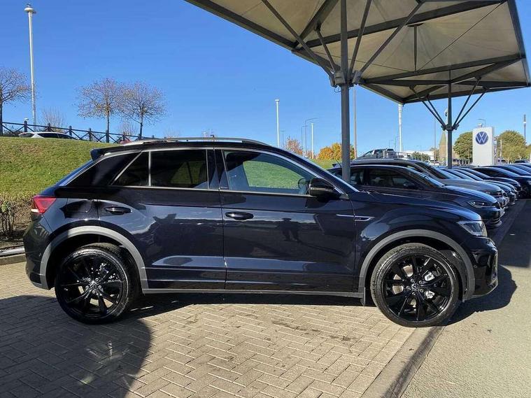 10.25" Digital cockpit pro, Advanced driver attention and drowsiness monitor, Emergency call service, Lane keeping system Lane Assist, Mobile phone interface, Modified key software - reduce switch off time for key status change to Long no motion, Online services, Park assist including front and rear parking sensors, Service interval indicator, Tailgate/trunk lid release from outside, Think blue trainer driver tips and journey analysis, Warning sound and light for front seatbelts unfastened, Wireless app connect, Battery regeneration during braking, Start/stop function with battery regeneration, DAB Digital radio, Diversity antenna for FM reception, Front and rear 6 speakers, Music playback - MP3, WMA and AAC files, Premium USB cable in choice of either Apple or Android smartphone compatibility, SD card slot, Simultaneous pairing of 2 compatible mobile devices, Title and cover art display, We Connect and We Connect Plus functionality, Auto dimming interior rear view mirror, Automatic hazard lights activation under emergency braking, Automatic headlight control with LED separate daytime running lights with coming/leaving home function, Body coloured exterior mirror housings and door handles, Electrically adjustable and heated door mirrors, Extended roof spoiler, Exterior mirrors aspherical on driver side, convex on front passenger side, External USB type C socket and charging sockets, Front windscreen wiper with intermittent wipe and 4 position delay, Heated rear window, LED 3rd brake light, LED rear combination lamps, LED rear number plate lights, Power windows with comfort operation and circuit breaker, Privacy glass for rear side windows and rear window, R-Line design body coloured bumpers, Rain sensor, Rear exhaust tailpipe, Rear fog light on one side and reversing lights on both sides, Rear side wing doors, Rear wash/wipe with intermittent wipe setting, Remote electrically foldable door mirrors, puddle lights and reverse activated passenger's door mirror, 12V power socket in centre console, 3 rear head restraints, 3 seat bench in 2nd row, 4 load lashing points in luggage compartment, Air care climatronic air conditoning system with active combination filter and 2-zone temperature control, Black roof lining, Chrome plated decorative trims, Chrome plated radiator grille inserts, air vent surrounds and light switch surrounds, Door and side trim panel with leatherette insert, Front + rear carpet mats, Front centre armrest, Front cupholders x 2, Front footwell illumination, Front reading light, Front scuff plates with R Line logo, Front seat back storage pockets, Glove compartment door with light, Instrument lighting, white adjustable panel illumination, Interior ambient lighting and surround lighting, Interior light delay, Isofix child seat preparation, Leather gearshift handle, Load-through provision with cup holder when folded down ('Unsplit rear seat bench, split folding backrest, with centre armrest), Luggage compartment lighting, Single front passenger seat, Stainless steel pedals, Storage compartment in left and right luggage area, Storage compartment in rear doors, Storage compartments in driver and front passenger doors, Sunvisors with illuminated vanity mirrors, Variable boot floor, height adjustable and removable, Driver assistance pack without proactive passenger protection - T-Roc, 3 point height adj front seatbelts + pretensioners, 3 point seatbelts in outer rear with ECE label, ABS, Child locks on rear doors, City emergency braking and pedestrian monitoring, Driver and front passenger airbag with front passenger airbag deactivation, Driver and front passenger safety-optimised head restraints, Drivers seatbelt reminder, Electronic parking brake, Electronic Stability Control (ESC) inc EDL (Electronic Differential Lock) and ASR (Traction Control), Front and rear passengers curtain airbag system including front side airbags, Hill start assist, Predictive pedestrian protection, Rear disc brakes, Two tone horn, Tyre pressure loss indicator, Volkswagen roadside assistance, Piano black decorative inserts in dashboard and front door trim panels, Trims for alloy wheels,