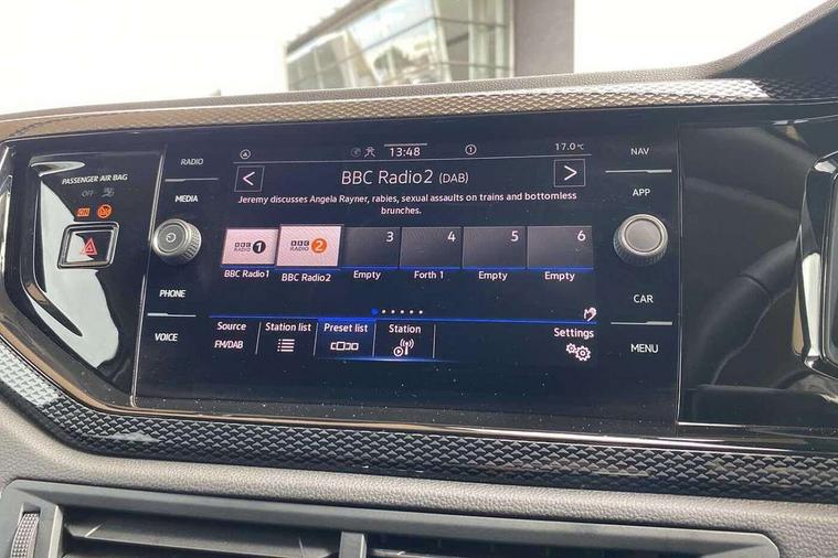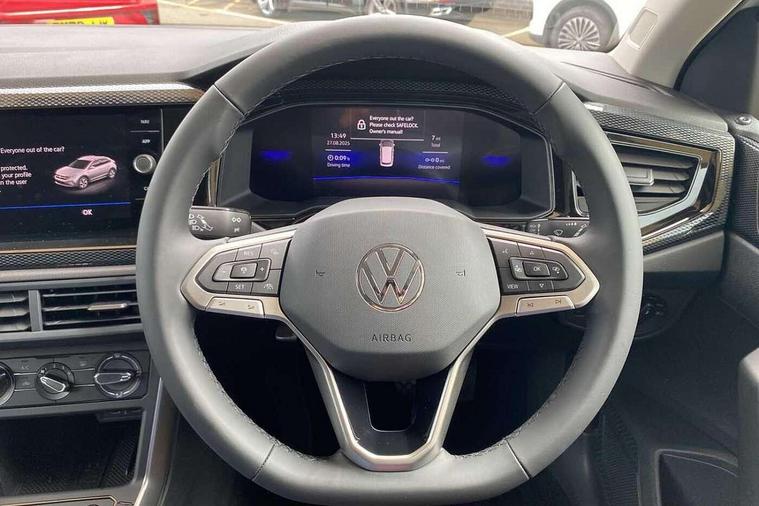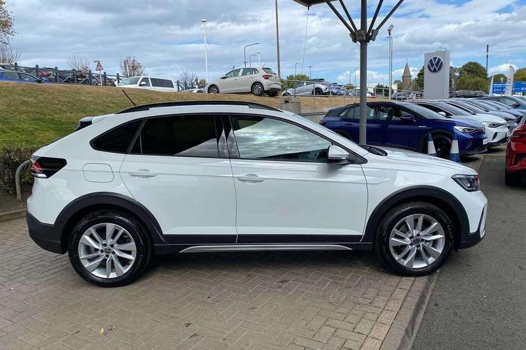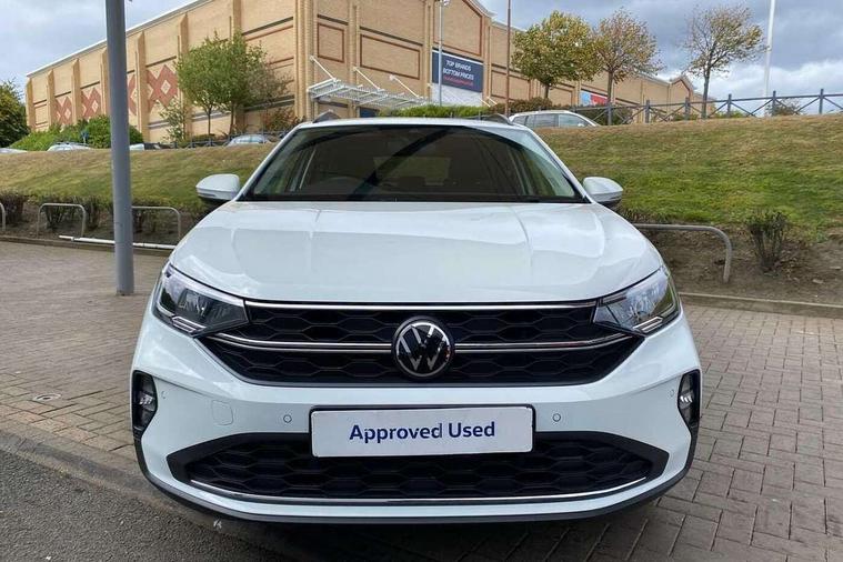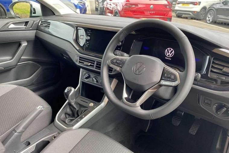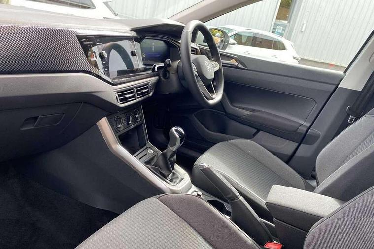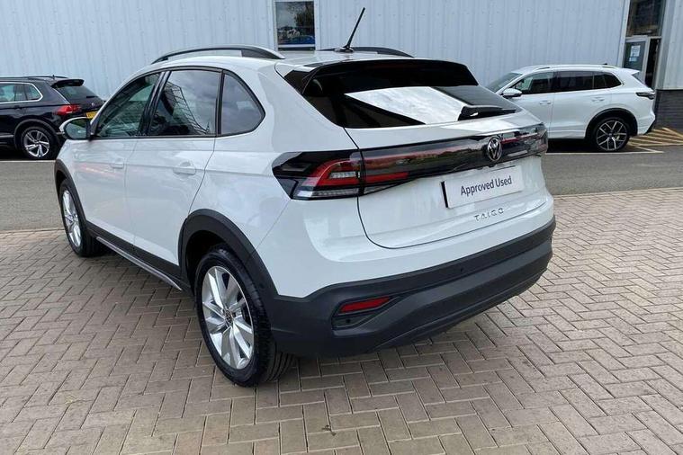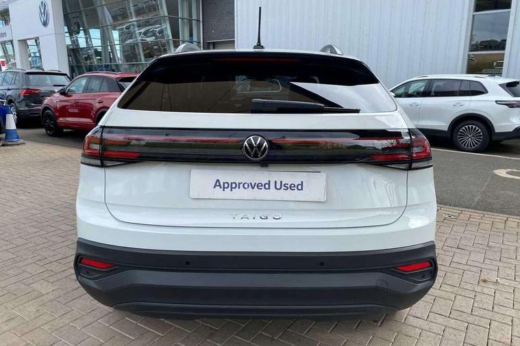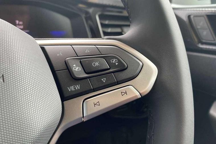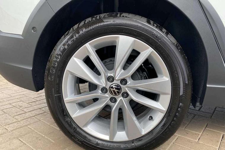 8" Digital cockpit basic display, Advanced driver attention and drowsiness monitor, Dynamic road sign display, e-Call (emergency call), Power Steering, Predictive adaptive cruise control, Rear view camera, Travel assist including emergency assist, Washer fluid level indicator, Wireless Charging including Bluetooth, Start-stop system with battery regeneration (recuperation - energy recovery during braking), Digital radio reception (DAB+), WeConnect plus, Ambient lighting with logo projection, Aspherical driver's exterior mirror, Body coloured bumpers, Body coloured exterior mirror housings and door handles, Electric windows, External USB type C socket and charging sockets, Heat insulating glass windscreen, LED rear combination lamp, LED third brake light, Left convex exterior mirror, Power folding adjustable/heated exterior mirrors and front passenger exterior mirror lowering function, Rear fog light on one side, reversing light on both sides, Rear side wing doors, Rear wash/wipe with intermittent wipe setting, Side windows in heat-insulating glass, from B-pillar and rear window dark tinted, 'Slash/ Austin' Cloth upholstery, 12V socket in centre console, 2 front reading lights, 3 rear head restraints, 3 seat bench in 2nd row, Black carpets, Ceramique headliner, Child seat anchor for child seat system i-Size, 2x top tether and child seat anchor in front on front passenger side, Door and side trim panels in titan black, Driver and front passenger seat height adjustment, Front centre armrest, Handbrake lever handle in leather, Height and reach adjustable steering wheel, Leather trimmed gear knob, Leather wrapped multifunction steering wheel, Luggage compartment floor, Luggage compartment light, Lumbar support for driver's and front passengers seat, Seat covers in titanium black, Single front passenger seat, Split folding backrest with centre armrest and unsplit rear seat bench, Storage compartment under front seats, Sun visors with illuminated vanity mirrors, Titanium black instrument panel, Chrome Package - Taigo, Drivers assistance package - Taigo, Light and sight pack - Taigo, 2 x 3-point seatbelts/outer rear seats with ECE label, 3-point seat belts in front with pretensioner and height adjustment, 3-point seatbelt for centre rear seat, Driver and front passenger airbag with front passenger airbag deactivation, Driver and front passenger safety-optimised head restraints, Electronic stability control, Extended and predictive pedestrian/ cyclist protection, Front and rear disc brakes, Front curtain and side airbags with center airbag, Hill start assist, Manual rear child locks, Single tone horn, Tyre pressure loss indicator, Anti-theft alarm system with interior monitoring, backup horn, and towing protection, Keyless locking and starting system keyless access with safelock, Black (slush) Dashboard, Lava stone black gloss/matt decorative inserts in dash and front door panels, Low rolling resistance tyres,