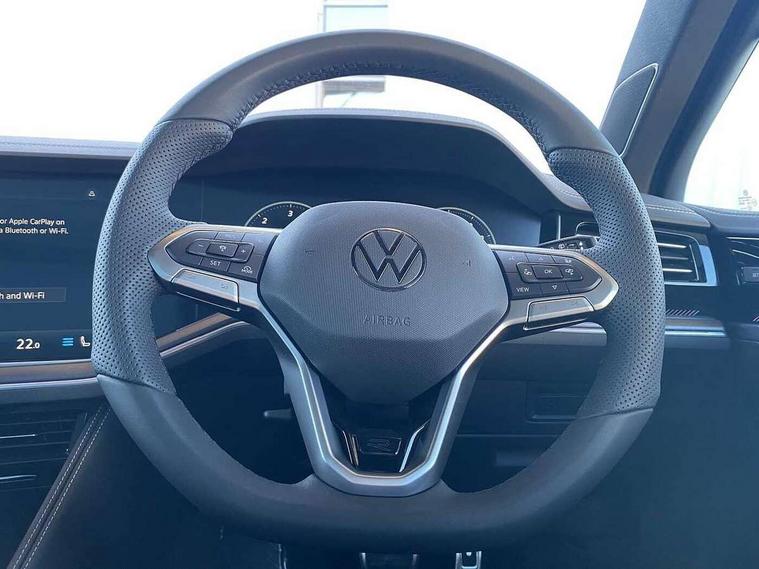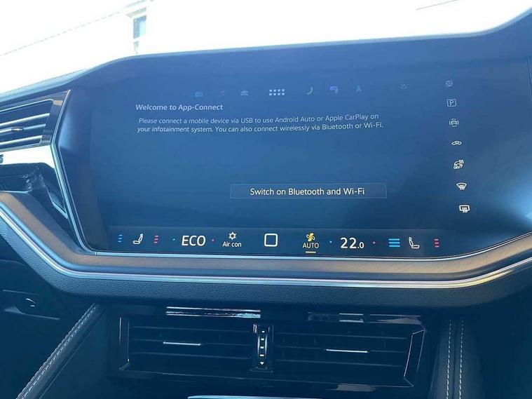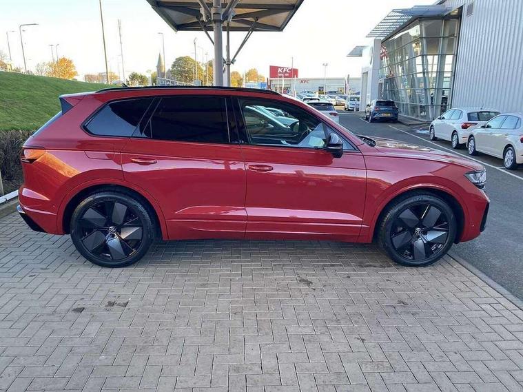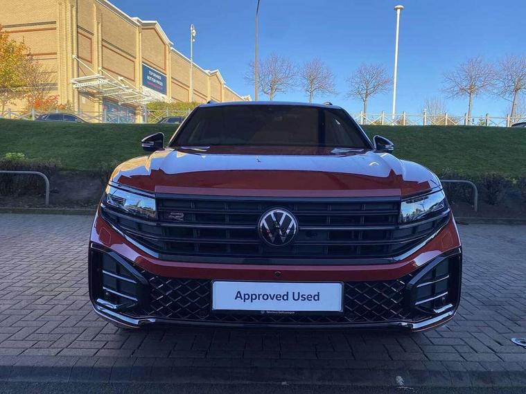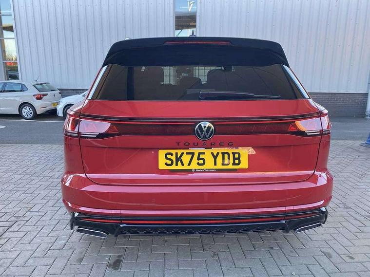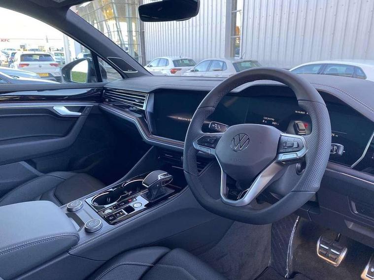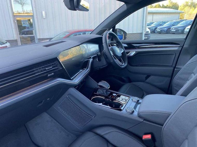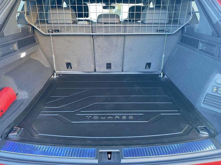 15" Screen Top infotainment system Premium (MIB3), Adaptive cruise control, Advanced driver attention and drowsiness monitor, Driver profile selection, Dynamic road sign display, E-Sim card for online connectivity, eCall emergency system, Innovision cockpit, Intelligent park assist, Mobile phone interface with inductive charging, Multi-colour Active Info display, Park Assist - Sensor controlled steering aid to assist parallel or bay parking, PAS, Warning signal and warning light for front and rear seatbelts not fastened, Wireless app connect, Adaptive chassis control, DAB Digital radio, Diversity antenna for AM/ FM reception, We Connect and We Connect Plus functionality, Automatic coming/leaving home lighting function, Automatic headlights, Black door mirrors, Black style comfort bumpers, Dynamic headlight range control with dynamic cornering light, Electric front tilt/slide panoramic sunroof and fixed rear sunroof, Electrically power adjustable, heated, folding, auto dimming, front passenger exterior door mirror lowering function, External USB type C socket and charging sockets, Gloss black roof rails, HD LED Matrix beam plus digital headlight projection with variable light distribution, Headlight washers, Heat insulating darkened glass in side and rear windows, Highway light, LED 3rd brake light, LED daytime running lights, LED rear combination lamp with variable lighting functions and special styling, Poor weather light, Privacy glass for rear side windows and rear window, tinted glass from B pillar backwards - 80%, Rain sensor, Rear exhaust tailpipe, Rear fog light with back up light on both sides, Rear light bar and illuminated logo, Rear side wing doors, Rear wiper, Stainless steel door sill protection, 12V socket in centre console, 3 rear headrests, 3 seat bench in 2nd row, 4 zone climate control, Airbag label on sun visor and B-pillar, Brushed stainless steel pedals, Double sun visors with illuminated vanity mirrors, Front + rear carpet mats, Front centre armrest, Leather wrapped multifunction sports steering wheel, heated, with touch control and shift paddles, Mechanical rear seat release, Power adjustable lumbar support in front, Power seats in front, right side with memory features and seat cushion depth adjustment, Rear seat backrest and split folding with center armrest, Single front passenger seat, Extra acoustics pack - Touareg, Memory pack plus - Touareg, 3 point seatbelts, outer rear with ECE lable, ABS, Child locks on rear doors, Curtain airbags, Driver and front passenger safety-optimised head restraints, Driver/Front Passenger airbags, Extended pedestrian protection measures, Front assist, Front seat side impact airbags, Generative braking with start and stop system, Height adjustable 3 point front seatbelts with pre tensioners, Passenger airbag deactivate switch, Three 3 point rear seatbelts, Two tone horn, Warning triangle and first aid kit, Alarm system with interior protection, Easy open and close sensor controlled luggage compartment opening and closing with remote unlocking, Keyless Access Keyless locking and starting system with SAFELOCK, Aluminium decorative inserts, Black decorative trims, Gloss black decorative inserts in centre console, Tool kit,