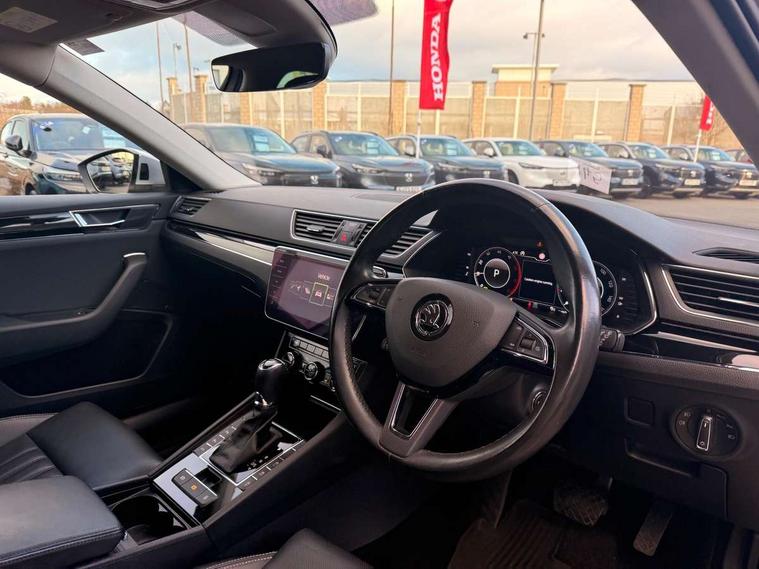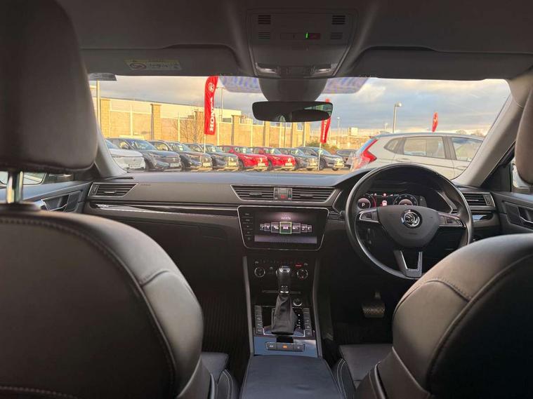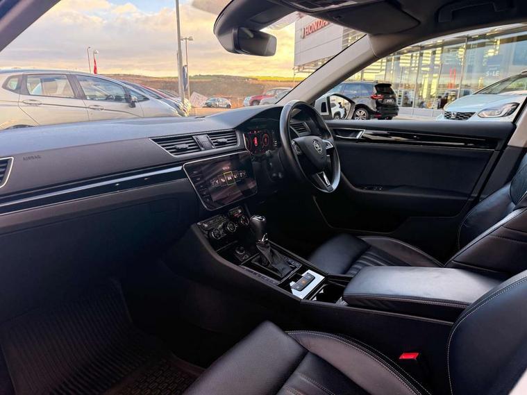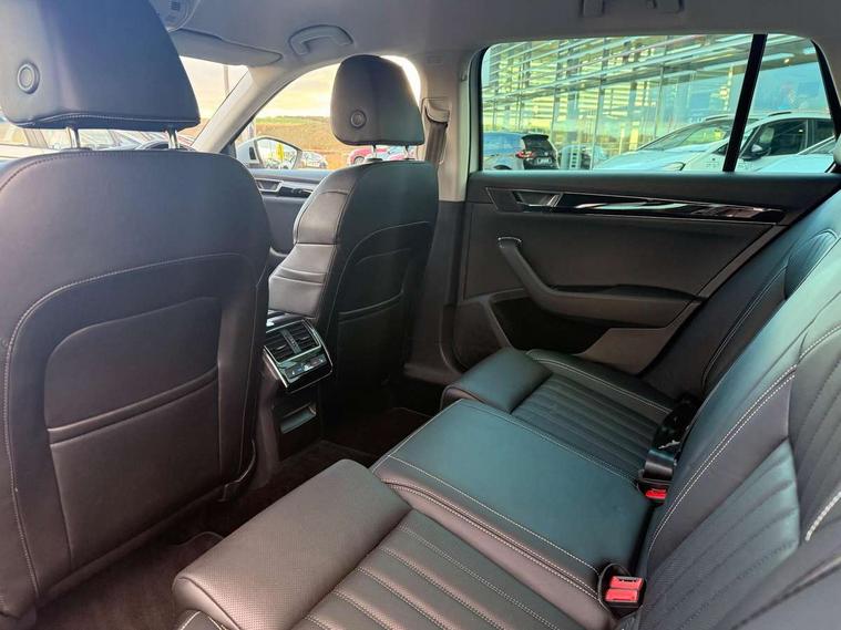 3D map navigation, Adaptive cruise control, Bluetooth system, CareConnect and Emergency Call, Columbus satellite navigation with 9.2" touch screen and integrated Wi-Fi, Driver fatigue sensor, Electromechanical power steering, Front assist with pedestrian protection, Lane change assist and blind spot detection, Park assist (inc front/rear parking sensors), Progressive dynamic steering, Rear view parking camera, Smartlink+ including apple carplay, android auto and mirror link connectivity, Virtual Cockpit - 10.25" digital display, Voice control system, Wi-Fi with LTE internet, Dynamic chassis control, XDS+, 2 USB ports, Bolero radio with 8" touchscreen display, Canton sound system - 610W 10 channel digital amp with 12 speakers, 200W subwoofer, noise cancellation, digital equaliser and 3D surround sound, DAB Digital radio, DVD Drive, In-car voice enhancement, SD card slot, Aero front windscreen wipers with intermittent function, Auto dimming rear view mirror, Body colour door mirrors and handles, Chrome grille surround with chorme rib elements, Chrome rear diffuser, Chrome strip between rear lights and lower strip on side doors, Cornering front fog lights, Electrically adjustable heated and folding door mirrors with memory function, Front and rear electric windows, Full matrix LED headlights with AFS LED DRL integrated with headlight washer LED rear lights(High function), dynamic indicators and lighting animation, Heated windscreen, Privacy glass, Rain sensor, Silver roof rails, 12v power point in centre console, Boot net programme and cargo elements, Dynamic indicators and lighting animations, Electric auxiliary air heater, Front armrest with storage box, Heated front and rear seats, Height adjustable front and rear head restraints, Ice scraper, Illuminated and cooled glovebox, Illuminated luggage compartment, Interior lights with control switches, Isofix child seat fittings on outer rear seats, Overhead glasses storage compartment, Perforated leather upholstery, Rear centre armrest with cupholders, Split folding rear seats, Textile floor mat set, Ticket holder on A Pillar, Tri zone climate control, Ventilated front seats, LED interior light pack - Superb, LED package plus - Superb, 7 airbags - Front, front side, curtain, driver's knee airbag with front passenger deactivation switch, Driver and passenger seatbelts with warning light, Electronic parking brake, ESC including ABS, EBV, MSR, ASR, EDS, HBA, DSR, RBS, CBC, multi-collision brake (MKB) and Auto hold, Hill start assist, Tyre pressure monitor, Alarm with interior monitoring tilt sensor and back up horn, Electronic engine immobiliser, Keyless entry and start/stop, Remote central locking with SAFE system, Carbon interior trim, Piano black inserts,
