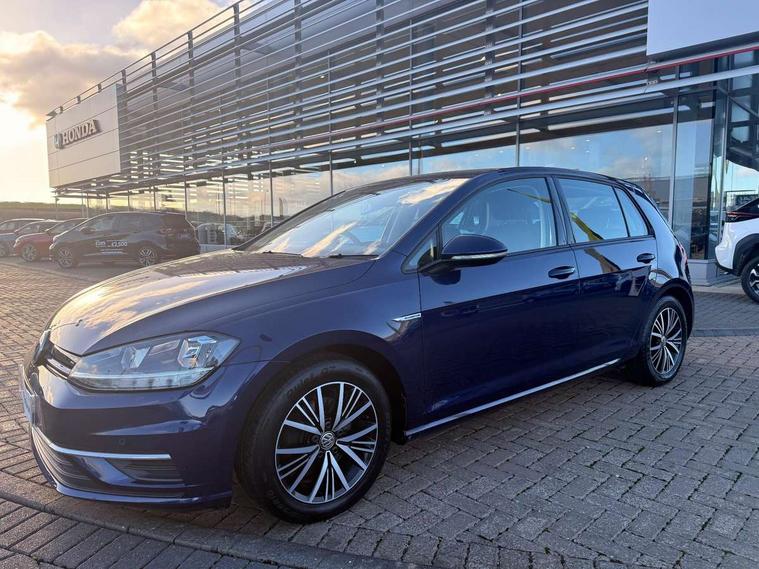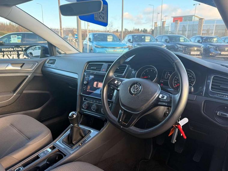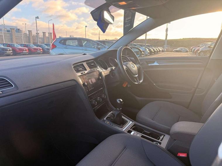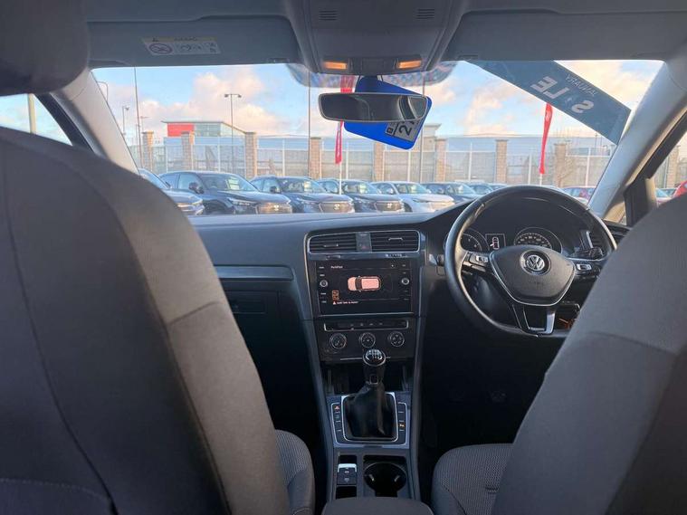 'Lights On' Reminder warning buzzer, 8" colour touch screen, ACC - Adaptive cruise control with front assist, forward collision warning, distance monitoring, city emergency brake and speed limiter, App-Connect, Bluetooth telephone and audio connection for compatible devices, Brake pad wear indicator warning light, Drive mode selector, Driver alert system, Driver profile selection, Front assist, radar sensor controlled distance monitor, city emergency braking + predictive pedestrian protection, Front assistant collision mitigation, Instrument cluster in white, Multifunction computer with visual gear change recommendation for fuel consumption, Power assisted speed sensitive electro-mechanical steering, Speedo, rev counter, electronic odometer, trip, service interval display, exterior temperature and fuel gauge, Stop/start system, Ultrasonic front and rear optical and audible parking sensors, Warning buzzer and light for front seatbelts unfastened, Battery regeneration during braking, XDS electronic differential lock, 8 Speakers, Composition media system, DAB Digital radio receiver, MP3/WMA compatability, SMS Functionality, USB and SD card connectivity, Aerodynamic black radiator grille with chrome trimmed insert, Automatic coming/leaving home lighting function, Automatic dimming rear view mirror/rain sensor, Black rear diffuser, Body colour bumpers, Body colour door handles, Body colour door mirrors with integrated indicators, Electric front windows, Electric rear windows, Electrically adjustable and heated door mirrors, Glavanised body, Heated rear windscreen, High level 3rd brake light incorporating LED Technology, Range adjustable headlights via infotainment system with LED daytime running lights, Rear number plate lights incorporating LED technology, Rear window aerial, Rear window wash/wipe with intermittent wipe, Reflectors in all doors, Remote electrically foldable door mirrors, door mirror puddle lights and reverse activated kerb-view adjustment on passengers door mirror, Tailgate with integrated rear roof spoiler, Windscreen wipers/ intermittent wipe + 4 position delay, 12V socket in luggage compartment, 3 rear headrests, 4 load lashing points in luggage compartment, 60/40 split folding rear seat backrest, Bag hook in luggage compartment x 2, Cooled glovebox, Dust/pollen filter, Front and rear reading lights incorporating LED technology, Front centre armrest with storage compartment and two rear air vents, Front seat back storage pockets, Grab handles front x 2, rear x 2 with integrated coat hooks, Height and reach adjustable steering wheel, Illuminated vanity mirrors, Instrument lighting white adjustable panel illumination, Interior light delay, Isofix preparation for 2 rear child seats, Load through provision with rear centre armrest and cupholders x2, Luggage compartment light, Multifunction leather steering wheel with leather trimmed gear knob, Overhead storage box, Pearl grey headlining, Storage box in luggage compartment, Storage compartment in roof console with cover, Storage compartments in front doors, Storage compartments in rear doors, Stowable luggage compartment cover, Sun visors, Three spoke multi-function leather trimmed steering wheel and gearknob, Variable boot floor, height adjustable and removable, Mirror pack - Golf, 3 rear three point seatbelts, Airbags - Driver's and front passenger's, curtain airbag, Driver's knee, front side impact and passenger's airbag deactivation switch, Anti-lock Braking System (ABS) with Hydraulic Brake Assist (HBA), Automatic post collision braking system, Child locks on rear doors, Driver/Passenger optimised head restraints, Electronic parking brake with auto hold, Electronic stability control (ESC) including Electronic differential lock (EDL) and ASR (Traction control) with deactivation via infotainment system, Pre crash preventive occupant protection, Three point height adjustable front seatbelts with tensioners, Tyre pressure loss indicator, Alarm with interior protection, Electronic engine immobiliser, Remote central locking with 2 remote folding keys, Brushed dark silver decorative inserts in dash and door panels, Chrome plated air vent surround, Chrome-plated light switch surround, Polar night black centre console, Steel space saver spare wheel,