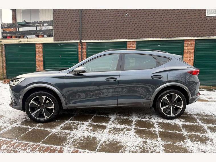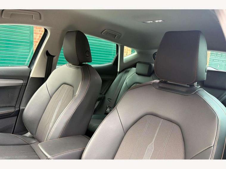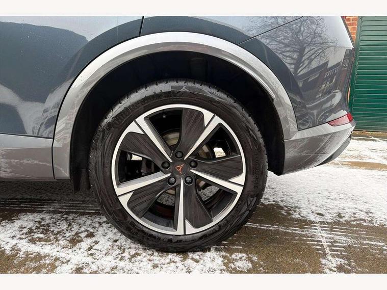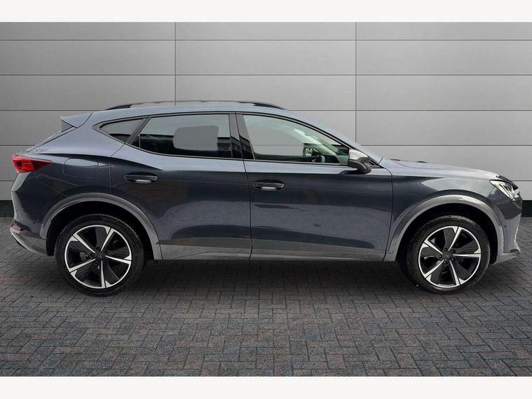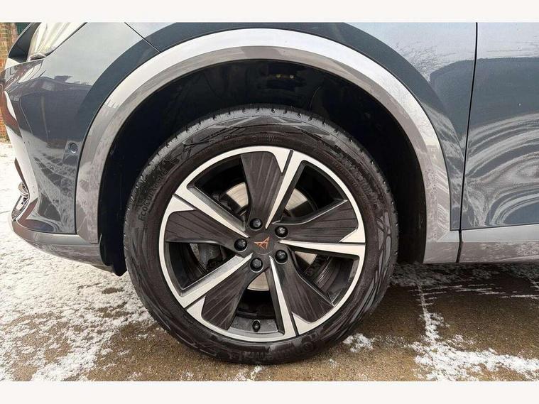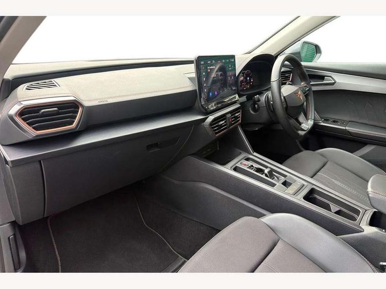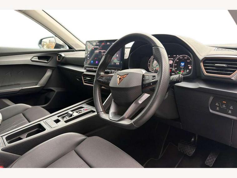 Digital cockpit and configurable dashboard, Driver alert system, Driving profile selection, E-call, Forward collision warning with automatic braking, Lane assist, Navigation system with 12'' Touchscreen Display, PAS, Predictive adaptive cruise control with speed limiter, Rear parking sensors, RPM, trip computer, outside temp gauge, instrument light brightness, low fuel warning light, lights on reminder, gearshift indicator, Service interval indicator, Start/stop system with regenerative braking, Voice control system, Wireless apple carplay, Wireless phone charger, Electronic locking differential and dynamic traction support, Standard suspension, 2 front and 2 rear USB type C sockets, Auxiliary input socket, DAB radio, Auto dimming rear view mirror, Body colour door handles, Body coloured bumpers, Dark grey wing mirror, Daytime running light with automatic headlight control and coming home feature, Dynamic headlight range control, Electric front/rear windows, Electrically adjustable, heated and folding door mirrors, Front fog lamps with cornering function, Gloss black roof rails and window surrounds, LED Headlights, LED Taillights with dynamic indicator, Rain sensing wipers, Rear diffuser with black simulated exhaust pipes, Rear side wing doors, Rear wash/wipe, Third brake light, Tinted rear windows, Welcome lights, 12v power supply in centre console, 12V socket, 12v socket in loadspace, 2 front and 2 rear reading lights, 230V socket, 3 seat bench in 2nd row, 60/40 split rear bench seat with armrest and mechanical seat release, Dust/pollen filter, Front and rear head restraints, Front centre armrest, Height/reach adjust steering wheel, Illuminated interior front door sills, Illuminated sunvisor with mirror, Interior ambient lighting, Isofix, Leather multi function heated steering wheel with gear shift paddles, Luggage tie-down hooks, Manually adjustable height and lumbar support for front seats, PVC/Cloth upholstery with copper stitching + Sport seats, Single front passenger seat, Three zone climate control with control panel in rear, Variable luggage/load compartment floor, Safety and driving pack (M) - Formentor, 3 point seatbelts on all rear seats, ABS, Brake control system - ESC and brake booster, Child proof door locks, Driver and front passenger airbags with front passenger airbag de-activation, Electronic parking brake, Front and rear disc brakes, Front side curtain airbags, Hill hold control, Seat belt reminder for front and rear seats, Tyre pressure monitoring system, Anti theft alarm system, Keyless entry and start system (KESSY), Locking wheel bolts, Copper and aluminium interior detailing,
