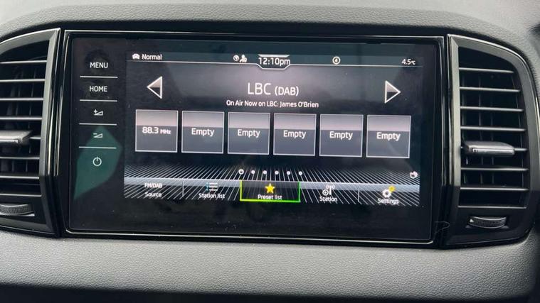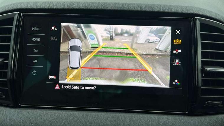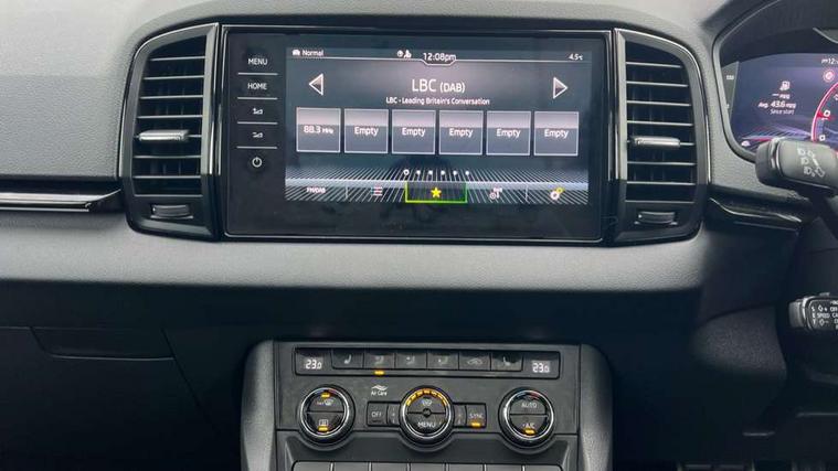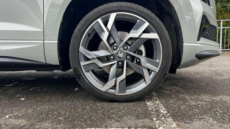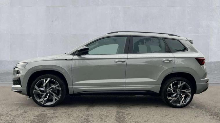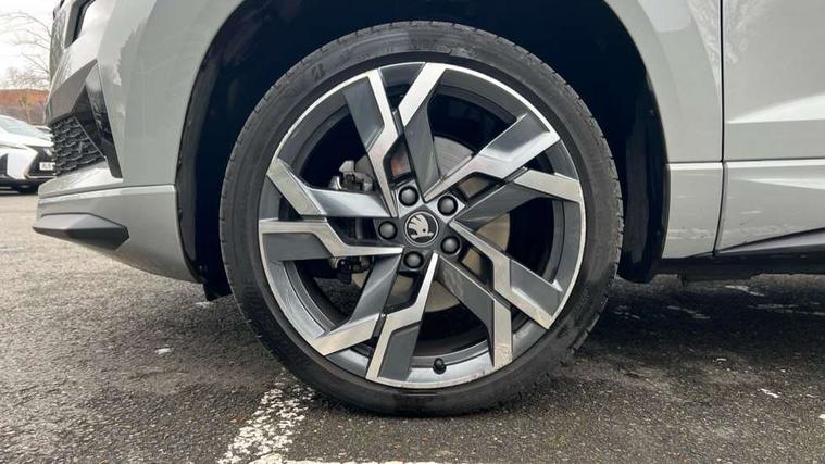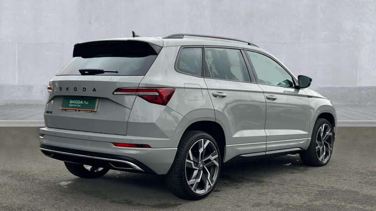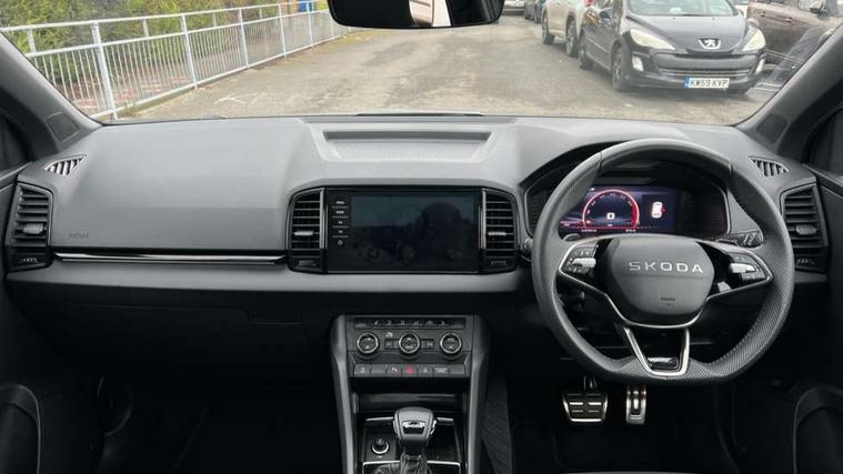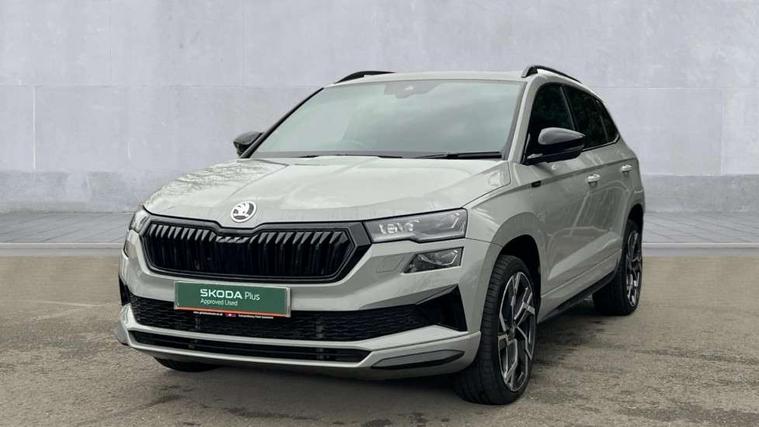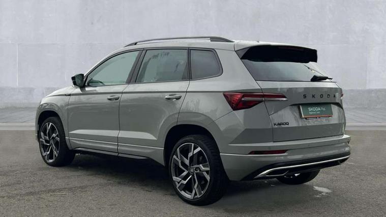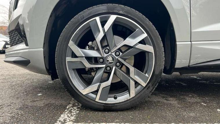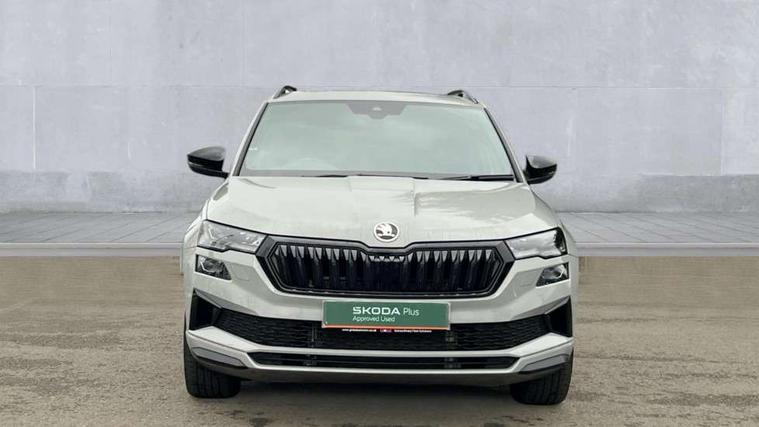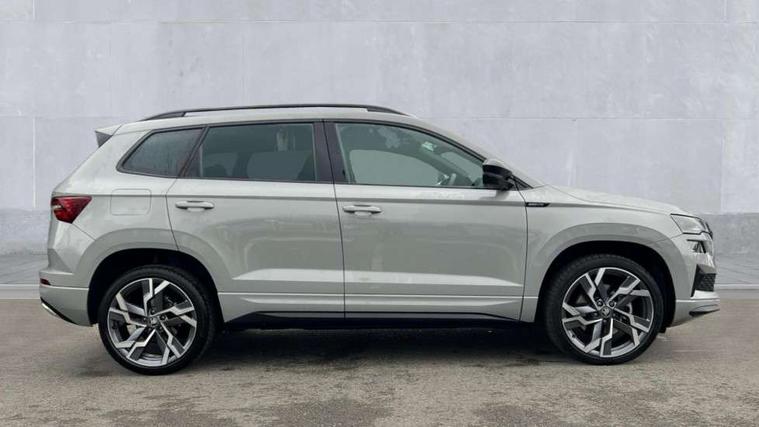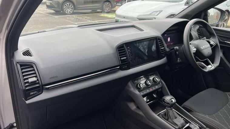 Advanced driver attention and drowsiness monitor, Emergency services call system, Outside temperature gauge, Sensor for driver assistance systems, Service interval indicator, SmartLink wireless for Apple and wired for Android, Start/stop system with regenerative braking, Traffic sign recognition, USB C Port x 2 in front centre console, Virtual Cockpit - 10.25" digital display, Virtual pedal with electrically operated boot door, Wireless smartphone charging, DAB radio with Bluetooth, USB connection, Acoustic glass, Aero front windscreen wipers with intermittent function, Auto dimming rear view mirror with light and rain sensors, Black door mirrors, Black electric window control buttons, Black radiator grille, Black roof rails, Body colour door handles, Electric front and rear windows with child proof lock, Extended rear roof spoiler, Front door steps with SportLine logo, Heated rear windscreen, LED daytime running lights, LED rear lights with high functionality welcome effect and dynamic indicators, Light assistant (coming/leaving home/tunnel light), Panoramic sliding sunroof, Plastic scuff plates in door apertures, Privacy glass, Protective door side sills in body colour, Rear diffuser, Rear side wing doors, Rear window wiper with washer system and intermittent control, Safety reflectors on front doors, Skoda lettering on tailgate in black, Sportline badge on front fender, Sports front and rear bumpers, Third brake light, Unique dark chrome design logo on alloy wheels, 1.5 litre bottle holders in driver and front passenger door panels, 12V socket in boot, 12v socket in front centre armrest with storage compartment and rear air vents, 2 x Tablet holder, 3 rear height adjustable headrests, 3 seat bench in 2nd row, 3 spoke sports leather heated multifunction steering wheel with DSG paddles, 4 foldable roof handles with rear coat hooks, Black floor carpet, Cargo elements in boot, Chrome inner door handles, Foldable hooks in the boot, Front head restraints, Height adjustable front three point seats belts with tensioners, Height/reach adjust steering wheel, Ice scraper, Illuminated glovebox, Illuminated luggage compartment, Isofix child seat preparation for front passenger seat, Isofix child seat preparation outer rear, Manual lumbar support for front seats, Pen holder, Pollen filter, Rear backrest release from boot, Rear boot cover, Rear package tray, Rear reading lights, Rear seats fixed folding and divided 60:40, Rubbish bin door, Safety vest holder, Single front passenger seat, Skoda lettering on steering wheel, Sportline decorative inserts, Storage box in upper central dashboard closed, Sunvisors with illuminated vanity mirrors, Textile floor mats, Ticket holder, Titan black interior ceiling, Umbrella under passenger seat, Under passenger seat storage compartment, Columbus pack - Karoq, LED Interior lighting pack with Skoda welcome logo - Karoq, Light Pack - Karoq, Non Smokers pack, Performance pack - Karoq, Winter plus pack with heated front and rear seats - Karoq, Automatic door unlocking in case of crash, Automatic fuel cut off in case of crash, Driver airbag, Electronic parking brake with auto hold function, Emergency rear braking signal, ESC (incl. ABS+MSR+ASR+EDS+HBA+DSR+RBS+MKB), Front side airbags, Head airbags, Hill hold control, Knee airbags, Passenger airbag with switch-off function, Pedestrian monitor, Seatbelt reminder signalisation and pretensioner for all seats, Three point seatbelts rear, Two tone horn, Tyre pressure monitor, Alarm with interior monitoring, back up horn and tilt sensor with safe function, Electronic engine immobiliser, Keyless entry and start/stop, Remote central locking with 2 remote folding keys, Black air vent surround, Black centre console, carbon door decor, Satin black dashboard, Satin black door trim, 19" Sagittarius anthracite alloy wheels, Anti-theft wheel bolts protection, Breakdown and tool kit,