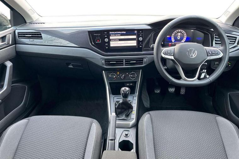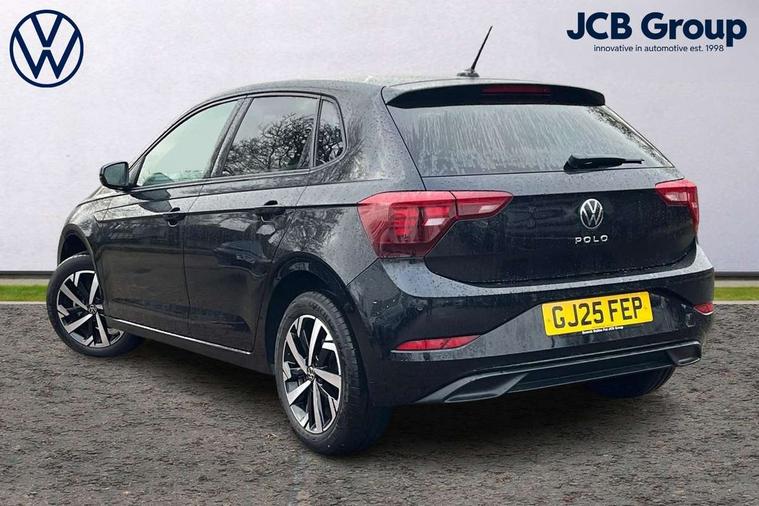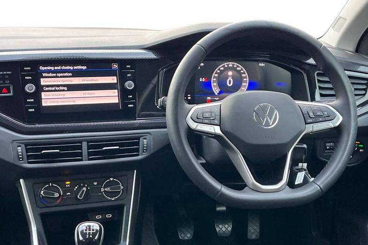 Adaptive cruise control without follow-to-stop and speed limiter, Advanced driver attention and drowsiness monitor, Bluetooth mobile phone interface, Dynamic road sign display, Emergency call service, Multifunction front facing camera for distance control, Park distance control, Power assisted speed sensitive steering, Preparation for navigation system with media and internet package, Preparation for We connect and We connect plus, Rear view camera, Speedo and rev counter, electronic odometer, trip, service interval display and exterior temperature gauge, Standard rear axle, Travel Assist - Lane keeping system and traffic jam assist, Travel assist including emergency assist, Trip computer, Warning signal and warning light for front and rear seatbelts not fastened, Washer fluid level indicator, Wireless app connect, Front wheel drive, Rear shock absorpion, Start-stop system with battery regeneration (recuperation - energy recovery during braking), DAB Digital radio, Diversity antenna for FM reception, Front and rear 6 speakers, Automatic dimming interior rear view mirror, Automatic headlight control with LED separate daytime running lights with coming/leaving home function, Body colour bumpers with chrome inserts, Body colour door handles, Body colour door mirrors, Electric front windows, Engine badge deletion, Headlight range adjustment, Heat insulating and laminated safety glass windshield, LED Headlights, LED rear combination lamps, Power folding adjustable/heated exterior mirrors and front passenger exterior mirror lowering function, Rain sensor, Rear electric windows, Rear fog light, Rear side wing doors, Rear tinted glass from B-pillar backwards approx 65% tinted, Rear windscreen washer and wiper with interval delay, Third brake light, 12V power socket in centre console, 2 front and 2 rear reading lights with switch off delay and dimmer, 2 USB-C ports in the front, 2 USB-C charging sockets on the center console in the rear, 3 rear head restraints, 60/40 split folding rear seat and rear seat bench not split, Ceramique roof lining, Chrome plated radiator grille inserts, air vent surrounds and light switch surrounds, Door and side trim panel, Driver and front passenger seat height adjustment, Driver/passenger sunvisors with illuminated vanity mirrors, Front centre armrest, Front seat backrest storage pockets, Front standard seats, Handbrake lever handle in leather, Hartley/Thomas cloth upholstery, Headliner in recycled material, Isofix child seat preparation easy-fit (for two outer rear seats, and front passenger seat) compatible with I-size, Leather trimmed gear knob, Luggage compartment cover, Luggage compartment lighting, Removable luggage compartment floor, Single front passenger seat, Standard climatic zones, Standard pedal cluster, Three spoke leather wrapped multifunction steering wheel, Light and vision pack - Polo, 3 point height adj front seatbelts + pretensioners, 3 point seat belt for centre rear seat, 3 point seatbelts, outer rear with ECE lable, ABS, Driver and front passenger airbag with front passenger airbag deactivation, Drivers and front passengers safety optimised head restraints, ESC (Electronic stability control) + EDL (Electronic Differntial lock) and ASR (Traction control), Extended and predictive pedestrian/ cyclist protection, Front assist with autonomous emergency braking (for Adaptive Cruise Control ACC up to 130 mph), Front curtain and side airbags with center airbag, Front disc brakes, Hill hold control, Manual child lock in rear doors, Rear drum brakes, Single tone horn, Tyre pressure loss indicator, Alarm with interior protection, Anti-theft alarm system with interior monitoring, backup horn, and towing protection, Anti-theft wheel bolts, Electronic engine immobiliser, Lava stone black gloss/matt decorative inserts in dash and front door panels, 16" Torsby alloy wheels, Low rolling resistance tyres,