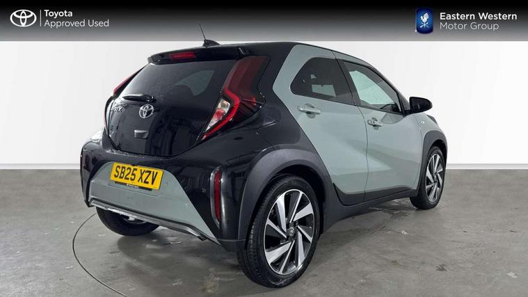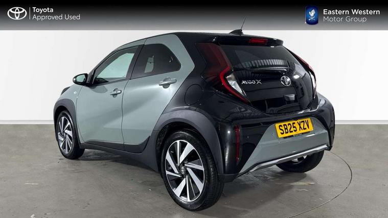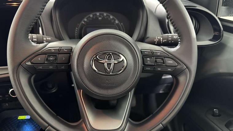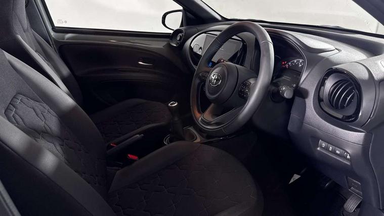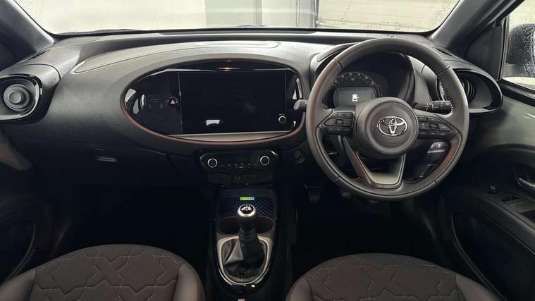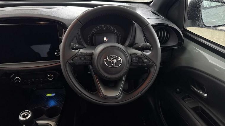 4.2" TFT colour screen, Adjustable speed limiter, Analogue speedometer, Bluetooth connectivity, Digital tachograph, Driver attention alert system, eCall emergency call system, Electric power steering, Front and rear parking sensors with auto brake, Intersection turn assist, Key reminder warning, Noise reduction kit, Pre collision system with emergency steering assist, Remote boot door release on key, Reversing camera with static guide lines, Smart entry and push button start, Smart phone integration with Apple car play/Android Auto, Speed limit display, Start and stop, Wireless charger, Vehicle Stability Control (VSC), 10.5" HD multimedia display touch screen with Toyota smart connect, 4 speakers, DAB digital audio broadcast, USB connector, Auto headlights, Auto wipers, Automatic headlights cut-off, Automatic high beam On/Off switch, Bicycle towing hook, Black contrast roof, Black fog light surrounds, Black side protection mouldings, Black wheel arch mouldings, Body colour door handles, Body coloured front bumper, Boot door scuff plate, Eclipse black rear bumper, Electric heated door mirrors, Follow me home headlights, Front and rear underruns in silver, Front fog lights, Front power windows, Gloss black door mirrors, Gloss black upper front grille, Headlight cut-off reminder, LED daytime running lights guide, LED front light guide, LED High mounted stop lamp, LED projector headlights, Manual day/night rear view mirror, Manual headlight levelling, Pagoda roof, Power adjustable door mirrors, Power back door, Privacy glass, Rain sensor, Rear combination lights LED bulb type, Rear side wing doors, Rear windscreen defogger, Rear windscreen wiper, Remote hazard lights system, Short antenna, Variable intermittent windscreen wipers, 12v power outlet - front, 2 seat bench in 2nd row, 3 spoke leather steering wheel, 50/50 split folding rear seat, Adhesive roof headlining, Adjustable speed limiter switch on steering wheel, Audio and telephone switches on steering wheel, Auto air conditioning, Black roof lining, Body colour satin anodised insert on steering wheel, Boot light, Centre room light, Chrome interior door handles, Chrome surround on air conditioning buttons, Clean air filter, Console box storage, Floor mats, Front and rear cup holders, Front head rest deco art, Front head restraints, Height adjustable driver seat, Intelligent adaptive cruise control switch on steering wheel, ISOFIX child restraint system on rear seats, Lane departure alert switch on steering wheel, Leather gearshift knob, Light blue ambient lighting in centre console, Manual tilt steering wheel, Manually reclining and sliding driver seat, Manually reclining and sliding front passenger seat, Multimedia switches on steering wheel, Partial synthetic leather upholstery, Pollen filter, Rear door pockets, Rear head restraints, Satin silver insert on gear shift knob, Single compartment glovebox with lights, Single front passenger seat, Soft tonneau cover, Sun visors with mirror on driver and passenger side, Voice recognition switch on steering wheel, Toyota safety sense pack - Aygo X, Anti lock braking system + Electronic brake force distribution, Child safety door lock, Emergency brake light signal (EBS), Hill start assist control (HAC), Passenger airbag on/off switch, Seat belt reminder for front and rear seats, Supplement restraints system (SRS) - 6 airbags, Traction control, Tyre pressure warning system, Immobiliser, Remote power door locks, Black wheel centre caps, Tyre repair kit,