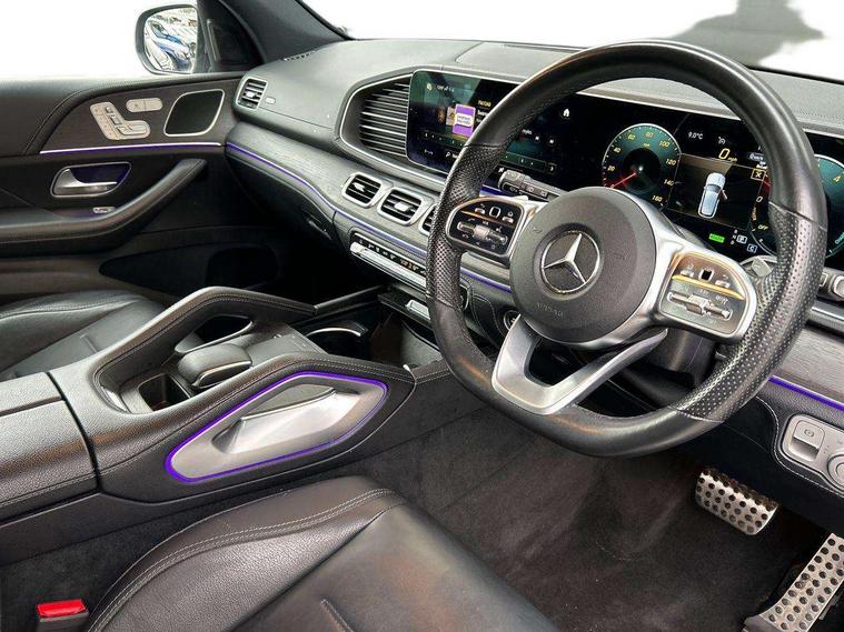 12.3 High resolution wide screen cockpit display with choice of three display styles Classic, Progressive or Sport and unique ambient lighting setting, Attention assist, Blind spot assist, Brake wear warning display, Cruise control with variable speed limiter, Direct steer speed sensitive steering, DYNAMIC SELECT with a choice of driving modes (ECO, Comfort, Sport and Individual), Easy-pack tailgate - Powered opening/closing automatically, ECO start/stop function, Geofencing, Hard-disk navigation, Hey Mercedes Voice activation, High resolution 12.3" multimedia colour display, Lane keeping assistant (LKA), Mercedes me connect including emergency call system, accident recovery, breakdown and maintenance management, Outside temperature display, Remote boot release, Reversing camera, Service indicator (ASSYST), Smartphone integration, Speed limit assist, Status display for rear seat belts in instrument cluster, Traffic Sign Assist, Traffic sign recognition including wrong way warning function and display of posted speed limits in the instrument cluster, Trip computer in multifunction display showing current fuel consumption, 3.7 kW monophase on board charger, 85 litre fuel tank, 9G TRONIC 9 speed automatic transmission, Diesel particulate filter (DPF), Incorrect fuelling protection, Lowered comfort suspension with steel springs and selective adaptive dampening with lowering by up to -15mm, Plug-in Hybrid specifics with 7.4kW AC, 60kW DC charging, Household and public charging cables, Acoustic ambient protection, Pre-entry climate control, Additional USB connection, DAB Digital radio, Dual bluetooth interface, 2 USB ports (type C), MBUX multimedia system, Adaptive brake lights, Adaptive high beam assist, Aerial for GPS, Aluminium look, illuminated running boards with rubber studs, AMG bodystyling front and rear aprons and side skirts in polished aluminium, Body colour door mirrors, Body coloured bumpers, Electric windows with one touch opening/closing and obstruction sensors, Exterior mirrors heated and electronically adjustable, Front green tinted glass, LED high performance headlamps, LED rear lights, Privacy glass - heat insulating dark tinted glass, Radiator grille with integrated star and single louvre in matt iridium silver with chrome trim, Radio aerial integrated into rear window, Rain sensing windscreen wipers, Rear wiper, Roof rail system, Top surround of side windows in polished aluminium, Visible twin pipe exhaust system integrated into bumper, Waistline in polished aluminium, 3 spoke AMG multifunction steering wheel with touch control buttons, trimmed in black nappa leather with flattened bottom section, 4 way adjustable front head restraints and 2 way rear head restraints, 4 way lumbar support, 40:20:40 split folding rear seats, AMG brushed stainless steel sports pedals with rubber studs, AMG floor mats with AMG lettering, Artico man-made leather upper dashboard with contrast topstitching, Automatic child seat recognition sensor, Black roof liner, Central stowage compartment with 12 V socket in centre console, Chrome door pins, Courtesy lights in rear grab handles with reading light functionality, Electric height/reach adjustable steering column, Front centre armrest with stowage compartment and illuminated grab handles, Gearshift paddles on steering wheel, Glove compartment - lockable, air conditioned and illuminated, Heated front seats, Interior lighting - 64 colour Ambient lighting, Seat occupancy sensor for front passenger seat, Second row three seats, Sports steering wheel, Sunvisors with illuminated vanity mirrors, Touchpad, Two zone automatic climate control, Anti theft Protection package - GLE, Memory package - GLE, Mirror package - GLE, Parking package - GLE, Active bonnet, Active braking assist, Adaptive brake system with HOLD function and brake drying in the wet, Airbags - driver and front passenger, with extended adaptivity for front passenger airbag, Airbags - sidebag for driver and front passenger with combined thorax/pelvis bag, Airbags - windowbags, Anti-lock braking system (ABS), Childproof locks manually operated for rear doors and electrically operated for rear power windows, Drivers knee airbag, Electronic parking brake, Electronic Stability Programme (ESP), ISOFIX child seat attachment points two outer rear seats, Perforated front brake discs and brake calipers with Mercedes-Benz lettering, Pre-Safe anticipatory safety system, Three point rear seat belts, Tyre pressure monitoring system and loss warning system, Warning triangle and first aid kit, Alarm system/interior protection/immobiliser, Central locking with interior switch, automatic locking and crash sensor with emergency opening function, Chrome surround in electric key, Keyless Go starting function, Dashboard and door, anthracite open pore oak wood trim, Trim - Centre console, anthracite open pore oak wood trim, 20" AMG 5 twin spoke light alloy wheels, Summer tyres with noise reducing absorber, TIREFIT with tyre inflation compressor,
