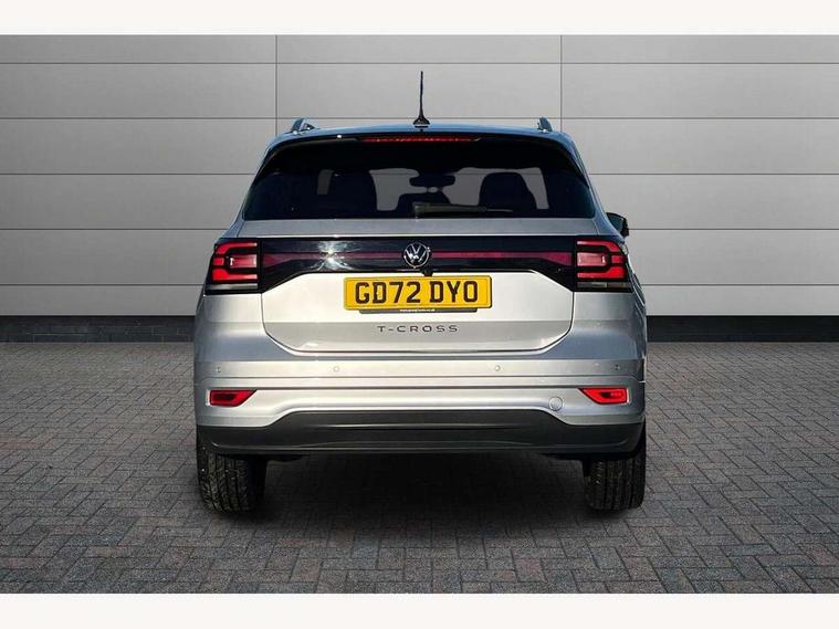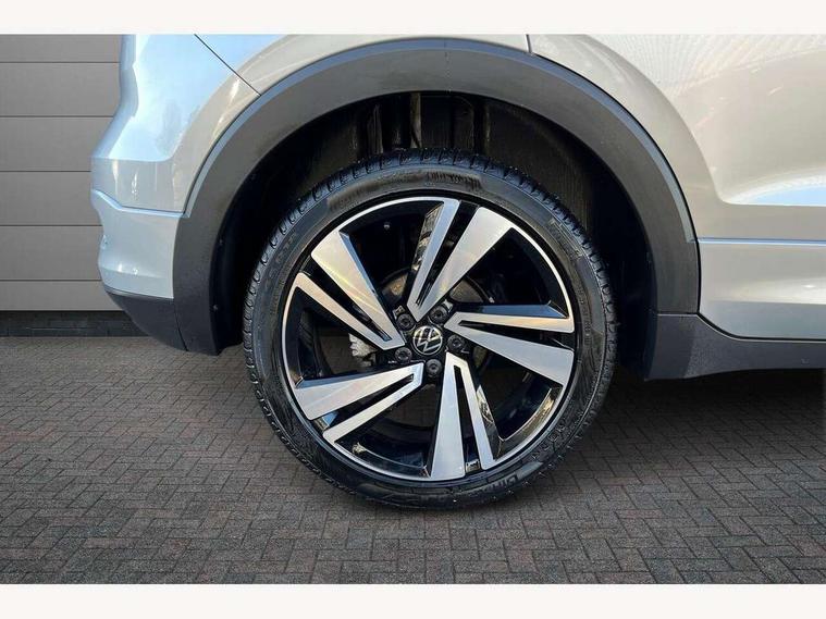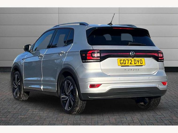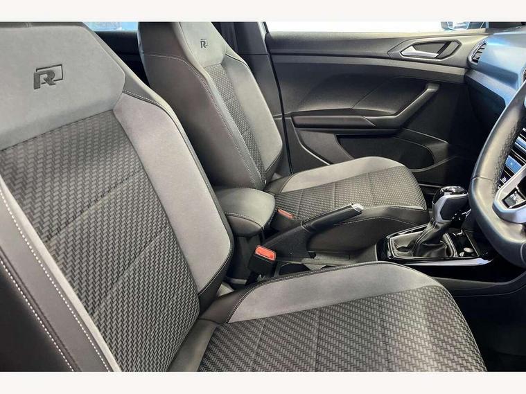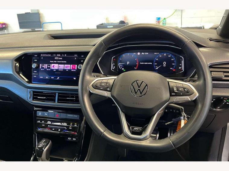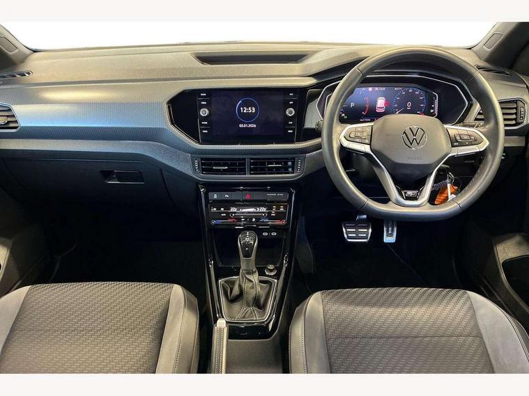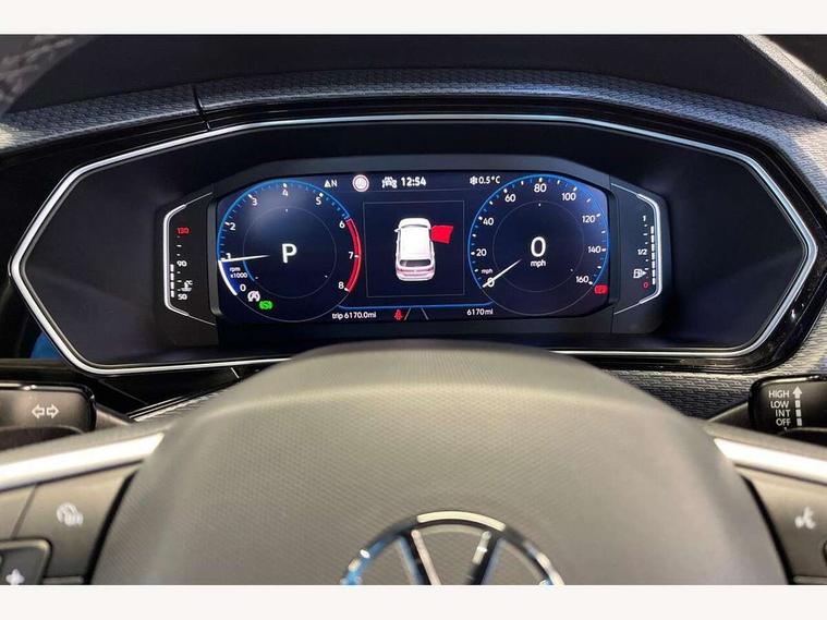'Lights On' Reminder warning buzzer, 2D/3D map view, Active info display - 10.25" High resolution TFT dash display screen, Adaptive cruise control including front assist, forward collision warning, autonomous emergency braking, speed limiter, Blind spot monitoring, Bluetooth telephone and audio connection for compatible devices, Car information display, Driver alert system, eCall emergency call system, Lane assist, Low washer fluid warning light, Multifunction computer with visual gear change recommendation for fuel consumption, Operating permit alteration, Power assisted speed sensitive steering, Speed limit display, Speedo, rev counter, electronic odometer, trip, service interval display, exterior temperature and fuel gauge, Stop/start system, Warning sound and light for doors and tailgate open, Warning sound and light for front seatbelts unfastened, We connect plus preparation, Wireless Car net app connect with Apple CarPlay, combined functionality of Apple CarPlay/Android Auto and MirrorLink, Battery regeneration during braking, Misfuel prevention device, 2x USB connection with USB charging sockets and in rear centre console, DAB Digital radio receiver, Diversity antenna for FM reception, Multi device interface (MDI) with USB connection, Music playback - MP3, WMA and AAC files, Premium USB cable for Apple or Android smartphone compatibility, Simultaneous pairing of 2 compatible mobile devices, SMS Functionality, Three route options - Fast, Short, Eco, Title and cover art display, Automatic hazard lights activation under emergency braking, Body colour door handles, Body colour door mirrors with integrated indicators, Body colour rear roof spoiler, Body coloured bumpers, Dusk sensor + automatic driving lights, Electrically foldable, adjustable and heated door mirrors with reverse activated kerb view adjustment on passenger's side, Front and rear electric windows, Front fog lights with static cornering function, Galvanised body, Heated rear window, LED third brake light, Lower door sills and door pillars in black, Radiator grille with chrome trim and chrome bezel front fog lamp, Rear fog light on one side, reversing light on both sides, Rear lights incorporating LED technology, Rear side wing doors, Rear tinted glass 65% approx light absorbing from B pillar backwards, Rear window aerial, Rear windscreen washer and wiper with interval delay, Reflectors in all doors, Silver roof rails, Stainless steel door sill protection, Tailgate with integrated roof spoiler, Unique R Line badging, Windscreen wipers/ intermittent wipe + 4 position delay, 12V Accessory socket in centre console, 2 Front and rear reading lights incorporating LED technology, 2 Zone electronic climate control with automatic air recirculation, 3 rear head restraints and 3 rear three point seat belts with ECE label, 3 seat bench in 2nd row, 60/40 split folding rear seat backrest, Ambient lighting and sourround lighting, Black headlining, Branded points of interest, Brushed stainless steel pedals, Carbon flag cloth upholstery, Drawer under drivers seat, Driver and front passenger sunvisor with vanity mirror, Driver's sunvisor with ticket holder, Dust and pollen filter, Front and rear carpet mats with contrast stitching, Front centre armrest with storage compartment, Front footwell illumination, Front seat back storage pockets, Front seat R Line logo with rear seat backrest, Front sports seat with height and lumbar adjustment, Glovebox, Heating and fresh air system with 4 stage blower, Height/reach adjust steering wheel, Instrument lighting white adjustable panel illumination, Interior light with delay, Isofix child seat preparation for 2 rear child seats, Leather trimmed three spoke multifunction steering wheel with contrast stitching and aluminium inserts with R Line logo, Luggage compartment cover, Luggage compartment lighting, Moveable and foldable Rear bench seat, Scuff plates in door apertures, Steering wheel paddle shift, Storage compartment in drivers and front passengers door, Variable boot floor, R Line styling pack - T-cross, 3-point seat belts in front with electric tensioner + height adjustment, Anti-lock Braking System (ABS) with Hydraulic Brake Assist (HBA), Automatic post collision braking system, Driver and front passenger safety-optimised head restraints, Drivers and Front Passengers airbags with front passengers airbag deactivation switch, ESC with EDL, ASR, EDTC and trailer stabilisation function, Front and rear curtain airbags, Front seat side impact airbags, Hill start assist, Pre crash preventive occupant protection, Proactive passenger protection system in combination with front assist, Rear door child safety locks, Rigid safety cell with front and rear crumple zones, Single torn horn, Tyre pressure loss indicator, Volkswagen roadside assistance, Alarm with interior protection and deactivation via infotainment system, Child security locks in rear doors, Electronic engine immobiliser, Remote tailgate unlocking using key fob, Race decorative inserts in dash and doors, 18" Nevada black alloy wheels, Breakdown kit,