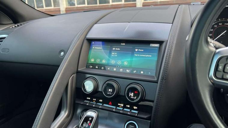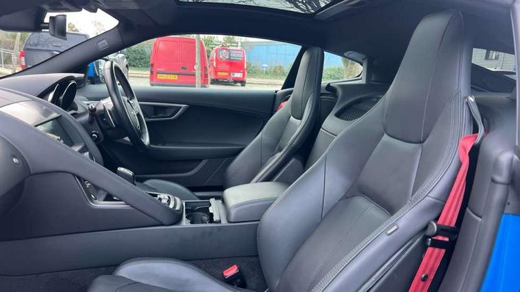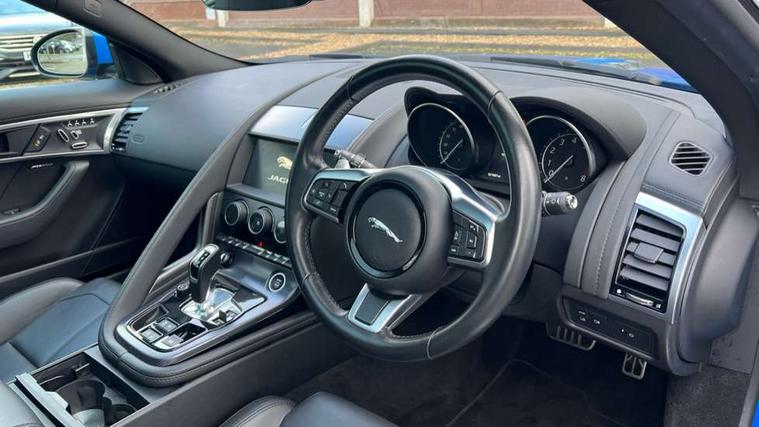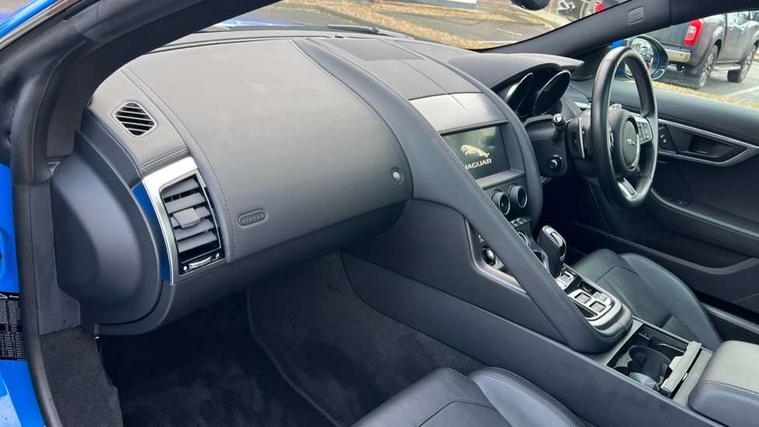 10" touch screen, Analogue dials with 7" central TFT display, Android Auto, Apple CarPlay preparation, Bluetooth telephone connectivity, Cruise control + speed limiter, Driver condition monitor, Front parking aid, Incontrol pro service, InControl remote premium, InControl Touch navigation pro, Lane departure warning system, Lane keep assist, PAS, Rear parking aid, Rear view camera, Stop/start system, Traffic sign recognition with adaptive speed limiter, Trip computer, Open differential with torque vectoring by braking, Passive suspension, Audio remote control, Digital Audio Broadcast radio-DAB, InControl app, InControl protect, Auto dimming rear view mirror, Automatic headlights, Chrome exhaust finisher, Deployable boot lid spoiler, Electric front windows, Flush exterior door handles, Gloss black front bumper beam with gloss black chin and chrome insert, Headlight washers, Infra red reflective glass, LED headlights with signature DRL, LED tail lights, P300 badge, R Dynamic badge, Rain sensing windscreen wipers, Satin black grille, Single chrome exhaust finisher, Solar attenuating windscreen, Switchable active exhaust, Tinted glass, Deployable front air vents, Electrically adjustable steering column, Front centre armrest, Front headrests, Jaguar sense, Leather steering wheel, Low line cubby box, Lumbar support, Luxtec centre console cover with sides, Overhead console, Pollen filter, Silver gearshift paddles, Twin front cupholders, USB with 12V socket in centre console, Smartphone pack - F-Type, 6 airbags - Driver/front passenger airbags, front and rear curtain airbags and front side airbags, Anti-lock braking system (ABS), DSC - Dynamic Stability Control, Dynamic mode, Electronic brake force distribution, Electronic parking brake, Emergency brake assist, Emergency braking, Front/rear seatbelt pre-tensioners, Pedestrian contact sensing and deployable bonnet, Seatbelt reminder for driver and front passenger, Tyre pressure monitoring system, Deadlocks, Drive away door locking, Engine immobiliser, Locking wheel nuts, Perimetric and volumetric anti theft alarm, Remote central locking, Two stage unlocking, Valet mode, Graphite interior trim, Standard door trim,