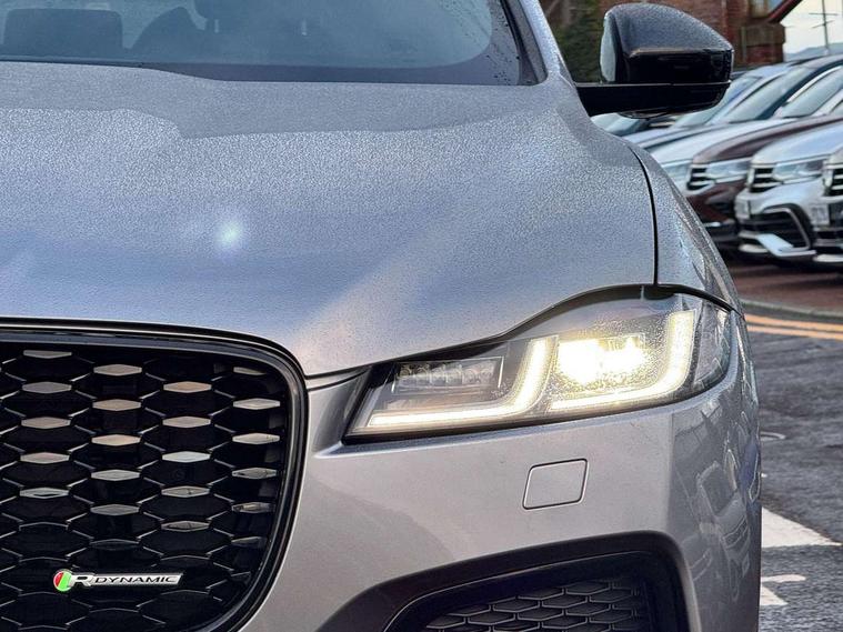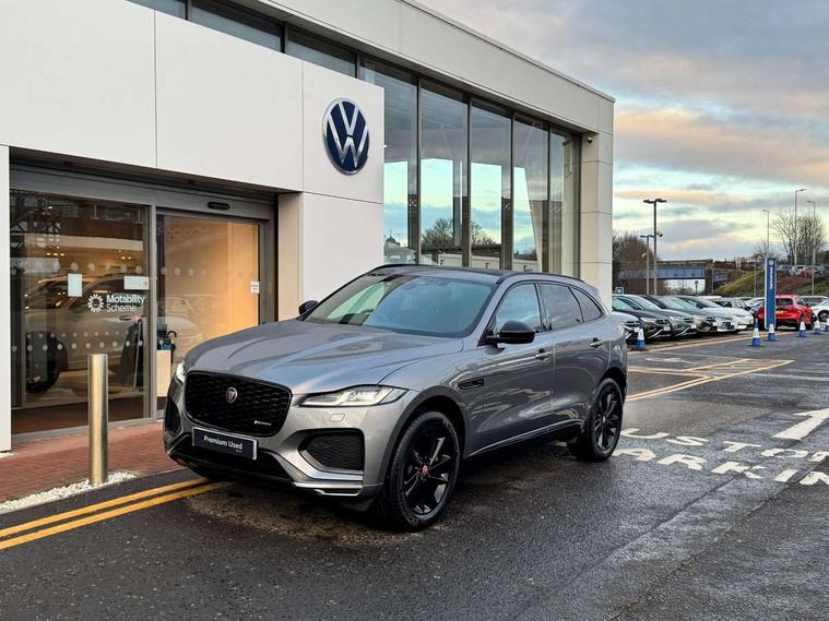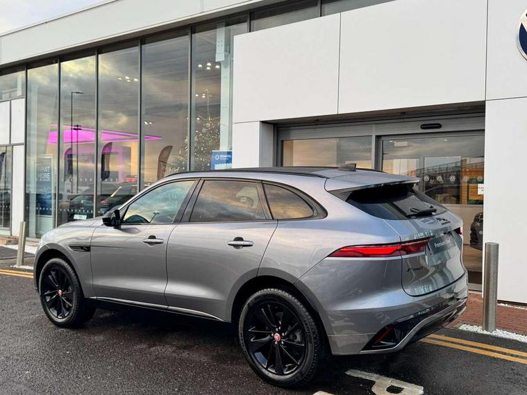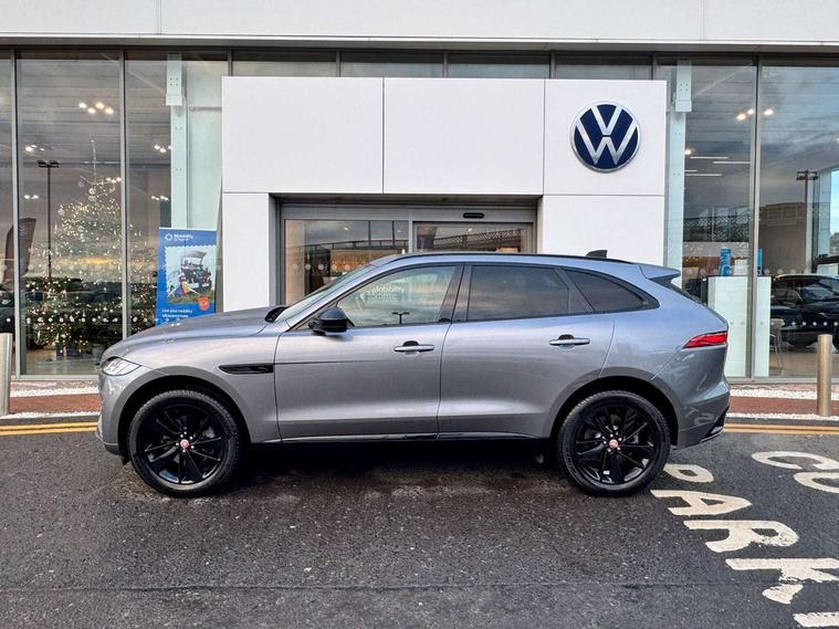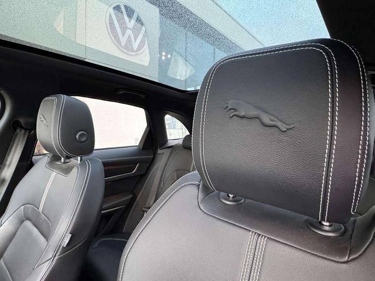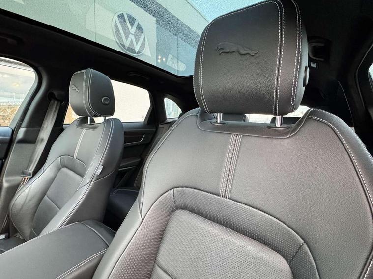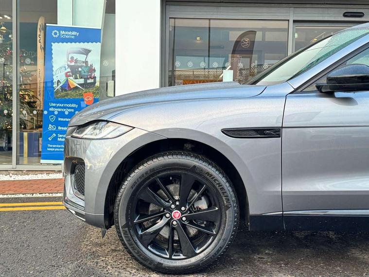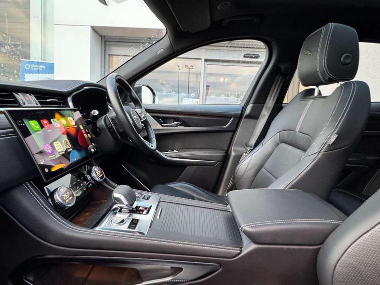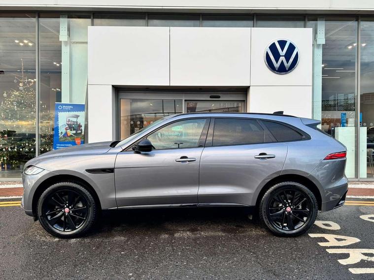 11.4" touchscreen, Android Auto, Apple car play, Bluetooth connectivity, Driver alert system, Driver condition monitor, eCall emergency call system, Eco driving style assistant, Electric power assisted steering, InControl remote, Jaguar Toggle shift selector, Lane departure warning system, Lane keep assist, Outside temperature gauge, Personalisation profile management, Pivi pro connected navigation system with app interface and media storage, Pro services and wifi hotspot, Push button starter, Service interval indicator, Speed proportional steering, Start up sequence with movement in dials and lighting, Traffic sign recognition with adaptive speed limiter, Trip computer, Voice control system, 8 speed automatic transmission, All terrain progress control, All Wheel Drive (AWD), Open differential with torque vectoring by braking, AM/FM radio, Bluetooth streaming, DAB Radio (Digital Audio Broadcasting), Dynamic volume control, InControl apps, InControl protect, iPod integration, 3 flash lane change indicators, Animated directional indicators, Approach Illumination, Auto dimming rear view mirror, Automatic headlights, Electric windows with one touch open/close and anti trap, F-Pace and R Dynamic badge, Gloss black door mirrors, Gloss black roof rails, Green tinted glass, Heated front windscreen + heated washer jets, Heated rear window with timer, Jaguar script and leaper, LED High level third brake light, LED tail lights, Non acoustic front windscreen, Privacy glass, R Dynamic badge on side door, Rain sensor windscreen wipers, Rear fog lights, Rear metal tread plates, Rear side wing doors, Rear wiper, Trailer stability assist, Variable front intermittent wipers, 12V power point front, 3 rear headrests, 3 seat bench in 2nd row, Air distribution speed, Bright metal foot pedals, Centre armrest console, Centre console with side storage, Deletion loadspace storage rails, Door sill tread plates, Fold flat front seats, Front centre armrest with storage compartment, Front door storage space, Glovebox finisher with jaguar script, Heated steering wheel, Hooks in loadspace, Illuminated glovebox, Interior front door handles with separate locking switches, ISOFIX on outer rear seats, Jaguar sense, Luggage tie downs in loadspace, Mist sensing, Multifunction steering wheel, Overhead lighting console, Overhead stowage for sunglasses, Passive front head restraints, Premium cabin lighting, Premium carpet mats, R-Dynamic branded leather steering wheel, Rear air vents, Rear armrest with twin cupholders, Rear centre headrest, Rear door storage space, Reversible boot floor, Satin chrome gearshift paddles, Shopping bag hook, Single front passenger seat, Sunvisors with illuminated vanity mirrors, Twin front cupholders with cover, Black Exterior pack - F Pace R-Dynamic/Sport, Exterior pack - F Pace R-Dynamic, Online Pack with data plan - F-Pace, 355mm front brakes and 325mm rear brakes, 3x3 point rear seatbelts, ABS, All surface progress control (ASPC), Brake pad warning light, DSC - Dynamic Stability Control, Electric parking brake (EPB), Emergency brake assist, Front airbags with passenger seat occupant detector, Front and rear seatbelt reminder, Front side airbags, Full length side window curtain airbag, Hill launch assist, Power operated child locks, Torque vectoring brake, Traction control, Tyre pressure monitoring system, Immobiliser, Keyless Start, Locking wheel nuts, Perimeter alarm, Remote central locking, Valet mode,