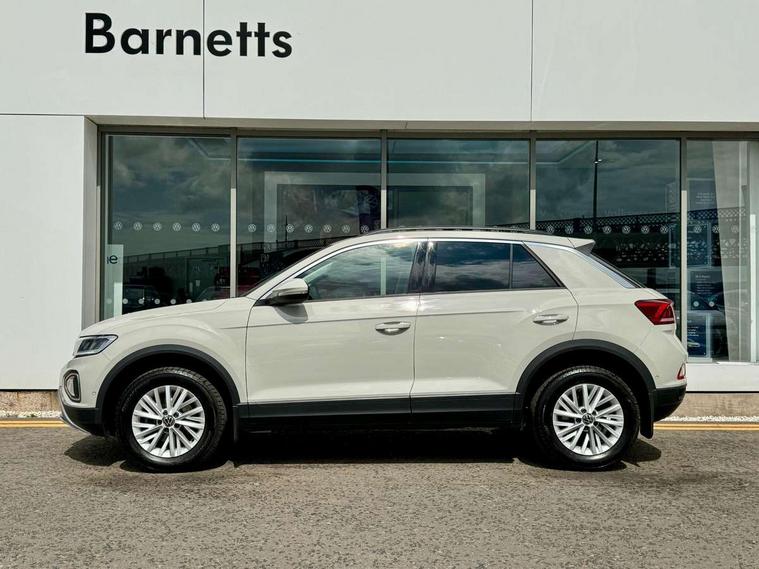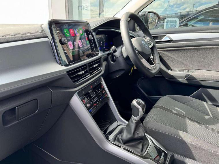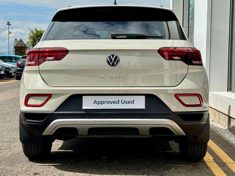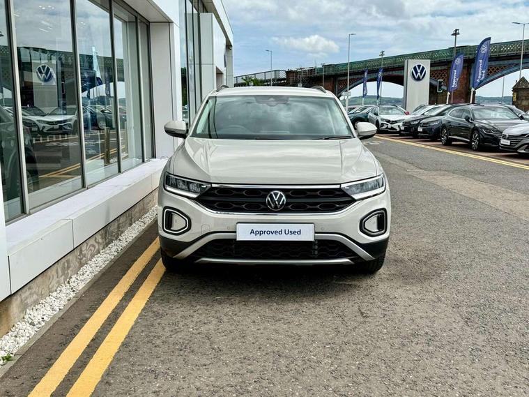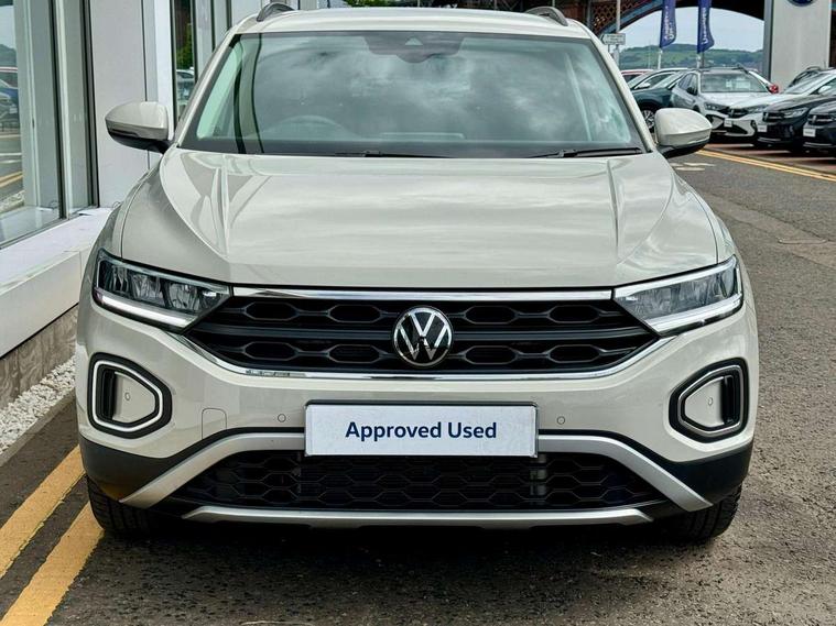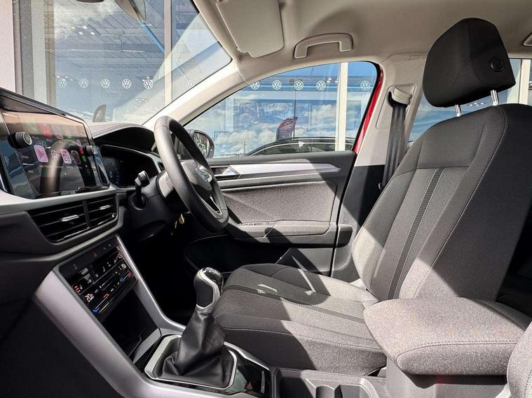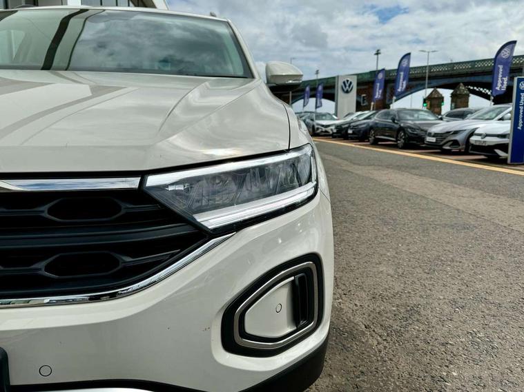 Bluetooth mobile phone interface, Driver alert system with fatigue detection, Driver tips and journey analysis, Emergency call service, Lane keeping system Lane Assist, Modified key software - reduce switch off time for key status change to Long no motion, Online services, Park assist including front and rear parking sensors, Power assisted speed sensitive steering, Service interval indicator, Tailgate/trunk lid release from outside, Think blue trainer driver tips and journey analysis, Warning sound and light for front seatbelts unfastened, Wireless app connect, Battery regeneration during braking, Front shock absorption, Rear shock absorption chassis with increased ride height, Start/stop function with battery regeneration, DAB Digital radio, Diversity antenna for FM reception, Front and rear 6 speakers, Music playback - MP3, WMA and AAC files, Premium USB cable in choice of either Apple or Android smartphone compatibility, SD card slot, Simultaneous pairing of 2 compatible mobile devices, Title and cover art display, We Connect and We Connect Plus functionality, 3rd brake light, Auto dimming interior rear view mirror, Automatic hazard lights activation under emergency braking, Automatic headlight control with LED separate daytime running lights with coming/leaving home function, Black roof rails, Body coloured bumpers and radiator grille with chrome trim and front fog lamps with chrome bezel, Body coloured exterior mirror housings and door handles, Extended roof spoiler, Exterior mirrors aspherical on driver side, convex on front passenger side, External USB type C socket and charging sockets, Front windscreen wiper with intermittent wipe and 4 position delay, Heated rear window, LED Headlights, LED rear combination lamps, LED rear number plate lights, LED tail lamp rear comination lamps, Power windows with comfort operation and circuit breaker, Rain sensor, Rear exhaust tailpipe, Rear fog light on one side and reversing lights on both sides, Rear side wing doors, Rear wash/wipe with intermittent wipe setting, Remote electrically foldable door mirrors, puddle lights and reverse activated passenger's door mirror, 12V power socket in centre console, 3 rear head restraints, 3 seat bench in 2nd row, 4 load lashing points in luggage compartment, Air care climatronic air conditoning system with active combination filter and 2-zone temperature control, Ambient lighting with mirror logo projection, Cloth upholstery, Door and side trim panel in cloth, Drawer under drivers seat, Driver/front passenger seat height adjustment, Front centre armrest, Front comfort sports seats, Front cupholders x 2, Front reading light, Instrument lighting, white adjustable panel illumination, Interior light delay, Isofix child seat preparation, Leather gearshift handle, Load-through provision with cup holder when folded down ('Unsplit rear seat bench, split folding backrest, with centre armrest), Luggage compartment lighting, Lumbar support for driver's and front passengers seat, Non-folding front passenger seat backrest, Single front passenger seat, Storage compartment in left and right luggage area, Storage compartment in rear doors, Storage compartments in driver and front passenger doors, Sunvisors with illuminated vanity mirrors, Variable boot floor, height adjustable and removable, Driver assistance pack without proactive passenger protection - T-Roc, 3 point height adj front seatbelts + pretensioners, 3 point seatbelts in outer rear with ECE label, ABS, Child locks on rear doors, Driver and front passenger airbag with front passenger airbag deactivation, Driver and front passenger safety-optimised head restraints, Drivers seatbelt reminder, Electronic parking brake, Electronic Stability Control (ESC) inc EDL (Electronic Differential Lock) and ASR (Traction Control), Front and rear passengers curtain airbag system including front side airbags, Front assist with city emergency braking and pedestrian monitoring, Front disc brakes, Front seat side impact airbags, Hill start assist, Predictive pedestrian protection, Rear disc brakes, Single tone horn, Tyre pressure loss indicator, Volkswagen roadside assistance, Alarm with interior protection, Anti-theft alarm system with interior monitoring, backup horn, and towing protection, Remote central locking with SAFELOCK, radio remote control with 2 remote control folding keys, Pewter matt decorative inserts for intrument panel, centre console and door panels at the front, Trims for alloy wheels,