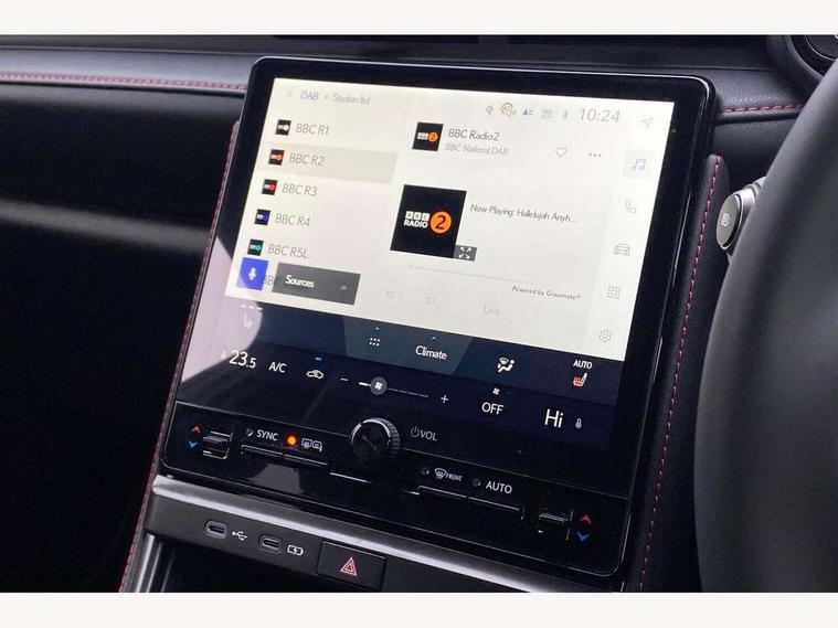 12.3" Digital instrument binnacle, Active Noise Control, Bluetooth connectivity, Cloud navigation, e-Call (emergency call), Electric power steering, Extended Lexus safety system+ 3 includes blind spot monitor, safe exit assist, camera washer and rear cross traffic alert, Front and rear parking sensors with intelligent clearance sensor, Front and rear smart entry, Head up Display, Lane change flasher function, Lexus link connected services, Lexus safety systems+ 3 includes dynamic radar cruise control, pre collision system day and night, lane tracing assist, road sign assist, Pre-collision system with driver monitor, Push button start, Rear view camera, Tailgate, Wireless Apple CarPlay and wired Android Auto, Wireless Smartphone charger, Vehicle dynamic integrated management (VDIM), 1 USB (Type-C) charging ports in bottom of the instrument panel, 1 USB (Type-C) multimedia communication ports in bottom of the instrument panel, 1 USB (Type-C) ports inside front console box, 2 USB (Type-C) ports for charging in rear, 6 speaker audio system, AM/FM and DAB radio, Lexus Link Connect with 9.8" Touchscreen, Rear side monitor, Auto dimming interior rear view mirror, Auto headlights, Black wheel arches, Electric adjustable/heated/auto folding door mirrors, Front and rear electric windows, Full body colour bumpers, LED 3rd brake light, LED daytime running lights, LED rear lights, Power back door without kick function, Privacy UV glass, rear doors and tailgate, Rain sensing wipers, Rear side wing doors, Rear wiper, Single bulb LED headlights with auto high beam, Wet arm wipers, 12V accessory connector in front console box, 3 bench rear seats in 2nd row, 3 rear headrests, 6 way manually adjustable front seats, 60/40 split folding rear seat, Aluminium scuff plates, Armrest with sliding cup holder, Centre armrest with storage, Cup holder in centre console, Driver and passenger door pocket, Driver's lumbar support, Dual zone automatic air conditioning, Front headrests, Glovebox, Heated front seats, Illuminated entry system (cabin, footwell, console and door handles), Nanoe-X Technology, Single colour ambient lighting, Single passenger seat, Storage tray under audio panel and lower tray, Synthetic leather gear lever, Synthetic leather steering wheel, Touch Sensor Buttons on Steering Wheel, Tsuyasumi interior ornamentaion, Under deck storage, 2 x Isofix child rear seat restraints, 3 point ELR (Emergency Locking Retractor) front seat belt with pretensioners, 3x3 point rear seat belts, ABS, Adjustable seatbelt anchor points, Driver and front passenger side airbags, Driver and front passenger single stage airbags, Driver knee airbag, E-Latch electric door release, Electronic parking brake, ESP, Front and rear curtain shield airbags, Front centre airbag, Manual rear child locks, Passenger airbag cut-off switch, Tyre pressure monitoring system, Alarm/anti-theft (with siren and 2 sensors), Engine immobiliser, Thatcham approved locking wheel nuts, Two motion door lock with double lock, VIN etching, Tyre repair kit,