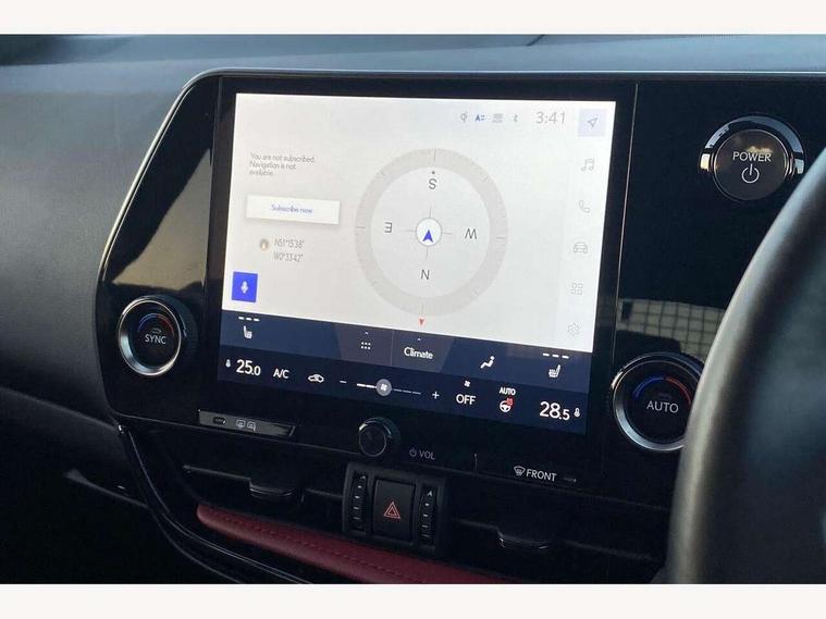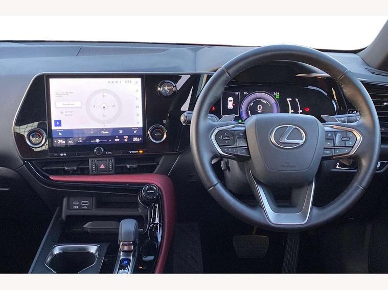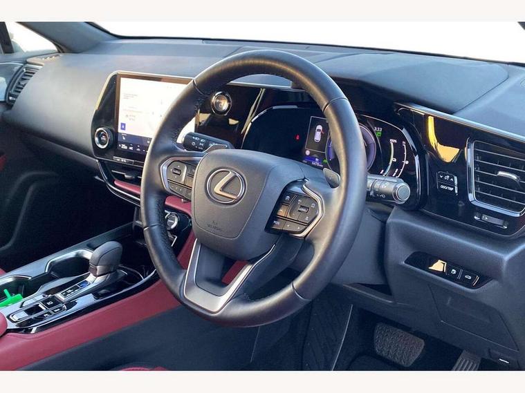 4 driving modes EV/Eco/Normal/Sport, 7" display in instrument binnacle, Blind spot monitoring with rear cross traffic alert, Bluetooth telephone connectivity, eCall emergency system, Electric speed sensitive power steering, Intelligent parking sensors - 4 front and 4 rear, Lane change flasher function, Lexus link connect - Cloud based navigation, cloud based voice assistant, always online and 9.8" VGA touchscreen, Push button starter, Reversing camera with back guidelines, Service interval indicator, Wireless Apple CarPlay and wired Android Auto, Wireless Smartphone charger, 6.6 kW onboard charger, All Wheel Drive (AWD), Hybrid automatic transmission, Vehicle Dynamics Integrated Management (VDIM), Vehicle Stability Control (VSC), 10 speakers, 4 USB ports - 2 front, one USB C, 2 rear USB C, DAB Digital radio, Auto dimming interior rear view mirror, Automatic headlights, Bi LED headlights, Double hidden exhaust pipes, Front and rear one touch power windows, with anti-jam protection, Heated, auto-folding, auto-dimming outside mirrors with reverse tilt function and turn indicators, Illuminated door handles with puddle light, LED brake lights and rear lights with emergency brake signal, LED daytime running lights, LED front fog lights, LED Indicators, Power back door with kick sensor, Privacy glass, rear doors and tailgate, Rain sensor windscreen wipers, Rear side wing doors, Rear wiper, Roof rails, 12V accessory port centre console and luggage compartment, 2 cupholders in front centre console, 2 way electrical lumbar adjustment for driver, 2 x fixed shopping bag hooks in boot, 2 x sun visors with vanity mirror and lamp, 3 seat bench in 2nd row, 4 x tie down hooks in the boot, 6 way manually adjustable front seats, 60/40 split folding rear seat, Adjustable rear seat backrest, Card holder installed in driver and passengers sun visors, Centre armrest with storage box, Dual climate control air conditioning system, Front and rear head restraints, Front and rear textile carpet mats, Front passenger seat, Heated front seats, Heated steering wheel, Leather gear lever, LED interior illumination, Power adjustable leather steering wheel with paddle shifts, Rear centre armrest with 2 cupholders, Tahara leather upholstery, Whiplash Injury Lessening (WIL) feature (active headrest) for seats, 2 x Isofix child rear seat restraints, 3 point ELR front seatbelts with pretensioners, 3x3 point rear seat belts, ABS, Adjustable seat belt anchor points, Driver and front passenger 2 stage airbag, Driver/front passenger side airbags, Drivers knee airbag, E-Latch with safe exit assist, EBD + Brake Assist, ECB (Electronically Controlled Brake System), Electronic parking brake, Front and rear curtain shield airbags, Front center airbag, Front passenger seat cushion airbag, Hill assist control, Lexus safety system - dynamic radar cruise control, pre collision system day and night, lane tracing assist, road sign, automatic high beam, OTA, Manual rear child locks, Passenger airbag cut-off device, Traction control, Tyre pressure warning, 2 x remote key fobs, Anti-theft system with alarm, intrusion sensor, glass breakage sensor, tilt sensor and engine immobiliser, Locking wheel nuts, Smart keyless entry, Speed sensitive auto door locking, Two motion door lock with double lock, VIN Window etching, 3D prism black Inlay, Tyre repair kit,