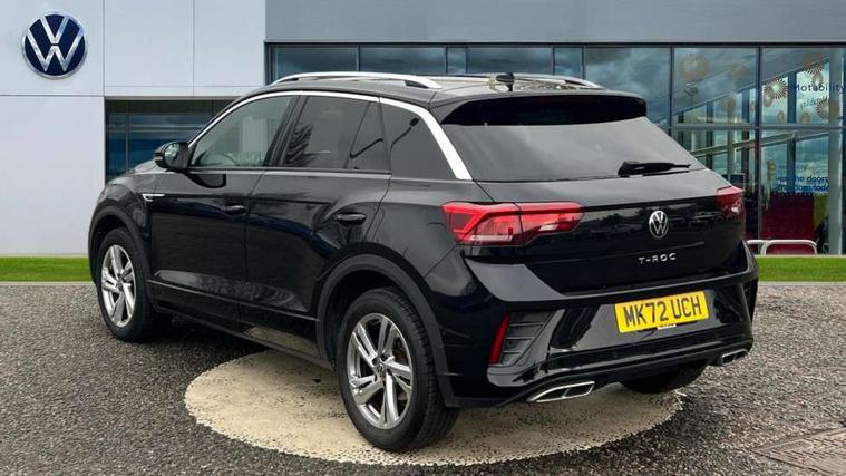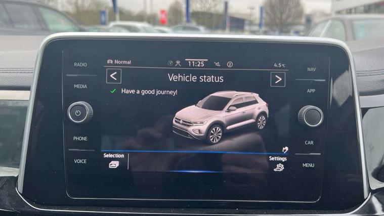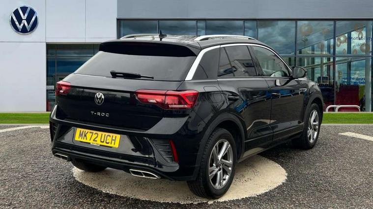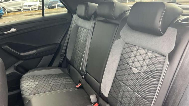 10.25" Digital cockpit pro, Bluetooth mobile phone interface, Driver alert system with fatigue detection, Driver tips and journey analysis, Emergency call service, Lane keeping system Lane Assist, Modified key software - reduce switch off time for key status change to Long no motion, Online services, Park assist including front and rear parking sensors, Service interval indicator, Tailgate/trunk lid release from outside, Think blue trainer driver tips and journey analysis, Warning sound and light for front seatbelts unfastened, Wireless app connect, Battery regeneration during braking, Start/stop function with battery regeneration, Diversity antenna for FM reception, Front and rear 6 speakers, Music playback - MP3, WMA and AAC files, Premium USB cable in choice of either Apple or Android smartphone compatibility, SD card slot, Simultaneous pairing of 2 compatible mobile devices, Title and cover art display, We Connect and We Connect Plus functionality, 3rd brake light, Auto dimming interior rear view mirror, Automatic hazard lights activation under emergency braking, Automatic headlight control with LED separate daytime running lights with coming/leaving home function, Extended roof spoiler, Exterior mirrors aspherical on driver side, convex on front passenger side, External USB type C socket and charging sockets, Front windscreen wiper with intermittent wipe and 4 position delay, Heated rear window, LED Plus headlamps, LED rear combination lamps, LED rear number plate lights, LED tail lamp rear comination lamps, Power windows with comfort operation and circuit breaker, R-Line design body coloured bumpers, Rain sensor, Rear exhaust tailpipe, Rear fog light on one side and reversing lights on both sides, Rear side wing doors, Rear wash/wipe with intermittent wipe setting, Remote electrically foldable door mirrors, puddle lights and reverse activated passenger's door mirror, 12V power socket in centre console, 3 rear head restraints, 3 seat bench in 2nd row, 4 load lashing points in luggage compartment, Air care climatronic air conditoning system with active combination filter and 2-zone temperature control, Black roof lining, Chrome plated radiator grille inserts, air vent surrounds and light switch surrounds, Door and side trim panel with leatherette insert, Drawer under drivers seat, Front + rear carpet mats, Front centre armrest, Front cupholders x 2, Front footwell illumination, Front reading light, Front scuff plates with R logo, Instrument lighting, white adjustable panel illumination, Interior ambient lighting and surround lighting, Interior light delay, Isofix child seat preparation, Leather gearshift handle, Load-through provision with cup holder when folded down ('Unsplit rear seat bench, split folding backrest, with centre armrest), Luggage compartment lighting, Single front passenger seat, Stainless steel pedals, Storage compartment in left and right luggage area, Storage compartment in rear doors, Storage compartments in driver and front passenger doors, Sunvisors with illuminated vanity mirrors, Variable boot floor, height adjustable and removable, Driver assistance pack without proactive passenger protection - T-Roc, 3 point height adj front seatbelts + pretensioners, 3 point seatbelts in outer rear with ECE label, ABS, Child locks on rear doors, Driver and front passenger airbag with front passenger airbag deactivation, Driver and front passenger safety-optimised head restraints, Drivers seatbelt reminder, Electronic parking brake, Electronic Stability Control (ESC) inc EDL (Electronic Differential Lock) and ASR (Traction Control), Front and rear passengers curtain airbag system including front side airbags, Front assist with city emergency braking and pedestrian monitoring, Front seat side impact airbags, Hill start assist, Predictive pedestrian protection, Rear disc brakes, Single tone horn, Tyre pressure loss indicator, Volkswagen roadside assistance, Alarm with interior protection, Anti-theft alarm system with interior monitoring, backup horn, and towing protection, Remote central locking with SAFELOCK, radio remote control with 2 remote control folding keys, Trims for alloy wheels,