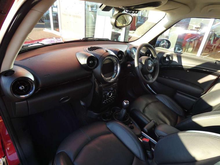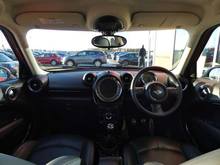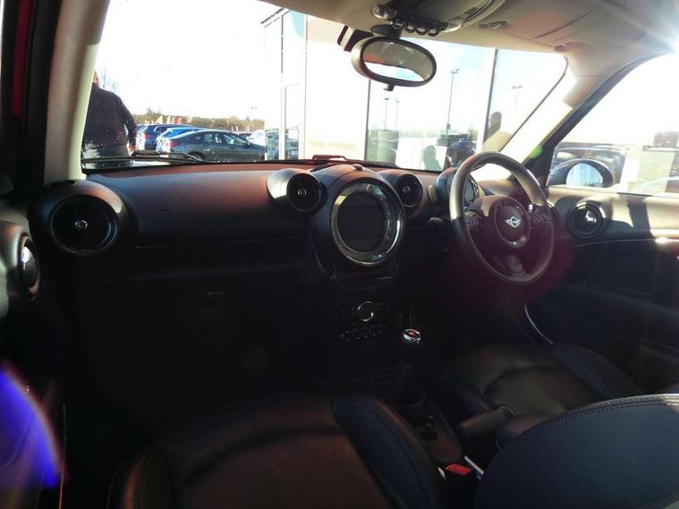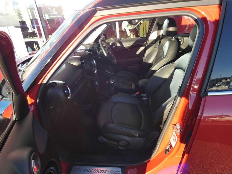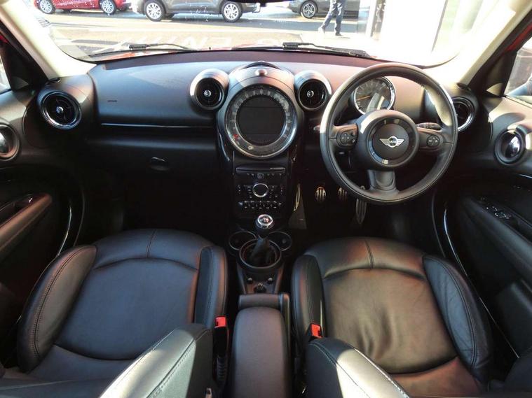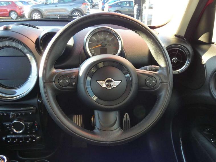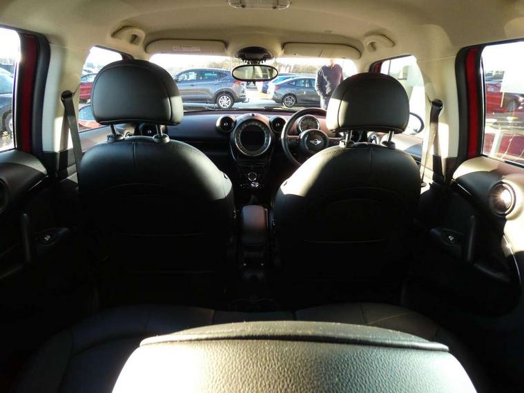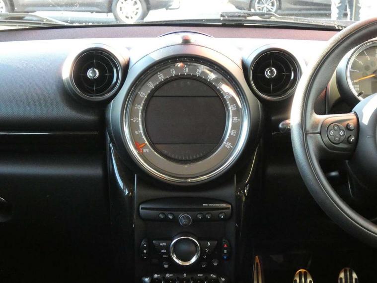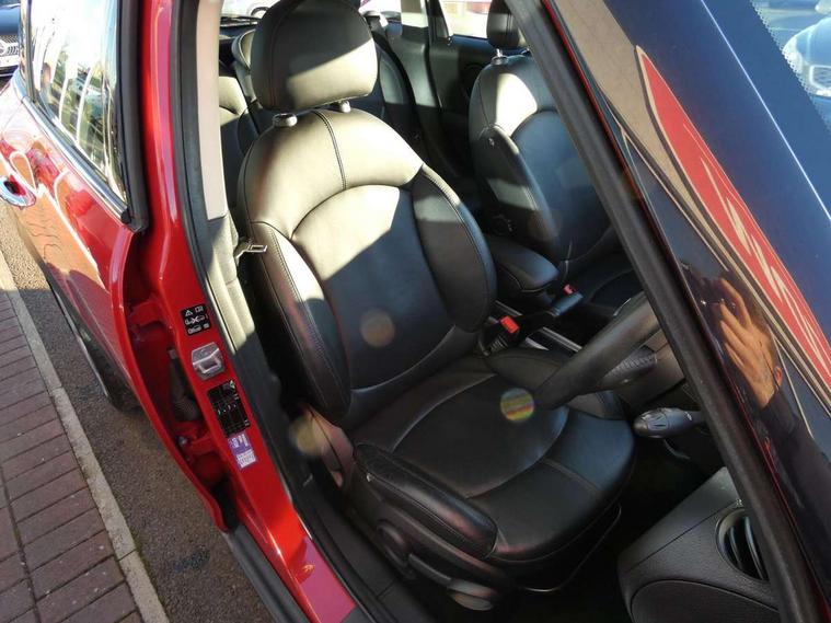Brake fluid level warning light, Brake pad wear indicator warning light, DTC - Dynamic traction control, Electric power steering, Engine start/stop button, Exterior temperature gauge, Oil level indicator, Rear park distance control, Run flat indicator, Service interval indicator, Sports button, Auxiliary input socket, DAB Digital radio, Radio BOOST + single slot CD, Anthracite roof rails, Anti dazzle mirror, Body colour bumpers, Body coloured air scoops, Chrome bezels around rear lights and headlights, Chrome door handles, Chrome exhaust tailpipes, Chrome plated trim on bottom edge of window, Chrome-plated radiator grille surround, Electric front and rear windows + anti trap + one touch, Electrically adjustable door mirrors, Follow me home headlights, Heated door mirrors/heated windscreen washers, Heated rear window with automatic switch off, Honeycomb radiator grille, Metal look door sill finishers, Rear wiper, Roof spoiler in roof colour, White indicator lights, 2 cupholders in front centre console, 3 rear seats, 3 spoke sport leather steering wheel, 4 lashing points to secure luggage, 60/40 split sliding rear seats, Adjustable headrests, Boot light, Centre console storage, Chrome interior door handles, Driver's seat height adjuster, Driver/passenger sunvisors, Front reading lights, Front seat backrest storage nets, Front sports seats, Gear knob with chrome ring, Gear/selector and handbrake in artificial leather, Height/reach adjustable steering column, Interior light, Isofix child seat preparation, MINI centre rail, Rear grab handles, Side sunvisor for driver, Stainless steel foot rest, Stainless steel pedals, Storage compartments in doors, Vanity mirrors, 3-point rear centre seat belt, ABS, Automatic Stability Control (ASC), Cornering brake control (CBC), Crash Sensor - activates hazard/interior lighting + unlocks doors, Driver and passenger airbags, Driver and passenger side airbags, DSC - Dynamic Stability Control, Electronic brake force distribution, Front head airbags, Front seatbelt pretensioners with force limiters, Hill start assist, Manual passenger airbag deactivation function, Tyre pressure warning, Automatic door locking, Electronic immobiliser, Locking wheel bolts, Remote central locking + boot release, Second remote key, Thatcham Cat.1 alarm, Anthracite interior trim,