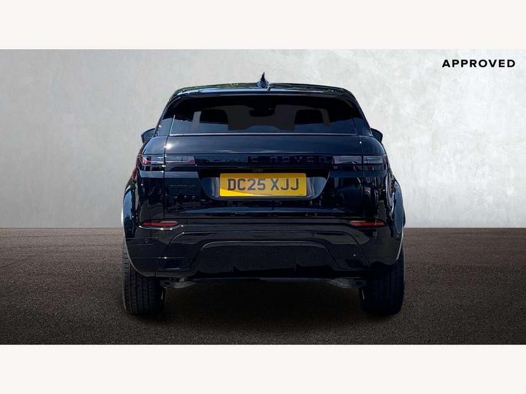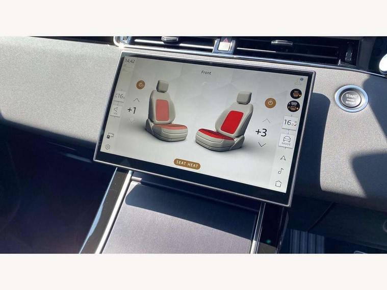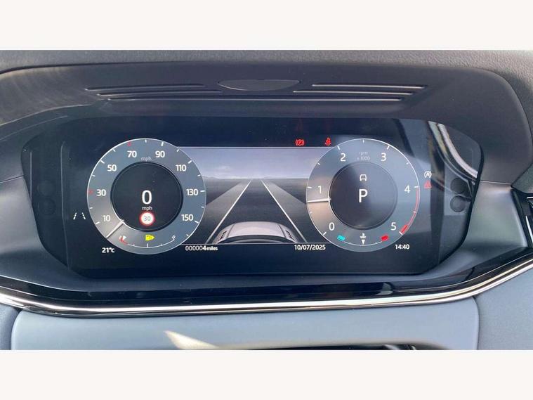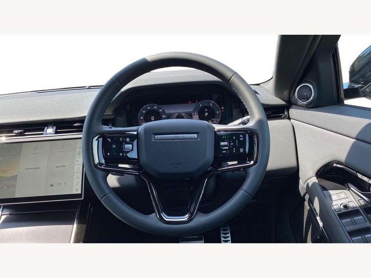 11.4" touch screen, 3D 360 degree surround camera with wade sensing, Adaptive cruise control, Android Auto, Apple car play, Blind spot assist, Bluetooth connectivity, Brake pad wear indicator warning light, Driver condition monitor, eCall emergency system, Eco mode, Electronic power assisted steering (EPAS), Front and rear parking aid, InControl remote, Interactive driver display, Land Rover InControl apps, Lane keep assist, Pivi pro connected includes diamond pivi variant, smart settings, connected navigation pro, nuance speech licence, Powered tailgate/boot lid, Rear collision monitor, Rear traffic monitor, Tailgate, Traffic sign recognition with adaptive speed limiter, Voice control system, Wireless device charging, All terrain progress control, Diesel exhaust fluid (DEF) large tank, Efficient Driveline, Large fuel tank, Passive suspension, Terrain Response 2, Digital Audio Broadcast radio-DAB, Meridian sound system with 400W subwoofer and 11 speakers, Steering wheel mounted controls, Acoustic laminated windscreen, Auto dimming interior rear view mirror, Auto headlights, Auto high beam assist, Automatic headlight levelling, Black contrast roof, Electric windows with one touch open/close and anti trap, Fixed panoramic sunroof with powered sunblind, Flush deployable exterior door handles, Front and rear recovery eyes, Heated rear window with timer, Heated washer jets, Heated windscreen, LED headlights with signature DRL and LED tail Lights, Metallic paint, Power fold, auto-dimming, heated door mirrors with approach lights and auto dimming driver side, Privacy glass, Rain sensing windscreen wipers, Rear animated directional indicators, Rear fog lights, Rear side wing doors, Rear wiper, Side repeater indicators in mirror, Tailgate spoiler, Third brake light, Winter wiper park position, 12 way driver memory and 10 way passenger electric front seats with 2 way manual headrest + 4 way lumbar support, 40:20:40 split folding rear seats with centre headrest and armrest, Ambient interior lighting, Bright metal pedals, Cabin lighting, Carpet mats, Chrome tread plates with range rover branding Includes stainless steel loadspace scuff plate with etched graphic, Customer configurable single point entry, Front and rear cupholders, Grained Leather upholstery, Heated front seats, Heated steering wheel, Isofix system on outer rear seats, Manually adjustable steering column, Overhead lighting console, Overhead stowage for sunglasses, Passive front head restraints, Rear air vents, Rear head restraints, Satin chrome gearshift paddles, Single passenger seat, Standard steering wheel with Moonlight Bezel, Sunvisors with illuminated vanity mirrors, Twin sliding front centre armrest, Two zone climate control, Black exterior styling pack - Evoque, Power socket pack 2 - Evoque, 3 rear 3 point seatbelts, Anti-lock braking system (ABS), Black brake calipers, Brake hold function, Customer configurable autolock, DSC - Dynamic Stability Control, Electronic brake force distribution, Electronic parking brake, Electronic traction control, Emergency braking, Front and rear seatbelt reminder, Hill descent control, Hill launch assist, Low traction launch, Occupant protection assist, Passenger seat occupant detector, Power operated child locks, Roll stability control, Six airbags - Driver and passenger airbags/driver knee airbag/front side airbag and curtain airbags, Torque vectoring brake, Tyre pressure monitoring system, Alarm, Immobiliser, Intrusion sensor, Keyless entry, Locking wheel nuts, Secure tracker pro, Black brushed aluminium finisher, 19" gloss black alloy wheels - Style 5136, All season tyres, Tyre repair system,