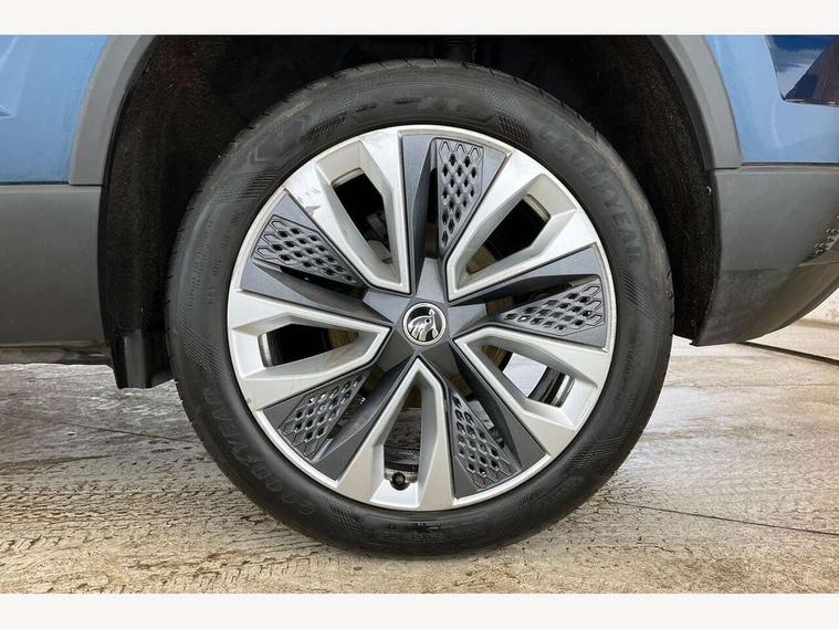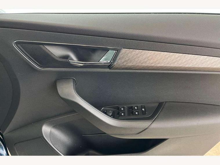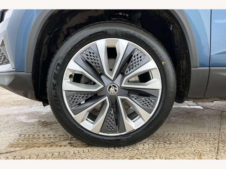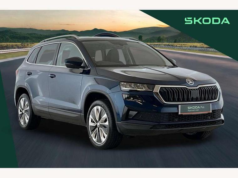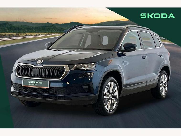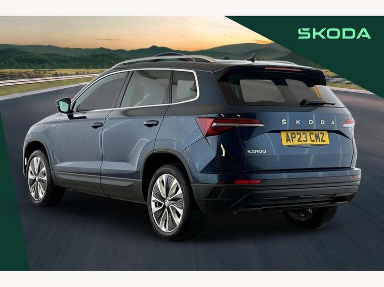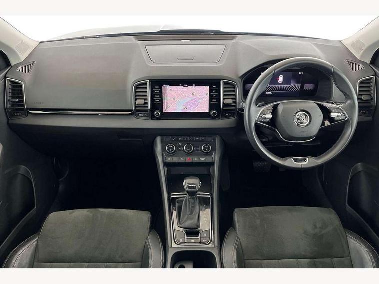 8" Digital display, Care connect, Driver fatigue sensor, Emergency services call system, Outside temperature gauge, Service interval indicator, SmartLink wireless for Apple and wired for Android, Start/stop system with regenerative braking, USB C Port x 2 in front centre console, 8 Speakers, DAB radio with Bluetooth, USB connection, Acoustic glass, Aero front windscreen wipers with intermittent function, Auto dimming rear view mirror with light and rain sensors, Black electric window control buttons, Body colour door mirrors and handles, Dynamic headlight range control with cornering light function, Electric front and rear windows with child proof lock, Heated rear windscreen, LED daytime running lights, LED rear lights with high functionality welcome effect and dynamic indicators, Light assistant (coming/leaving home/tunnel light), Plastic scuff plates, Privacy glass, Rear side wing doors, Rear spoiler, Rear window wiper with washer system and intermittent control, Safety reflectors on front doors, 1.5 litre bottle holders in driver and front passenger door panels, 12V socket in boot, 12v socket in front centre armrest with storage compartment and rear air vents, 2 Folding hooks and nets in boot, 2 spoke leather heated multifunction steering wheel with DSG paddles, 2 x Tablet holder, 3 rear height adjustable headrests, 3 seat bench in 2nd row, 4 foldable roof handles with rear coat hooks, Black floor carpet, Chrome inner door handles, Decorative door sills with KAROQ badging, Double sided boot floor, Foldable hooks in the boot, Front head restraints, Height adjustable front three point seats belts with tensioners, Height/reach adjust steering wheel, Ice scraper, Illuminated glovebox, Illuminated luggage compartment, Isofix child seat preparation for front passenger seat, Isofix child seat preparation outer rear, Manual lumbar support for front seats, Pen holder, Pollen filter, Rear boot cover, Rear reading lights, Rubbish bin door, Safety vest holder, Single front passenger seat, Storage box in upper central dashboard closed, Sunvisors with illuminated vanity mirrors, Textile floor mats, Ticket holder, VarioFlex seats with standard rear seat release, Chrome roof rails + chrome pack - Karoq, Parking pack - Karoq, Automatic door unlocking in case of crash, Automatic fuel cut off in case of crash, Child locks on rear doors, Driver airbag, Electronic parking brake with auto hold function, Emergency rear braking signal, ESC including ABS, MSR, ASR, EDS, HBA, DSR, RBS, MKB and traction control, Front side airbags, Hill hold control, Knee airbags, Passenger airbag with switch-off function, Pedestrian monitor, Seatbelt reminder signalisation and pretensioner for all seats, Three point seatbelts rear, Two tone horn, Tyre pressure display, Tyre pressure monitor, Alarm with interior monitoring, back up horn and tilt sensor with safe function, Electronic engine immobiliser, Keyless entry and start/stop, Remote central locking with 2 remote folding keys, Chrome framed air vents, 18" Procyon silver alloy wheels with anthracite aero inserts, Anti-theft wheel bolts protection, Storage on wheel cover, Tool kit,