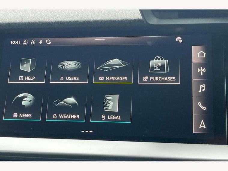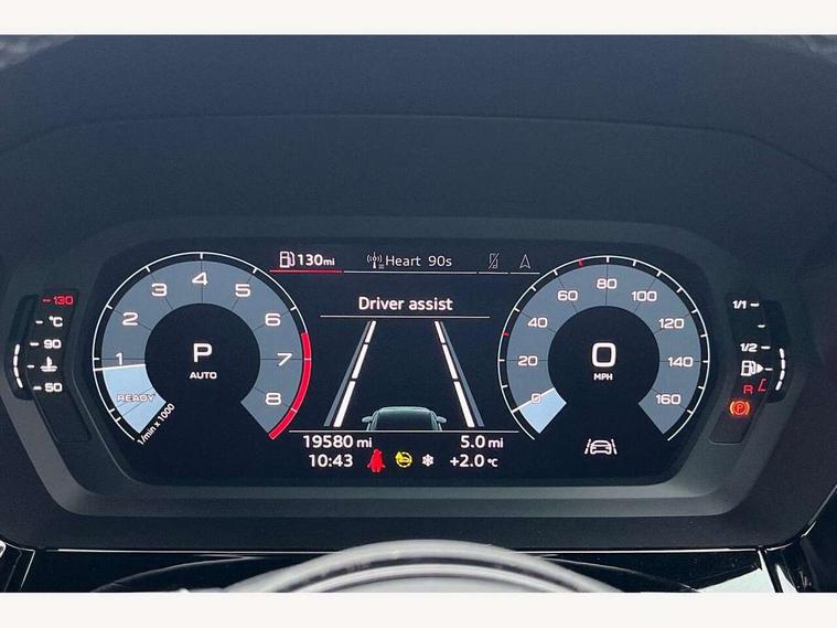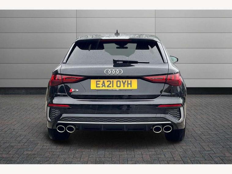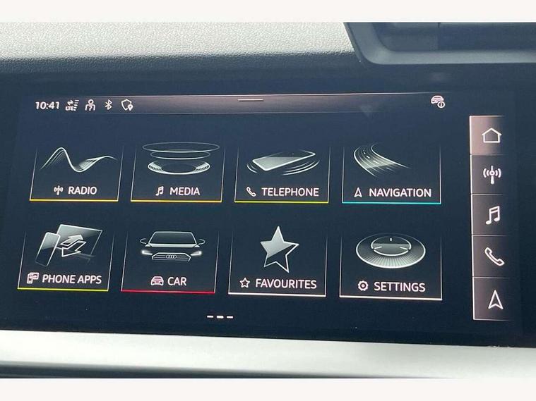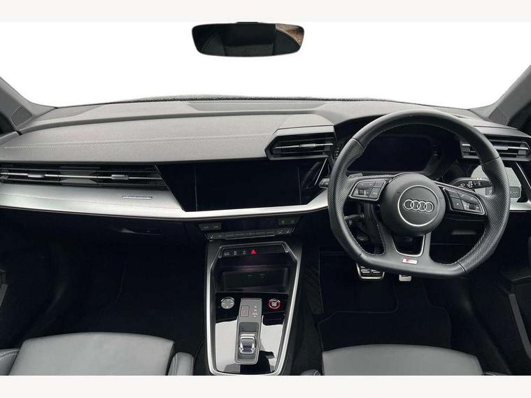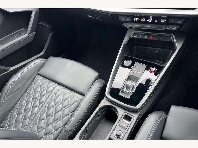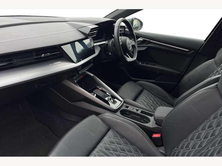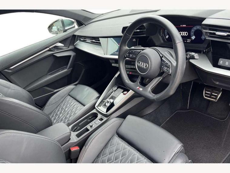 Audi connect emergency call and service, Audi drive select (Auto, Comfort, Dynamic, Efficiency and Individual), Audi smartphone interface, Audi Virtual Cockpit - 10.25" digital and colour instrument cluster, Automatic start/stop system with recuperation, Bluetooth interface, Collision avoidance assistant, Lane departure warning system, MMI Navigation Plus with high resolution 10.1" colour touch screen display, Progressive steering, Service indicator, Trip computer, Voice control system with natural language interaction, Quattro permanent all wheel drive, S sports suspension, 2xUSB-C connection with data and charging functions, 6 passive loudspeakers, DAB Digital radio, Acoustic glass windscreen, Aluminium window trim, Audi Beam uses LEDs to project the Audi S3 logo, Auto dimming frameless rear view mirror, Dual branch oval twin tailpipes in chrome plated finish, Electrically adjustable/heated/folding/auto dimming door mirrors with integrated LED indications + kerb view function for passenger side, Front electric windows, Headlight washers, Illuminated aluminium inserts front door sills with S logo, LED daytime running lights, LED headlights with LED rear lights and dynamic rear indicators, Light and rain sensors, Privacy glass - dark tinted rear window, rear door and side windows, Rear electric windows, Rear side air outlets in grained matt black, Rear wiper, 12V socket and storage compartment in front centre console, 40/20/40 split folding rear seat bench with cupholder, Black cloth headlining, Dual zone electronic climate control, Front and rear centre armrest in leather, Front and rear headrests, Front/rear floor mats, Heated front seats, Height and reach adjustable steering wheel, Interior lighting - glove compartment light and right hand side, Luggage compartment floor covering, Manually adjustable front seats, Seat side bolsters, Stainless steel pedals and front footrest, Aluminium interior elements pack - A3 Sportback, Design body styling - A3 Sportback, Storage pack - A3 Sportback, 3x3 point rear seat belts, Driver and front passenger airbag with passenger airbag deactivation, Electronic Stabilisation Control (ESC) including ABS, ASR and EDL, First aid kit with warning triangle and 2 safety vests, Front side airbags with head airbags and interaction airbag, Hill hold assist, Pre-sense front with pedestrian and cyclist detection, Seatbelt monitoring, Tyre pressure loss indicator, Anti theft alarm, Anti-theft wheel bolts, Electronically operated child lock, Immobiliser, Remote control central locking, Accent surfaces in the dashboard and centre console in platinum grey silk effect paint finish, Dark spectrum aluminium inlays,