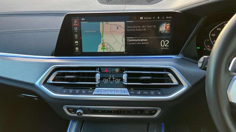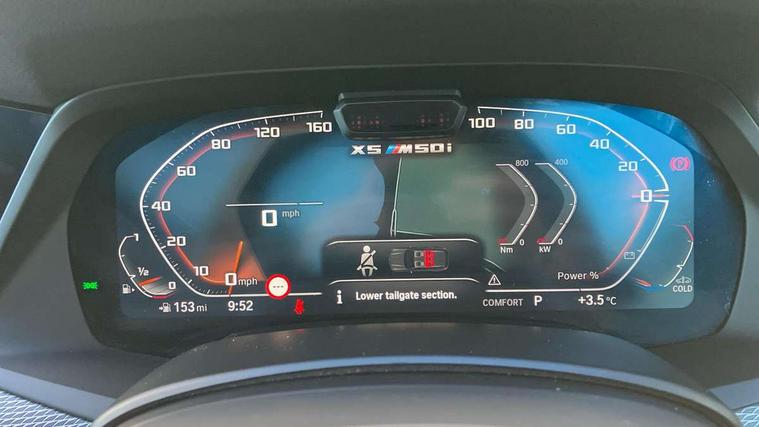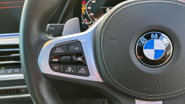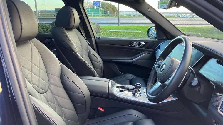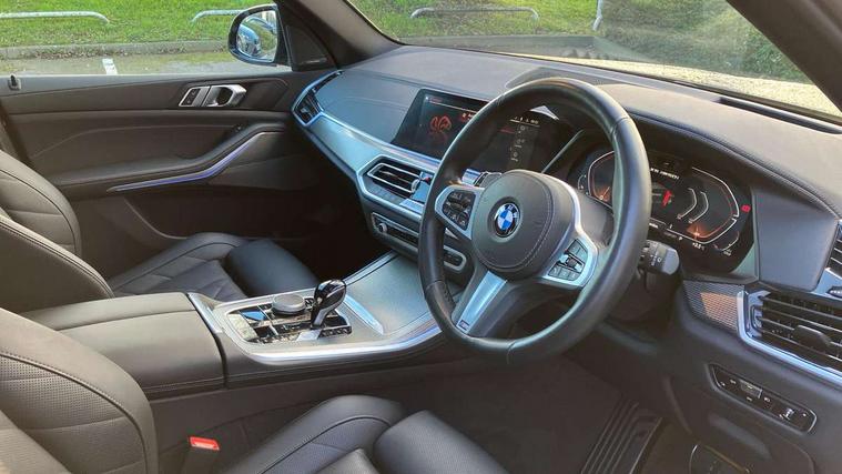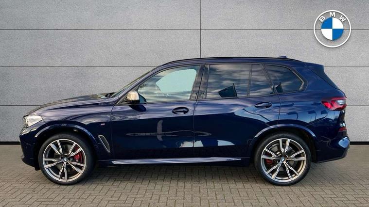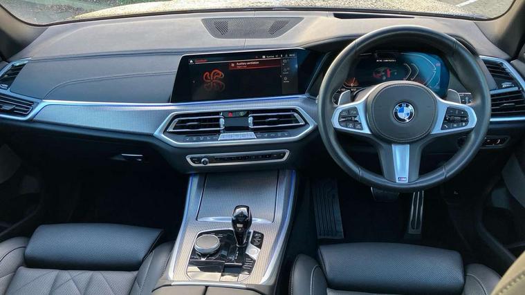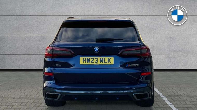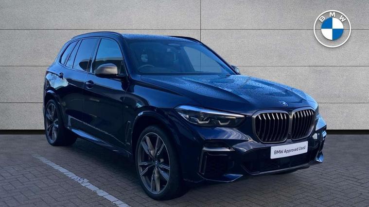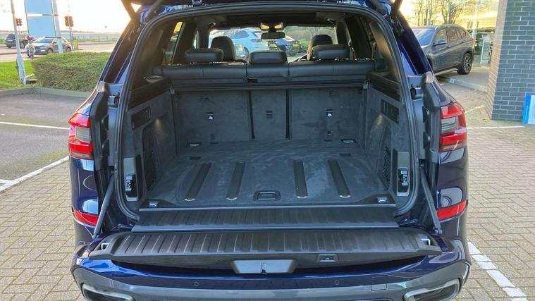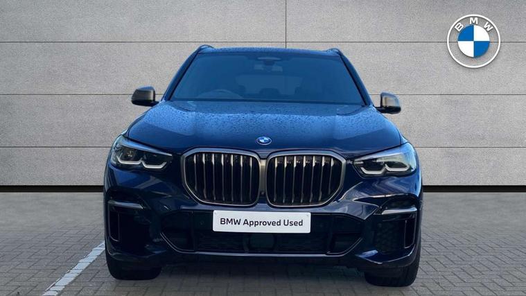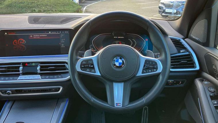 20GB hard disc drive (HDD) memory, Active guard plus, Attentiveness assist, Automatic tailgate with top hinged section open and manual bottom hinged section, BMW ConnectedDrive online services, BMW digital live cockpit professional - 12.3" digital instrument panel and 12.3" CID, with touch/voice command, BMW legal emergency call, BMW Teleservices, Brake force display, Brake pad wear indicator warning light, Enhanced bluetooth with wireless charging, Front/rear park distance control, iDrive controller with shortcut buttons, Lights on warning, Oil sensor for level and grade, On board computer inc. average speed, fuel consumption, liquid crystal Info display, journey computer, outside temperature display, personal profile, Service interval indicator, Wi-Fi hotspot, Double VANOS, Double wishbone front axle, Drive performance control with ECO PRO comfort + sport mode, Eight speed steptronic sport automatic transmission and gearshift paddles on the steering wheel, High precision injection, M Sport differential, Petrol Particulate Filter, Safety battery terminal clamp, Twin scroll turbocharger with Valvetronic, DAB Tuner enables digital radio reception, Favourite buttons, USB connection, USB type A 1.5A in cupholder, USB Type C 3A in centre armrest, Adaptive air flap control bar in high-gloss black, Automatically dimming rear view mirror, BMW Individual high gloss black shadow line roof rails, BMW Individual high gloss shadow line, Body colour bumpers, Body colour door handles, Cerium grey kidney grille, Cerium grey M badge on left and right side panels, Cerium grey M50i badge on right tailgate, Cerium grey side gill, Dynamic brake lights with LED technology, Exhaust tailpipes - single, left and right in Cerium Grey, Follow me home headlight function, Front and rear electric windows with open and close fingertip control, anti trap facility and comfort closing, Heated windscreen washer jets, High beam assistant, High gloss black outer and central air intakes on front bumper with pearlescent chrome finish, High gloss black Side elements, LED daytime running lights, LED rear lights, M aerodynamic body styling, M Sport exhaust system, Rain sensor with automatic headlight activation and windscreen wiper control, Rear side wing doors, Satin aluminium side window graphic, Sun protection glazing, Third brake light in rear spoiler, Variable intermittent rear wash/wipe, Welcome light carpet, X5 on left tailgate, xDrive designation on right tailgate, 12V - Power sockets with 2x centre console and 1x luggage compartment, 3 seat bench in 2nd row, 40:20:40 split folding rear seats, Ambient interior lighting with 6 pre-designed selectable lights including dynamic function, Centre and rear interior light, Child seat ISOFIX attachment with rear outer seats includes top tether, Compartment in front of cupholder, Electric front seat adjustment with driver and front passenger memory function, Electrical steering column with adjustable height and length with activation and control on the steering column, Foldable rear centre armrest with 2 cupholders and storage compartment, Front and rear cupholders x 2, Front and rear door pockets, Front and rear door sill finishers with illuminated M50i designation, Front and rear side armrest integrated into door trim, Front footwell lights, Front reading lights, Light inside glove compartment, Lockable glove compartment, Luggage compartment floor panel with integral storage tray, Luggage compartment lighting, M leather steering wheel, M specific key, M specific pedals, M specific steering wheel, Make-up mirror lights, Multifunction controls for leather steering wheel, Multifunctional hooks, Rear head restraints, Seat back with flap pocket, Securing rings in luggage compartment, Single front passenger seat, Storage bins on all doors, Storage tray and compartment with cover in centre console, Sunvisors with illuminated vanity mirrors, Toolkit located in luggage compartment, Velour floormats, Connected Package Professional - X5, Expanded exterior mirror pack - X5/X5 M, Non-smokers pack - X5, Active protection, Airbags - driver/front passenger, rear and side, first and second row seats head airbags, front passenger seat airbag deactivation + knee airbag, Anti-lock braking system (ABS), Automatic Stability Control (ASC), Brake drying, Brake energy regeneration, Brake fade compensation, Braking pre-tensioning, Cornering brake control (CBC), Crash sensor activating central locking release, hazard warning lights, fuel cut off, interior lighting + activation of safety battery terminal clamp, Deformation zones - front and rear with door reinforcements and bumpers up to 2.5 mph, DSC - Dynamic Stability Control, Dynamic brake control, Dynamic Traction Control - DTC, Electromechanical parking brake with automatic drive away release and auto hold function, Electronic brake force distribution, Front and rear seatbelts with seatbelt stopper, seatbelt tensioner for front and outer rear seats and belt force limiter, Front head restraints with anti-whiplash, Height adjustable front seatbelts, Hill start assistant, Integrated brake system, M sport seatbelt, Mechanical child proof lock on rear doors, Passive protection for pedestrians, Seat occupancy detection for driver and passenger side, Side impact protection, Three 3 point inertia reel seatbelts, Two tone horn, Tyre pressure monitoring system, Ventilated front and rear disc brakes, Warning triangle and first aid kit, Closing system with central locking, Driver and front passenger door centre lock switch, Locking wheel bolts, Thatcham 1 alarm system with remote control and engine immobiliser, Start/stop toggle diamond shaped trim finisher in pearl chrome, Tyre repair kit,