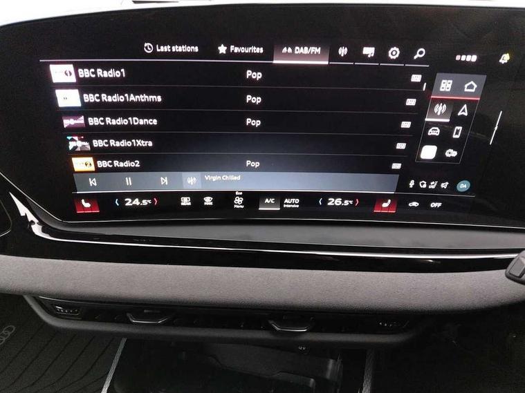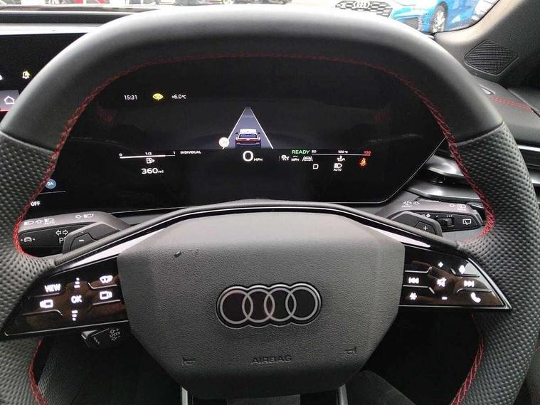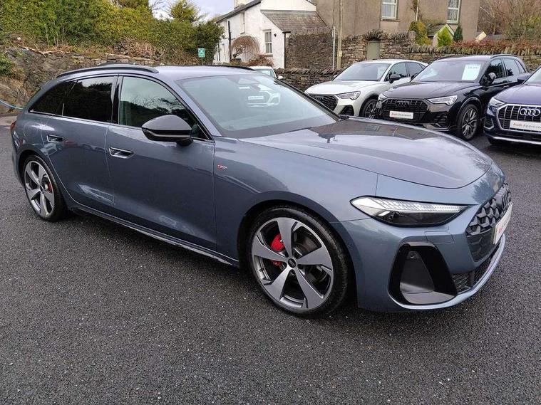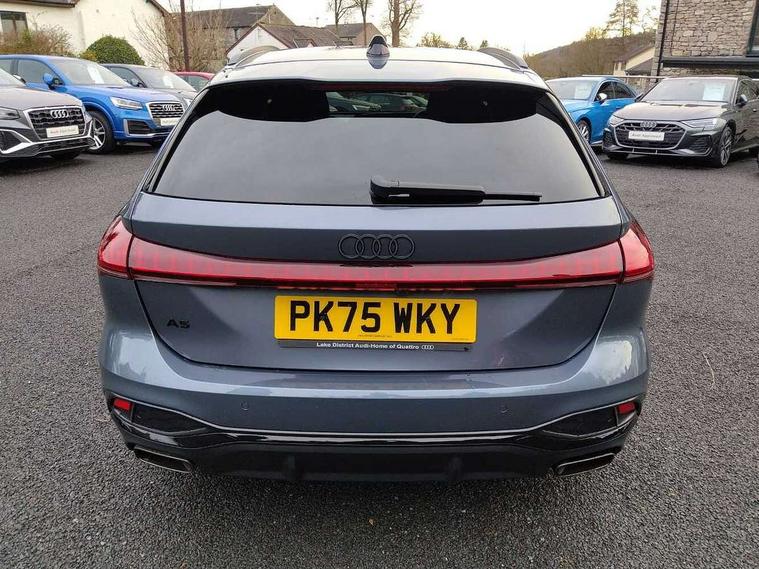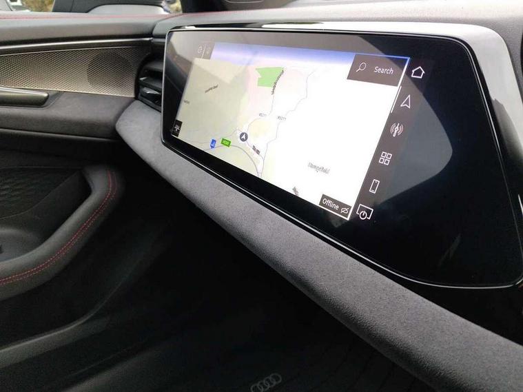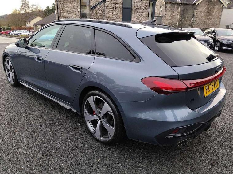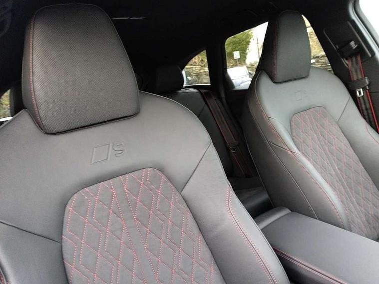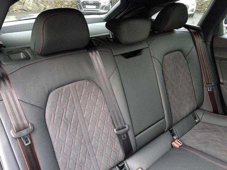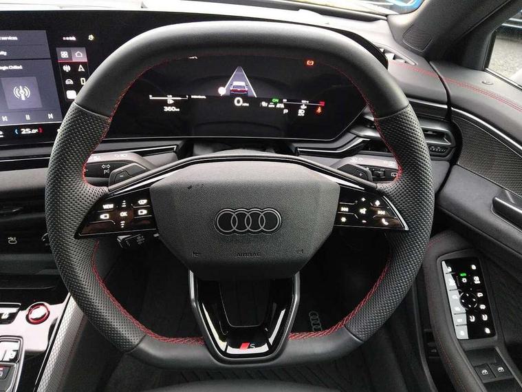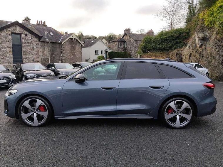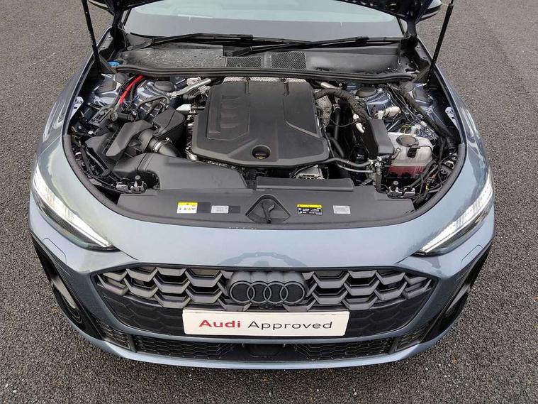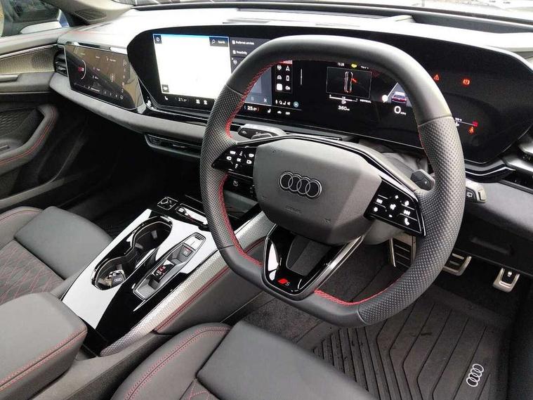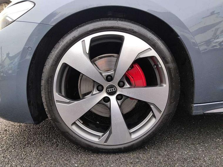 Adaptive cruise control, Advanced driver attention and fatigue montior, Audi application store, Audi assistant, Audi connect emergency call and service, Audi drive select, Audi virtual cockpit plus with 11.9" OLED colour display, Automatic start/stop system with coasting functionality, Camera based traffic sign recognition, Intersection assist, Lane change assistant with exit warning system, rear cross traffic alert and rear turn assist, Lane departure warning with emergency assist, MMI 10.9" front passenger touch display, MMI navigation plus with high resolution 14.5" OLED touchscreen colour display, Park assist plus, Parking system plus with 360 display, Progressive steering with servotronic, Smartphone interface, Swerve assist and turn assist, Top view camera, Traffic sign based speed limiter, Sports suspension lowered by 20mm, 2 USB-C ports in both the front and rear, Audi sound system impressive sound with 8 loudspeakers including centre speaker and subwoofer, 6-channel amplifier with a total output of 180 watts, DAB digital radio reception, Smartphone compartment with wireless charging, Aluminium window trims, Auto dimming rear view mirror, Black door handles, Black roof rails, Dark chrome-plated tailpipe trims, Door mirrors - electrically adjustable, heated, folding and auto dimming on both sides, Front and rear electric windows, Front door sill trims with aluminium inlays, illuminated with 'S' logo, Headlight cleaning system, High beam assist, LED daytime running lights, LED rear lights pro incl. dynamic rear indicators and illuminated light strip with animated coming and leaving home function, LED third brake light, Matrix LED headlights with eight light signatures selectable via the MMI or the myAudi app, Privacy glass, Rear and side windows with heat insulating glass, Rear side wing doors, Rear wash/wipe, S Line badges on the front wings, S line bumpers, radiator grille and diffuser in phantom black and diffuser insert in matt anthracite, White rhombus logo projection light in exterior mirrors, Windscreen with acoustic glazing, 3 rear headrests, 3 seat rear bench, 3 spoke leather steering wheel with multi-function buttons with touch control, flattened on top and bottom, with S badging and contrast stitching, 3-zone automatic climate control, 40:20:40 split folding rear seat bench with centre armrest and cup holders, Comfort front centre armrest, Electrically adjustable front seats, Front and rear floor mats, Front sport seats with integrated headrest and S embossed logo, Headlining in black cloth, Heated front seats, i-Size child seat mounting on the front passenger side and outer rear seats, i-Size and top tether on the outer rear seats, Luggage compartment lid, electrically opening and closing, Manual steering column height and depth adjustment, Memory function for driver seat, Single front passenger seat, Stainless steel pedals and footrest, Steering wheel grips in perforated leather and shift paddles, Ambient lighting package plus - A5, Black styling package plus - A5, 3x3 point rear seat belts, Acoustic vehicle alerting system, Convenience key with safelock, Driver airbag, Electric child safety locks, First aid kit with warning triangle and vests, Front emergency brake assist, Front passenger airbag, Front passenger airbag deactivation, Hill hold assist, Occupant detection in rear seat area, Proactive passenger protection system for front, sides and rear, Red brake calipers, Seat belt monitoring with rear seat occupant reminder, Side airbags in front and rear with head airbag system and front interaction airbag, Tyre pressure loss indicator, Anti theft alarm, Anti-theft wheel bolts, Keyless Go, Accent surfaces and control buttons in gloss black, Black dashboard with contrast stitching, Softwrap in Dinamica with contrast stitching, Upper and lower interior elements in dinamica microfiber, 20" 5 arm fold design Audi sport alloy wheels in silk matt grey and gloss turned finish, Tyre repair kit,