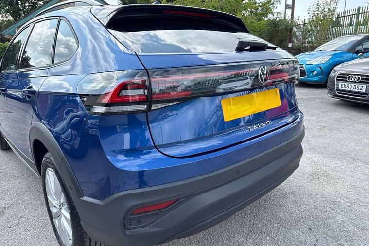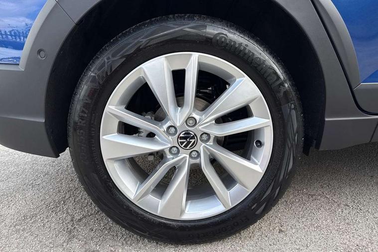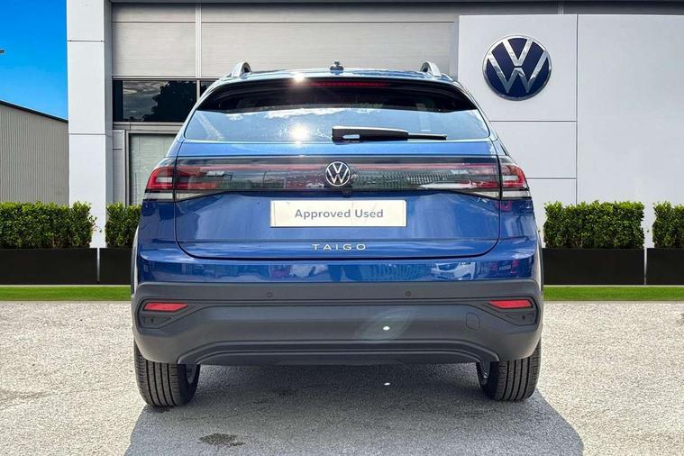Driver alert system, e-Call (emergency call), Power Steering, Rear view camera, Travel assist including emergency assist, Washer fluid level indicator, Wireless Charging including Bluetooth, Start-stop system with battery regeneration (recuperation - energy recovery during braking), WeConnect plus, Ambient lighting with logo projection, Aspherical driver's exterior mirror, Body coloured bumpers, Body coloured exterior mirror housings and door handles, Electric windows, External USB type C socket and charging sockets, Heat insulating glass windscreen, LED rear combination lamp, LED third brake light, Left convex exterior mirror, Power folding adjustable/heated exterior mirrors and front passenger exterior mirror lowering function, Rear fog light on one side, reversing light on both sides, Rear side wing doors, Rear wash/wipe with intermittent wipe setting, Side windows in heat-insulating glass, from B-pillar and rear window dark tinted, 'Slash/ Austin' Cloth upholstery, 12V socket in centre console, 2 front reading lights, 3 rear head restraints, 3 seat bench in 2nd row, Black carpets, Ceramique headliner, Child seat anchor for child seat system i-Size, 2x top tether and child seat anchor in front on front passenger side, Door and side trim panels in titan black, Driver and front passenger seat height adjustment, Front centre armrest, Handbrake lever handle in leather, Height and reach adjustable steering wheel, Leather trimmed gear knob, Leather wrapped multifunction steering wheel, Luggage compartment floor, Luggage compartment light, Lumbar support for driver's and front passengers seat, Seat covers in titanium black, Single front passenger seat, Split folding backrest with centre armrest and unsplit rear seat bench, Storage compartment under front seats, Sun visors with illuminated vanity mirrors, Titanium black instrument panel, Chrome Package - Taigo, Drivers assistance package - Taigo, Light and sight pack - Taigo, 2 x 3-point seatbelts/outer rear seats with ECE label, 3-point seat belts in front with pretensioner and height adjustment, 3-point seatbelt for centre rear seat, Driver and front passenger airbag with front passenger airbag deactivation, Driver and front passenger safety-optimised head restraints, Electronic stability control, Extended and predictive pedestrian/ cyclist protection, Front and rear disc brakes, Front curtain and side airbags with center airbag, Hill start assist, Manual rear child locks, Single tone horn, Tyre pressure loss indicator, Anti-theft alarm system with interior monitoring, backup horn, and towing protection, Anti-theft wheel bolts, Keyless locking and starting system keyless access with safelock, Black (slush) Dashboard, Lava stone black gloss/matt decorative inserts in dash and front door panels, Low rolling resistance tyres,