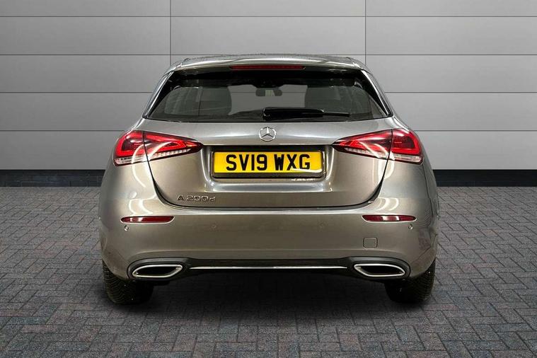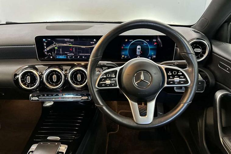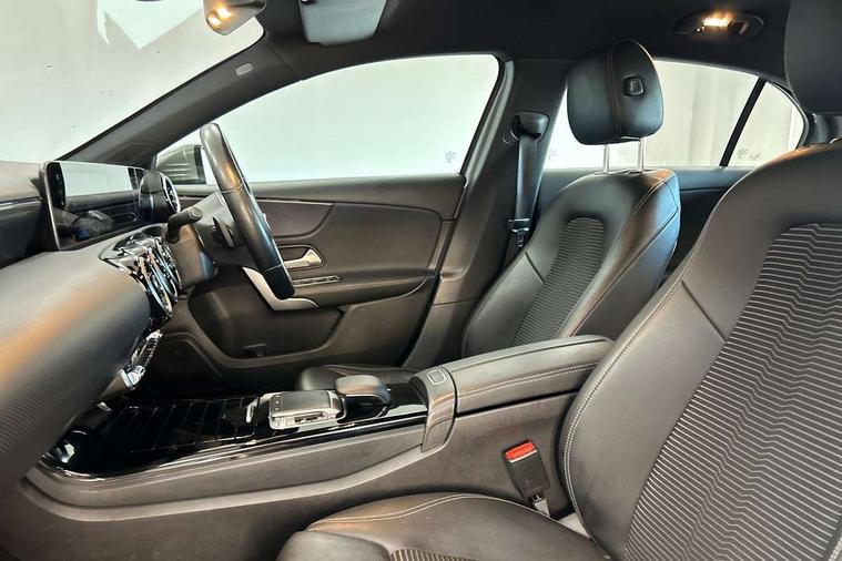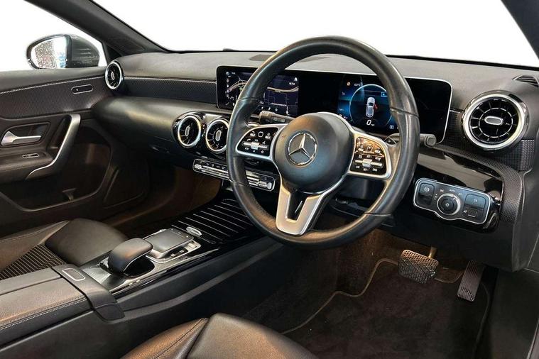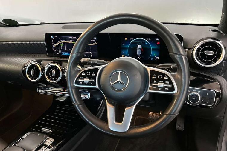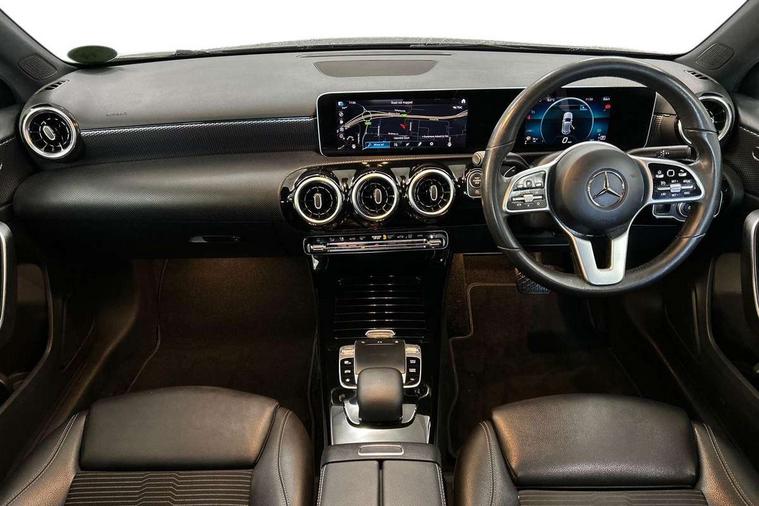 10.25" media display, 180 degree rear view camera with parking guidelines, 7" colour screen in instrument panel, Active lane keep assist, Active park assist with parktronic system including front and rear parking sensors, Attention assist, Brake pad wear indicator warning light, Direct steering, Direction indicators with lane change function, DYNAMIC SELECT with a choice of driving modes (ECO, Comfort, Sport, Sport+ and Individual), Fluid level warning indicator for fuel, oil, coolant and washer fluid, Hard-disk navigation, Lamp failure indicator, Mercedes me connect including emergency call system, accident recovery, breakdown and maintenance management, Outside temperature gauge, Radio aerial integrated into roof spoiler, Service indicator (ASSYST), Speed sensitive power steering, Stop/start system, Trip computer, Voice activation, Lowered comfort suspension, DAB Digital radio, Dual bluetooth interface, 2 USB ports (type C), MBUX multimedia system with DAB digital radio and touchpad including satellite navigation, Adaptive brake lights, Blue tinted glass, Body colour bumpers, Body colour door handles, Body colour side skirt, Body coloured door mirrors, Chrome beltline trim, Chrome weather strip, Diamond radiator grille with black pins with one louvre in silver + chrome insert, Electric adjustable and heated door mirrors with integrated LED side indicators, Electric front windows, Electric rear windows, Exhaust system - Twin trapezoidal tailpipes in polished stainless steel, Headlamp assist automatic headlamp activation, Heated glass rear windscreen + timer control, LED high performance headlamps with integrated LED daytime running lights, LED tail lamp, LED third brake light, Rain sensor windscreen wipers, Rear fog lights, Rear wiper, 12V socket, 3 Spoke leather multi function steering wheel, 40:20:40 split folding rear seats, Air vents surround and cruciform nozzle in silver chrome, Artico man-made leather/Fleron fabric upholstery, Auto Mercedes-Benz child seat recognition sensor, Black roof lining, Controller on centre console with chrome surround, Cup holder and stowage compartment lighting, Floor mats, Front centre armrest with storage compartment, Front comfort seats with adjustable head restraints, Front door sills with Mercedes Benz lettering, Front doors with ambient and signal light, Front footwell lights, Front reading lamps, Front seat backs luggage nets, Front seat cushion length adjustment, Front signal exit lamp, Front vanity lights, Gearshift paddles on steering wheel, Handle recess/closing light, Heated front seats, Height/reach adjustable steering column, Illuminated glovebox, ISOFIX Child seat top tethers and anchor fixings, Load securing rings in luggage compartment, Luggage compartment cover, Manual height adjustable front seats, Oddments tray lighting, Rear head restraints, Rear Reading Lamps, Seat occupancy sensor for front passenger seat, Storage compartment under load area floor, Sunvisors with illuminated vanity mirrors, Touchpad, Touchpad illumination, Twin front cupholders, Two zone thermotronic luxury automatic climate control, Mirror package - A Class, Seat comfort pack - A Class, 3 rear 3 point seatbelts, ABS with Brake Assist, Active bonnet, Adaptive brake assist with hold function and hill start assist, Black seatbelts, Childproof locks manually operated for rear doors and electrically operated for rear power windows, Crash responsive emergency lighting, Driver and passenger head and side airbags, Drivers knee airbag, Dual stage driver/passenger airbags, Electronic parking brake, ESP curve dynamic assist, ESP with ASR, Front and rear seatbelt reminder, Tyre pressure monitoring system, Warning triangle and first aid kit, Window airbags, Alarm system/interior protection/immobiliser, Keyless Go, Remote central locking and crash sensor with emergency opening function, Dark carbon fibre interior trim, 17" 10 spoke light alloy wheels painted in vanadium silver, Tirefit sealant kit,