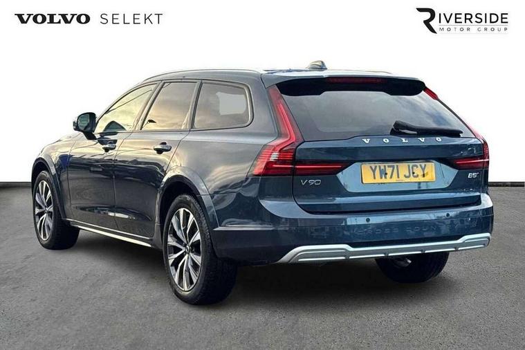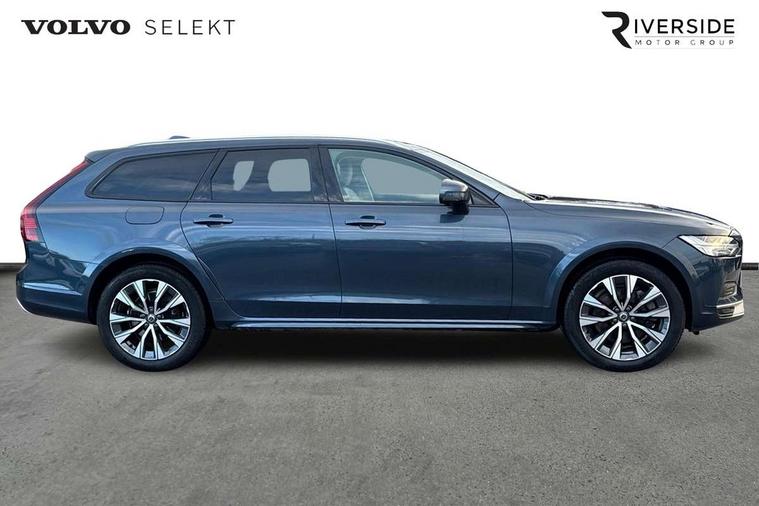 12.3" Progressive Driver Display, 9" centre console touch screen, Adjustable steering wheel force, Bluetooth Handsfree Phone Connection, Drive mode settings, E-call, Google automotive services - Enabled entertainment apps, navigation with google maps, voice recognition with google assistant, Lane keep assist with driver alert control, Oncoming Lane Mitigation, Power operated tailgate, Speed limiter, Speed sensitive steering, Volvo on call, Wireless/Inductive Mobile Phone Charging, 65mm additional ground clearance, 8 speed automatic transmission with start/stop + manual change functions, DAB Radio (Digital Audio Broadcasting), Steering wheel remote infotainment controls, Adaptive brake lights with high level LED brake lights, Auto dimming interior + exterior mirrors, Automatic headlamp levelling, Automatic LED Headlights + Active high beam incorporating daytime running lights, Charcoal lower grille, Charcoal wheel arch extensions, Colour coordinated auto folding and heated power door mirrors, Cross Country embossed rear bumper, Enlarged door mirrors, Front and rear power windows, High gloss black front grille with chrome details, High gloss black window trim, Home safe and approach lighting, Integrated roof rails in silver, Puddle lights in exterior door handles, Rain sensor with automatic windscreen wiper activation, Rear LED lights with sequential indicators, Rear side wing doors, Rear wiper, Roof antenna, Roof spoiler, Silver front and rear skid plate, Visible VIN plate, 3 seat bench in 2nd row, 3 spoke leather steering wheel with chrome trim, A-pillar parking ticket holder, Ambient door and instrument panel lighting, B Pillar ventilation, Blond headlining, Bright metal luggage threshold, Cargo divider with grocery bag holder, Center Console Cupholders and Storage, Driver's side lower dashboard storage compartment, Extended front seat cushions, Floor mats, Front 12V socket tunnel console and cargo area, Front centre armrest storage illumination, Front footwell and side step illumination, Front head restraints, Front/rear door pockets and front cupholder illumination, Front/rear reading lights, Heated front seats, Height/reach adjustable steering column, Illuminated front and rear tread plates, Illuminated glovebox, Illuminated luggage compartment, Illuminated tailgate, Illuminated vanity mirrors + ticket holder, Integrated sun curtains in rear doors, Isofix system on outer rear seats, Leather upholstery with unique stitching, Load cover, Load protection net, Off-black finish in steering wheel, Power driver seat with memory for seat and exterior mirrors, Power Folding Rear Seat Backrests and Headrests, Rear armrest with storage + cupholders, Rear footwell and side step illumination, Single passenger seat, Ski hatch, Underfloor cargo storage, Versatile split folding rear seat - 60/40, Driver assist pack - V90, 3x3 point rear seatbelts, Active bonnet, City safety with steering support with Pedestrian + cyclist + front collision warning with full auto brake and rear auto brake, Drivers knee airbag, Dual stage driver/passenger airbags, Front seats SIPS airbags, Hill descent control, Hill start assist, IC (Inflatable Curtains) - Full Length, Passenger airbag cut-off device, Power parking brake with auto hold function, Road sign information display, Run off Road Mitigation, Run off Road Protection, Seatbelt reminder and pretensioners for all seats, SIPS (Side Impact Protection System), Slippery road and hazard light alert, Stability and Traction Control with Spin control, Engine Drag Control and Corner Traction Control, Tyre pressure monitoring system, Vehicle deceleration control with Anti-lock Brake System, Electronic Brake Distribution and Emergency Brake Assist, Warning triangle and first aid kit, WHIPS whiplash protection system - front, Anti-theft alarm including immobiliser/volume sensor + level sensor, Care key with user defined top speed, Key integrated remote control central locking + fuel flap with deadlocking system and auto open/close power windows, Keyless drive with Keyless entry and start, Locking wheel nuts, Private locking for tailgate, Tailored Instrument Panel and Door Tops with Contrast Stitching,