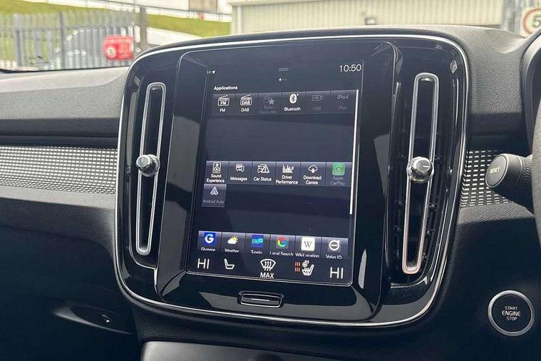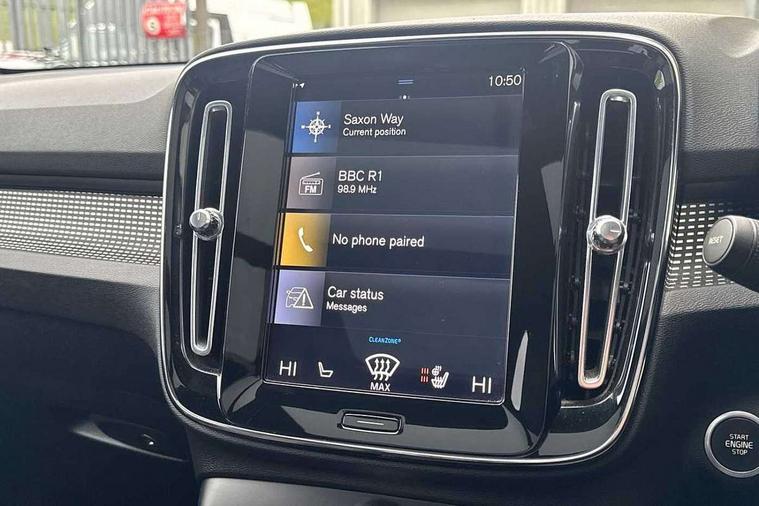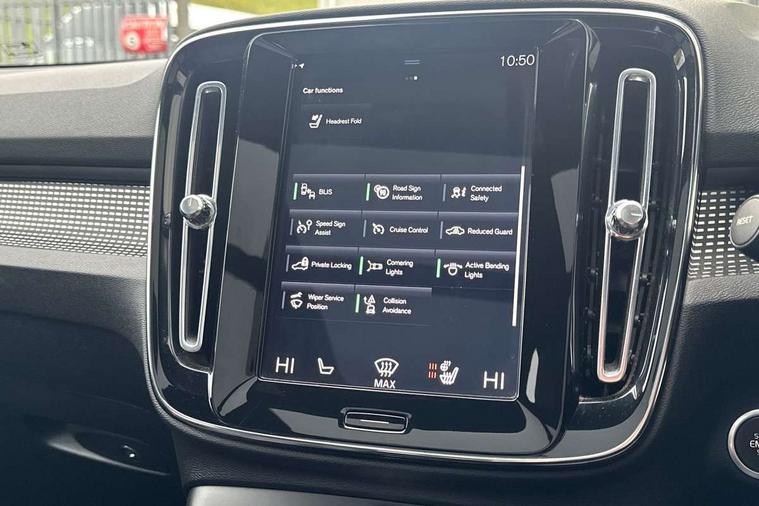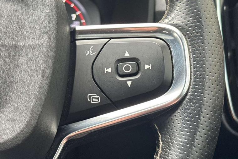 Cutting edge aluminium inlay, Anti-theft alarm including immobiliser/volume sensor + level sensor, Care key with user defined top speed, Key integrated remote control central locking + fuel flap with deadlocking system and auto open/close power windows, Locking wheel nuts, Private locking for tailgate, DAB Digital radio, Steering wheel mounted remote controls, 3x3 point rear seatbelts, City safety includes pedestrian, cyclist and large animal detection and front collision warning with full auto brake, Drivers knee airbag, Dual stage driver/passenger airbags, Electronic parking brake with auto hold, First aid kit, Front and outer rear seatbelt reminder and pretensioners, Front seats SIPS airbags, Hill descent control, Hill start assist, Inflatable curtain, Passenger airbag cut-off device, Road sign information display, Run off Road Mitigation, Run off Road Protection, SIPS (Side Impact Protection System), Slippery road and hazard light alert, Stability and Traction Control with Spin control, Engine Drag Control and Corner Traction Control, Tyre pressure monitoring system, Vehicle deceleration control with Anti-lock Brake System, Electronic Brake Distribution and Emergency Brake Assist, Warning triangle, WHIPS whiplash protection system - front, Active bending headlights, Adaptive brake lights with high level LED brake lights, Auto dimming interior mirror, Automatic headlamp levelling, Black stone door mirrors, Black stone roof, Colour coordinated auto folding and heated power door mirrors, Dark tinted windows for rear door side windows and cargo compartment, Dual integrated exhaust pipes with high gloss black surround, Front aluminium tread plates, Front and rear electric windows, High gloss black front and rear skid plate, High gloss black lower front bumper, High gloss black mesh front grille with high gloss black surround, High gloss black roof rails, High gloss black sensus surround deco, High gloss black window trim, Home safe and approach lighting, LED front fog lights with static cornering light function, LED Headlights + Active high beam incorporating daytime running lights, Rain sensor with automatic windscreen wiper activation, Rear side wing doors, Rear wiper, Recharging port located in nearside front wing, Roof antenna, Roof spoiler, Visible VIN plate, 12V socket in front tunnel console and cargo compartment, 2 zone electronic climate control and rear air vent, 3 seat bench in 2nd row, 60/40 split folding rear seat, Ambient front door and instrumental panel lighting, Black headlining, Bright metal luggage threshold, Centre console cupholders and storage, Driver's side lower dashboard credit card storage compartment, Front door pocket and front cupholder illumination, Front footwell illumination, Front headrests, Front reading light and theatre lighting, Glovebox bag hook, Height/reach adjustable steering column, High gloss centre tunnel deco, Illuminated glovebox, Illuminated luggage compartment, Illuminated tailgate, Illuminated vanity mirrors, Isofix attachments on rear seats, Key integrated remote, Leather gearknob, Load protection net, Multi directional lumbar support, Multicolour theatre lights, Rear armrest / integral cup holders / storage tray, Rear coat hook, Rear reading and courtesy lights, Single front passenger seat, Sports Leather steering wheel, Sports pedals, Underfloor cargo storage, 12.3" Active TFT crystal driver's instrument display, 9" centre console portrait touch screen, Adjustable steering wheel force, Bluetooth hands free telephone kit, Drive mode selector, Lane keep assist with driver alert control, Oncoming Lane Mitigation, Sensus navigation with European mapping and traffic information, Speed limiter, Speed sensitive steering, Voice activated control for key functions, Volvo on call, Electric front axle drive, Sports chassis,
