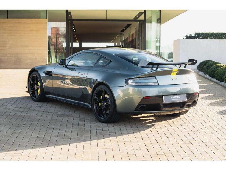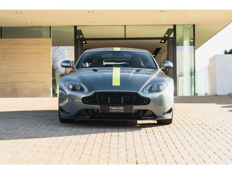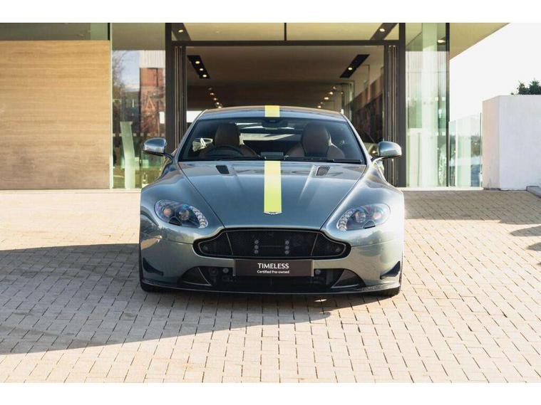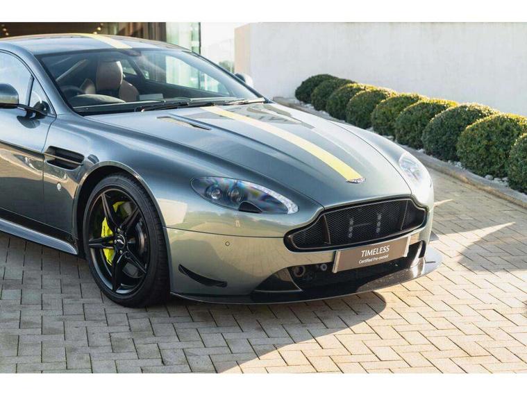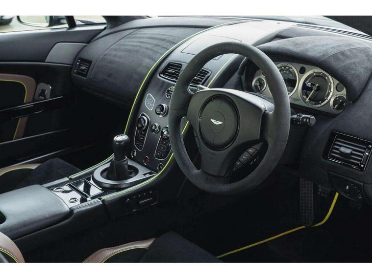 Fine stitching, Twill carbon fibre facia trim, Carbon fibre body pack - Vantage, Piano black interior trim pack - Vantage, Tyre repair kit, Immobiliser, Remote central locking + boot release, 6 CD autochanger, Auxiliary input socket, Bluetooth audio streaming, DAB Digital radio, iPod connection, USB connection, ABS + EBD + EBA, DSC - Dynamic Stability Control, HBA (Hydraulic Brake Assist), Seatbelts in Warm charcoal, Traction control, Tyre pressure monitoring system, Black textured tailpipe finisher, Black window surrounds, Carbon fibre splitter and diffuser, Dipped beam Xenon headlights, Electric folding mirrors, Electric front windows, Halogen Projector Headlamps, Heated door mirrors, Heated rear windscreen, LED rear lamps, Sports exhaust, Auto temperature control system, Battery disconnect switch, Black centre stack rotaries, Black pedals, Carbon fibre gearshift surround, Front head restraints, Front seat memory, Glass ECU, Heated front seats, Rake/reach adjustable steering wheel, Android Auto, Apple CarPlay preparation, Bluetooth Telephone preparation, Cruise control, Infotainment system, Organic electroluminescent (OEL) displays, Satellite navigation system, Trip computer, Limited slip differential,