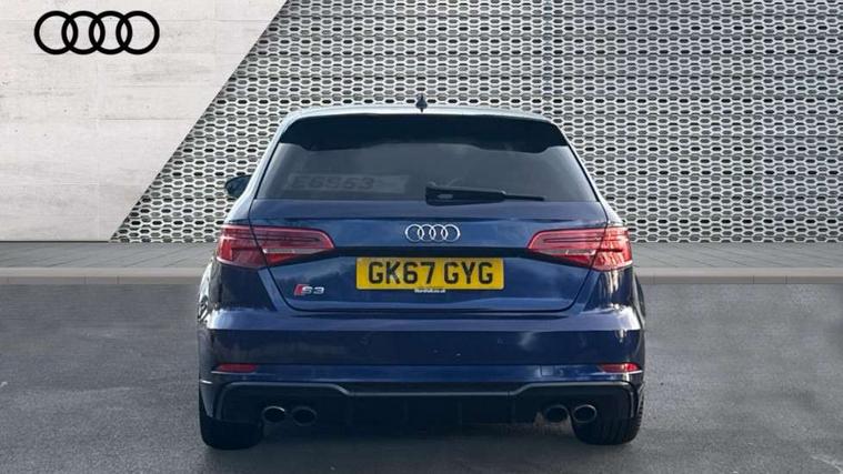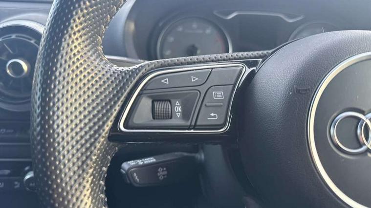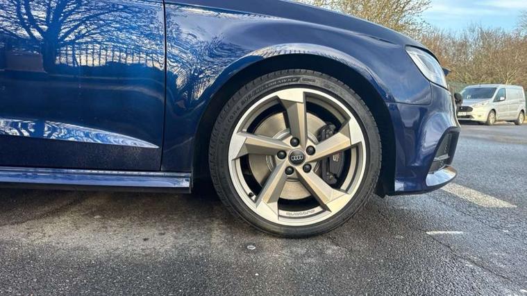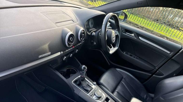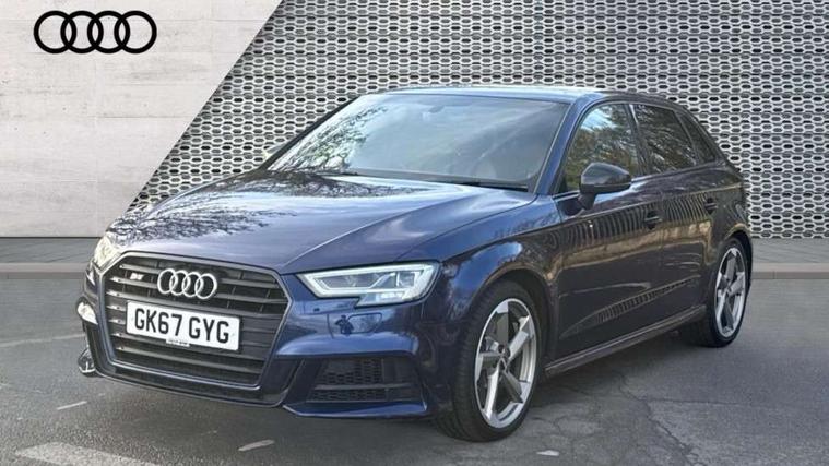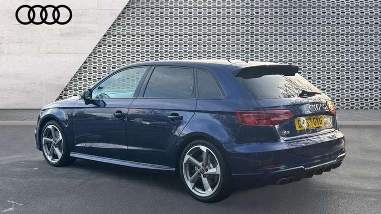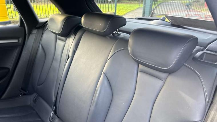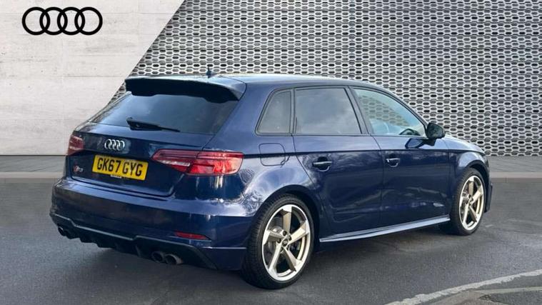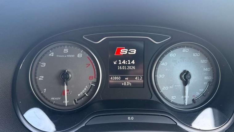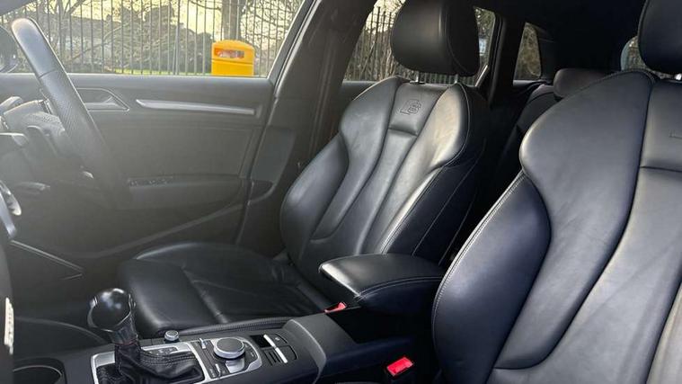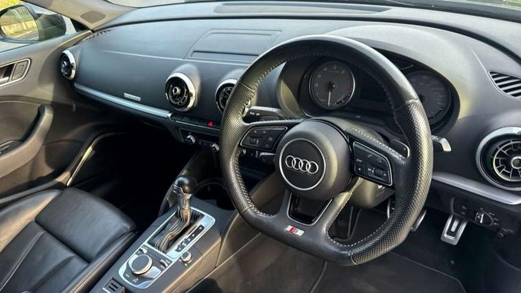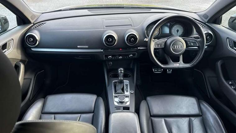 Audi connect, Audi drive select, Audi smartphone interface, Colour driver's information system display, Mobile telephone preparation - bluetooth interface, Progressive power assisted steering, SD card based satellite navigation system, Service interval indicator, Speed limit display, Voice control system, S sports suspension, 2 USB ports, Audi music interface, Auxiliary input socket, Bang + Olufsen advanced sound system, CD player, DAB Digital radio, MMI radio plus with 7" colour MMI screen and MMI controller, Auto dimming rear view mirror with light and rain sensors, Black door mirrors, Black window surrounds, Body colour bumpers with black insert, Body colour roof spoiler, Electric front windows, Electric operated/heated door mirrors, Electric rear windows, Headlight washers, Heated windscreen washer jets, LED daytime running lights, Matt black radiator grille, Platinum grey radiator grille with double chrome bars, Privacy glass, Rear wiper, S body styling, Twin oval chrome trimmed exhaust tailpipes, 3 adjustable rear headrests, 3 spoke flat bottomed multi-function leather steering wheel, 4 lashing points to secure luggage, Adjustable front armrest, Dual zone electronic climate control, Front and rear interior lights with delay, Front passenger seat isofix location point, Front/rear floor mats, Heated front seats, Height/depth adjustable steering column, Illuminated glovebox, ISOFIX child seat preparation+airbag deactivation, Jack and tool kit, Rock grey headlining, Stainless steel pedals, Steering wheel gearshift paddles, Storage compartment in centre console, Storage compartment under front seats, Storage compartments in doors, Black styling pack - A3/S3, LED interior light pack - A3/RS3, Non smoking pack - A3, Storage and luggage pack - A3/RS3, 3 point seatbelts on all seats, ABS/EBD, Active bonnet, Active front headrests, ASR, Curtain airbags, Driver and passenger side airbags, Driver/Front Passenger airbags, Drivers knee airbag, EDL, Electromechanical parking brake, ESC - Electronic Stability Control + traction control, Front passenger airbag deactivation, Manual rear child locks, Multi-Collision braking, Seatbelt warning, Tyre pressure warning, Warning triangle and first aid kit, Anti theft alarm, Anti-theft wheel bolts, Remote control central locking, Thatcham category 1 alarm + immobiliser, Aluminium air vent surrounds, Aluminium trim elements, Space saver spare wheel,